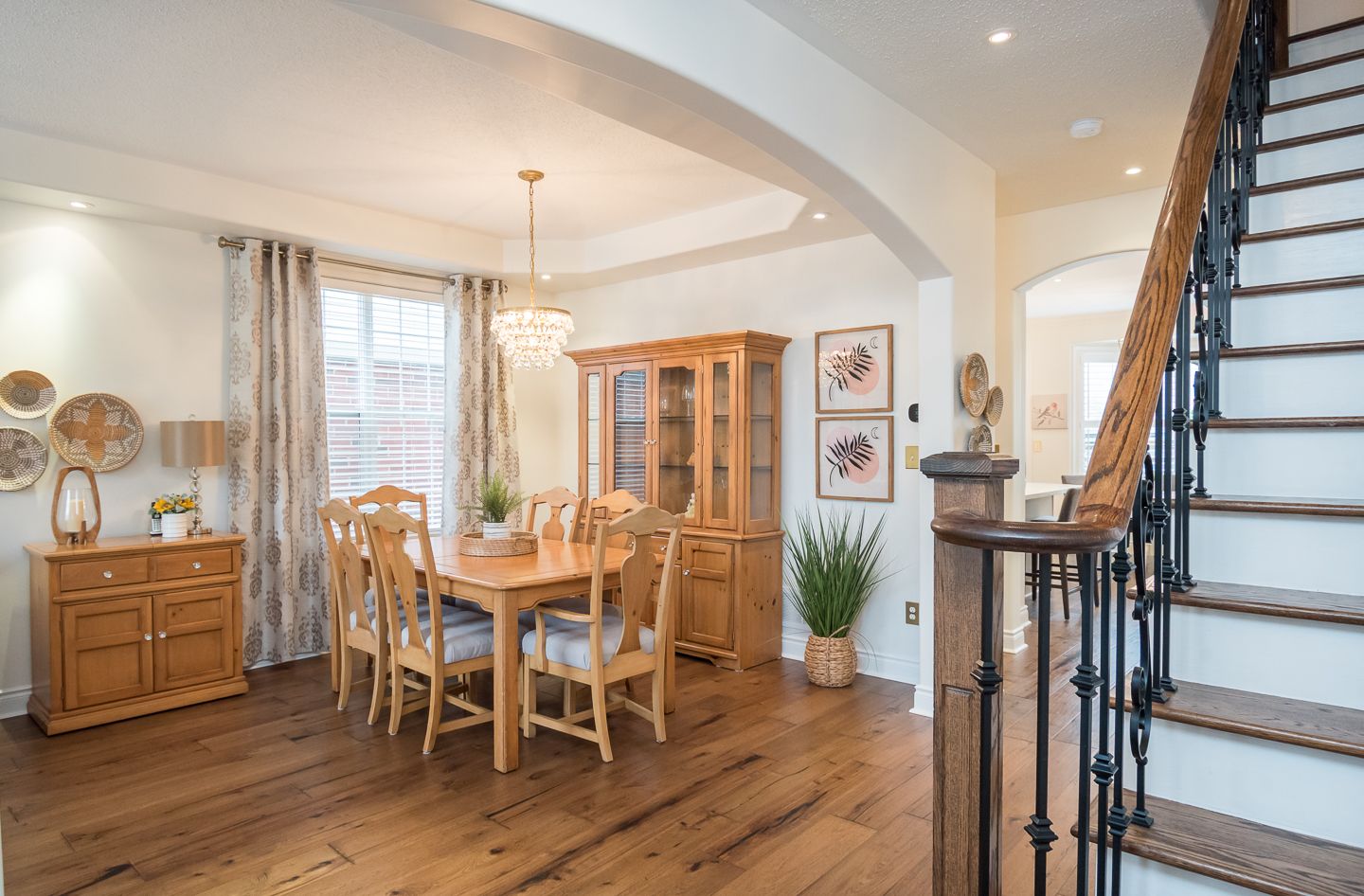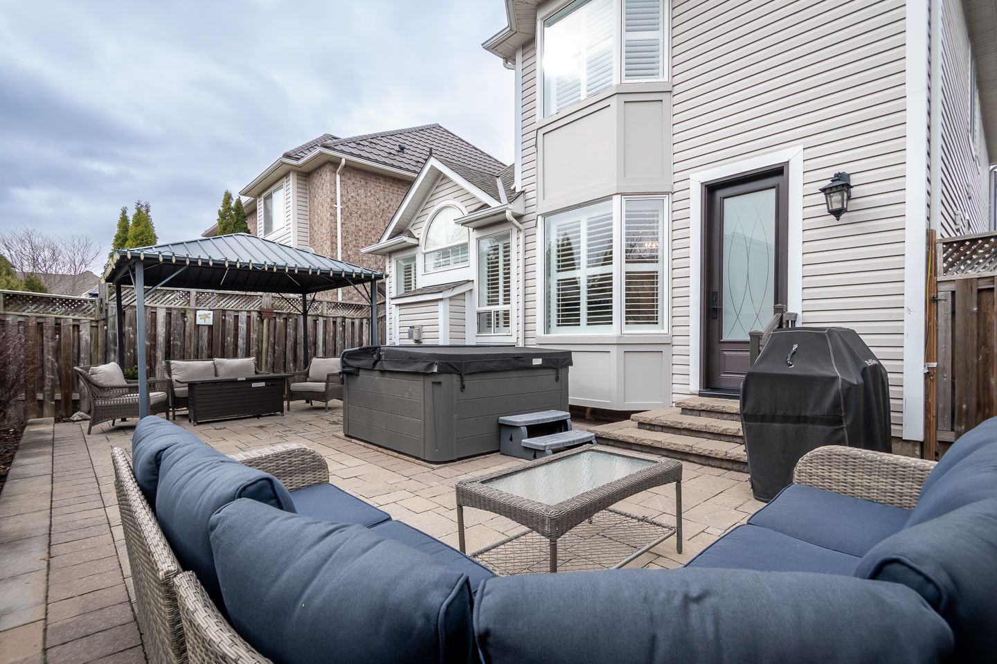 Step into a fully upgraded, designer inspired home that stands apart from anything else in the neighbourhood. Every detail in this 3 bed, 2. 5 bath home has been thoughtfully updated, creating a refined, move in ready space that feels both luxurious and effortlessly livable. Located in milton's coveted beaty community, you're steps to parks, schools, and daily amenities, with quick access to the 401, 407, and go station. The main floor features 9 foot ceilings and a seamless open concept layout with formal living and dining areas plus a cozy family room with a gas fireplace. The engineered hardwood flooring flows throughout main and upper levels. The soft white eat in kitchen offers quartz counters, an upgraded backsplash, stainless steel appliances, and a walkout to a fully fenced backyard with interlock, a hot tub, and low maintenance landscaping. Upstairs are generous bedrooms-including one with a private balcony-a refreshed primary ensuite, a renovated main bath, and an upper level laundry room with cabinetry. A finished basement adds a large rec room and versatile bonus space. With interior garage access, a fiberglass front door, and countless upgrades, this home delivers an elevated lifestyle. Ages: roof - 2016, furnace - 2016, air conditioner - 2018, upgraded attic insulation - 2025, posts + railings (outside front) - 2022, main floor doors/garage - 2021, hot tub - 2021