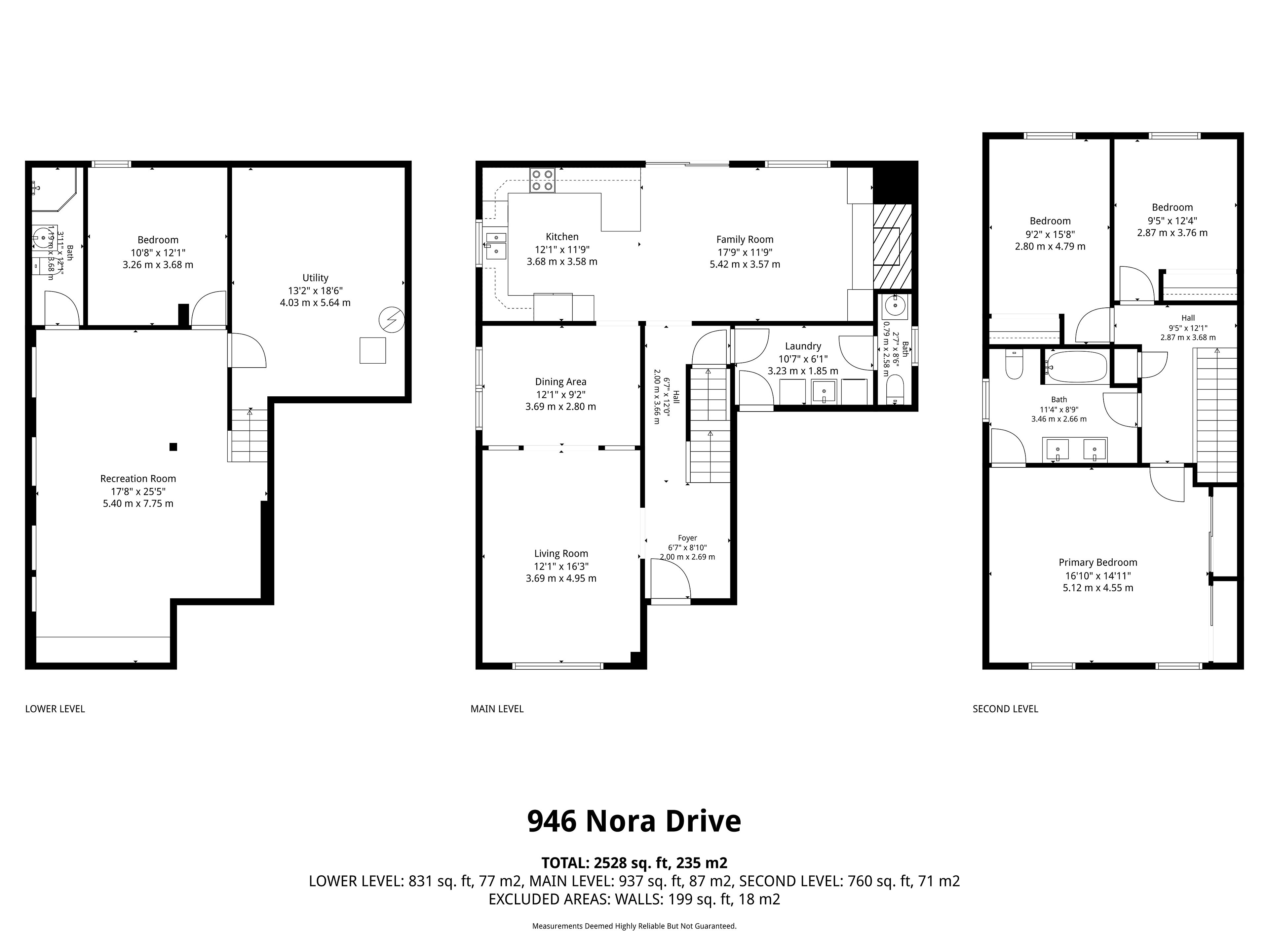Welcome to 946 nora drive, tucked away on a quiet court in one of burlington's most sought-after aldershot neighbourhoods. This beautifully updated two-storey home offers 3+1 bedrooms and 2. 5 bathrooms, combining functional family living with stylish modern finishes. The main level features updated flooring, formal living and dining rooms, a bright and open layout, beautiful family room featuring a gas fireplace, and large windows that flood the home with natural light. The chef-inspired kitchen is a standout, showcasing quartz countertops with a dramatic waterfall edge,stainless steel appliances, and ample prep and storage space-perfect for everyday living and entertaining. Upstairs,generously sized bedrooms provide comfortable retreats, while the finished lower level adds flexibility with an additional bedroom and large storage room. Enjoy the convenience of a two-car garage and unwind in the spacious backyard,offering plenty of room for outdoor entertaining, play, or gardening. Located close to parks, schools, shopping, transit,major highways and 2 go stations, this home delivers the perfect blend of privacy, comfort, and convenience. A fantastic opportunity to own a move-in-ready home in a quiet, family-friendly enclave of aldershot.