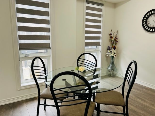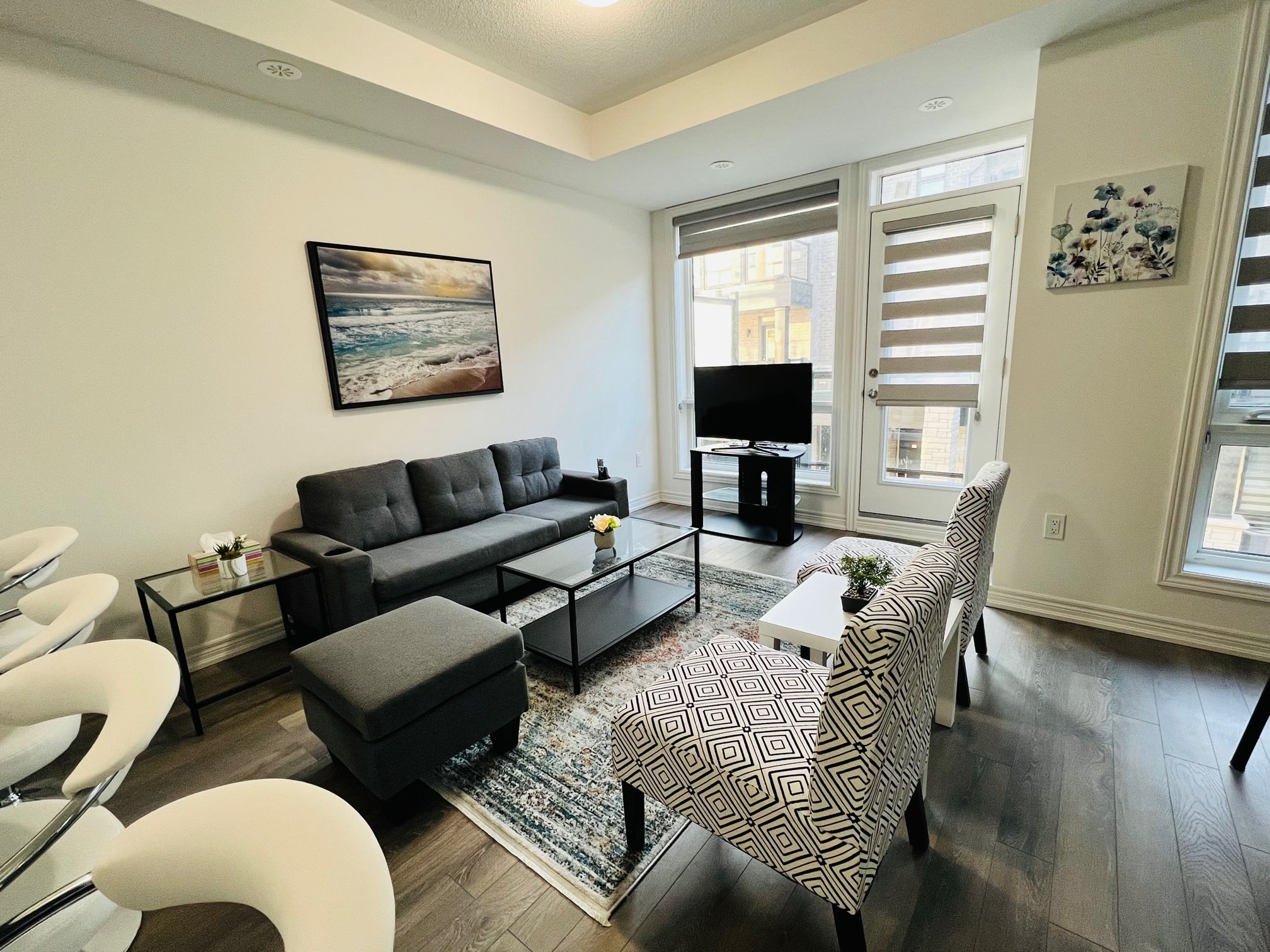 Located in the heart of castlemore, this beautiful condo townhouse offers 2 spacious bedrooms, 2 washrooms, and a versatile great room that can also be used as a 3rd bedroom or home office. Features include 9-ft ceilings, hardwood floors, modern open-concept kitchen, and ensuite laundry. Enjoy plenty of natural sunlight throughout, with walk-out balconies from both the main living area and the upper level. The home also includes a separate parking and private mailbox. Conveniently located close to schools, plazas, public transit, highways 407 & 427,costco, and nearby temples. Perfect for families or investors looking for a prime location with great amenities.