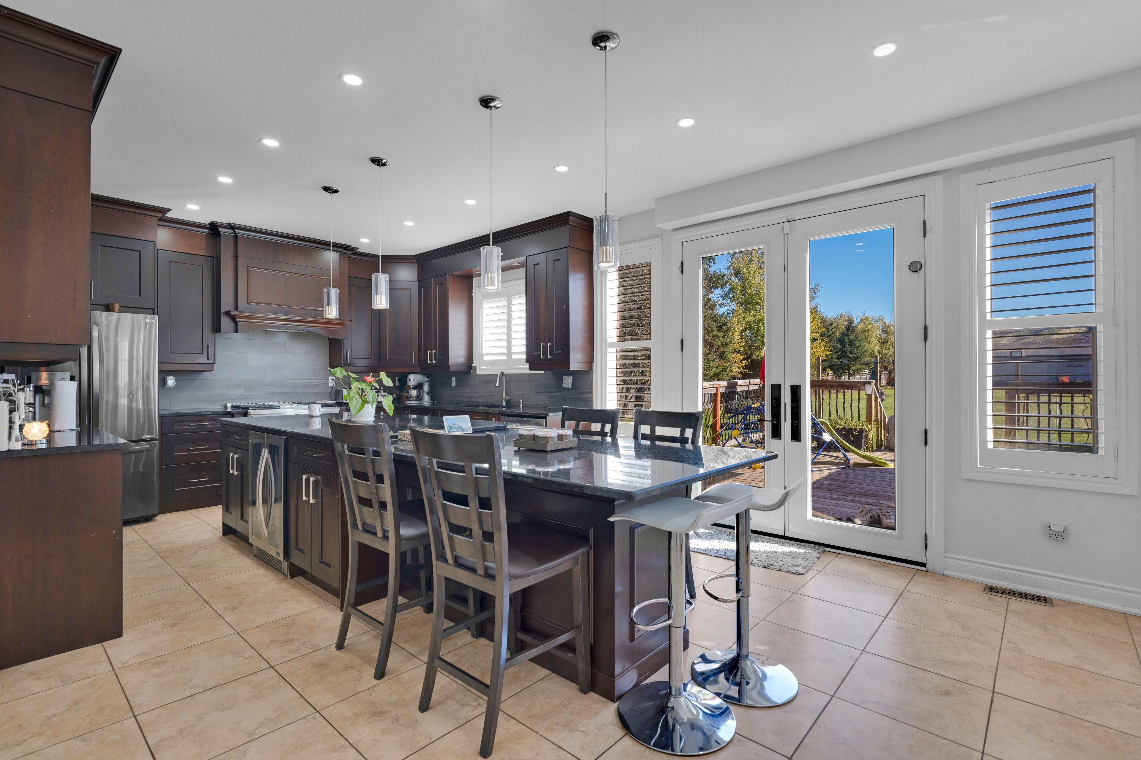 • Gourmet kitchen with granite countertops and walkout to a large deck.