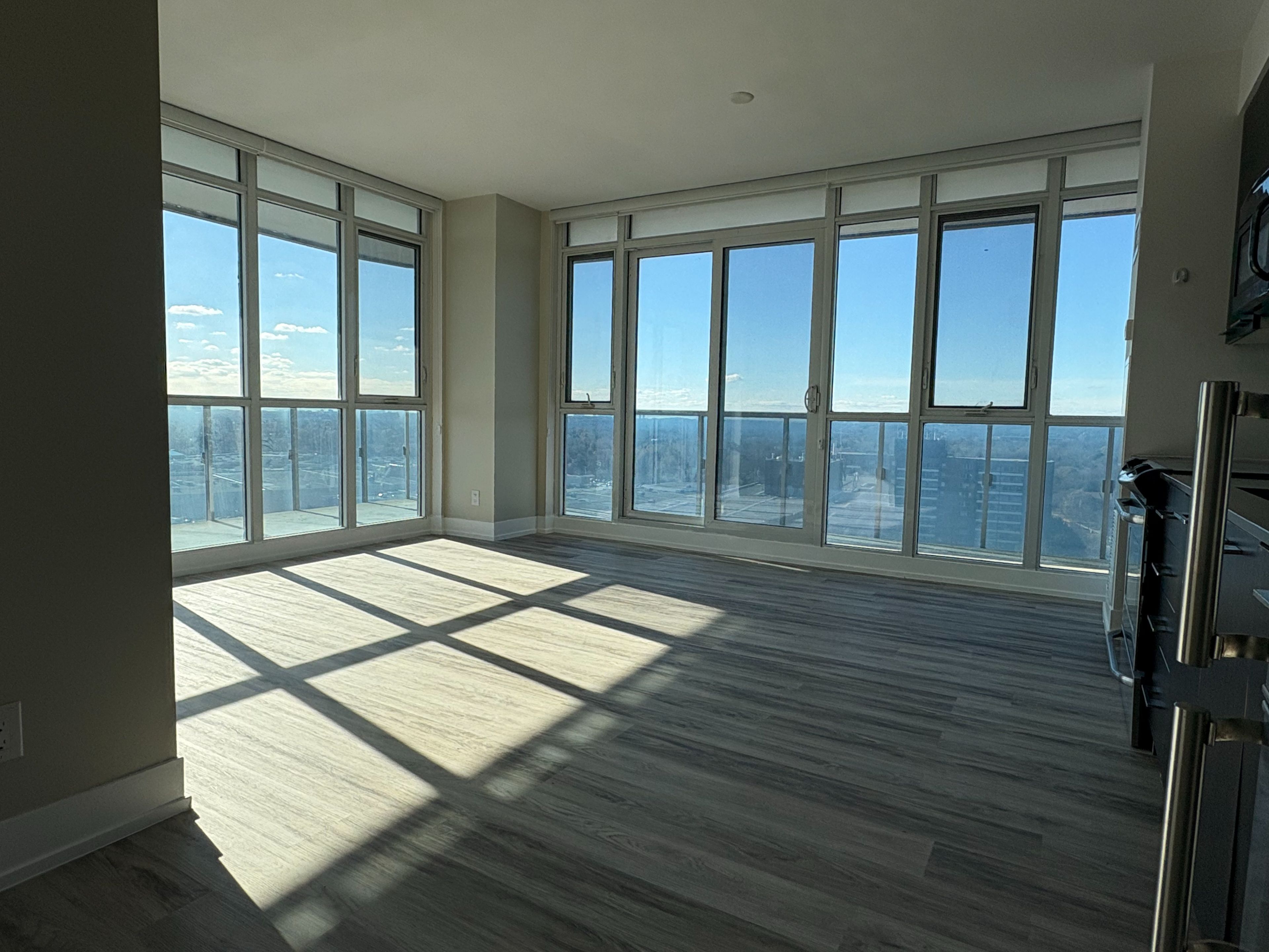 A place to call home - welcome to the luxurious expression condos in the heart of richmond hill. This 2 bedroom corner unit boasts 781 sqft of living space, an impressive 292 sqft wrap-around balcony and an abundance of natural sunlight and unobstructed southwest views. Desirable split bedroom layout and 2 full bathrooms. 9ft ceilings. Amenities include: 24-hour concierge, indoor pool, rooftop terrace with bbqs, gym, yoga studio, spa-inspired steam room, theatre, billiards room, guest suites, pet spa, and more. Located directly across from hillcrest mall and steps from restaurants, parks, transit, and yonge street, with easy access to highways 7 & 407. Parking & locker included. Tenant pays for hydro/water/heat. Available for november 1