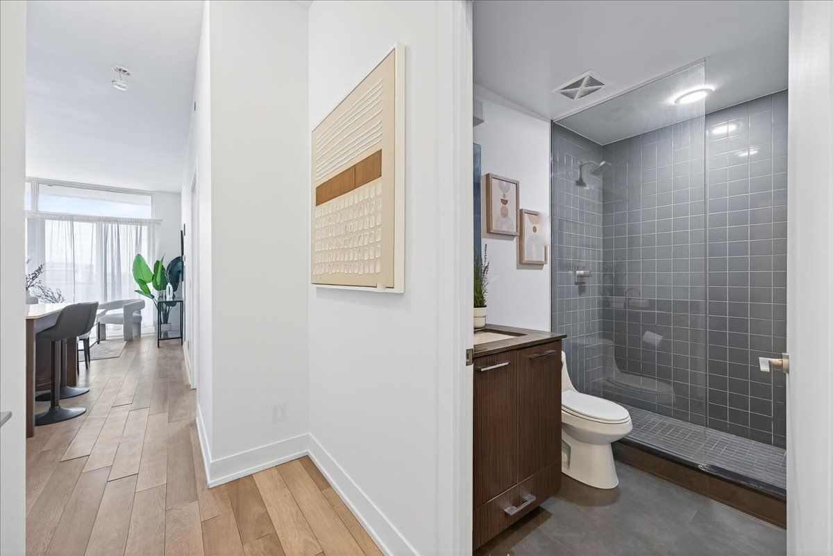 Welcome to suite lph06 at xpression condos on yonge st! One of richmond hill's most sought-after and architecturally striking residences. This exceptional 1 bedroom plus den lower penthouse offers 715 sq ft of modern luxury with soaring 10-foot ceilings, floor-to-ceiling windows, and a bright, open-concept design that feels spacious and inviting. The contemporary kitchen features quartz countertops, stainless steel appliances, and a large island with breakfast bar, perfect for entertaining. The den offers true versatility and can easily function as a second bedroom, office, or reading area. Enjoy seamless indoor-outdoor living with two walkouts to the private balcony - one from the living room and another from the primary bedroom - providing beautiful views and a peaceful place to unwind. Residents of xpression condos enjoy resort-inspired amenities including a 24-hour concierge, indoor pool, fitness studio, sauna, rooftop terrace with bbq area, theatre, guest suites, party and games rooms, and visitor parking. Located in the heart of richmond hill, directly across from hillcrest mall and steps to shops, dining, transit, and major highways - suite lph06 offers the ultimate blend of luxury, location, and lifestyle.