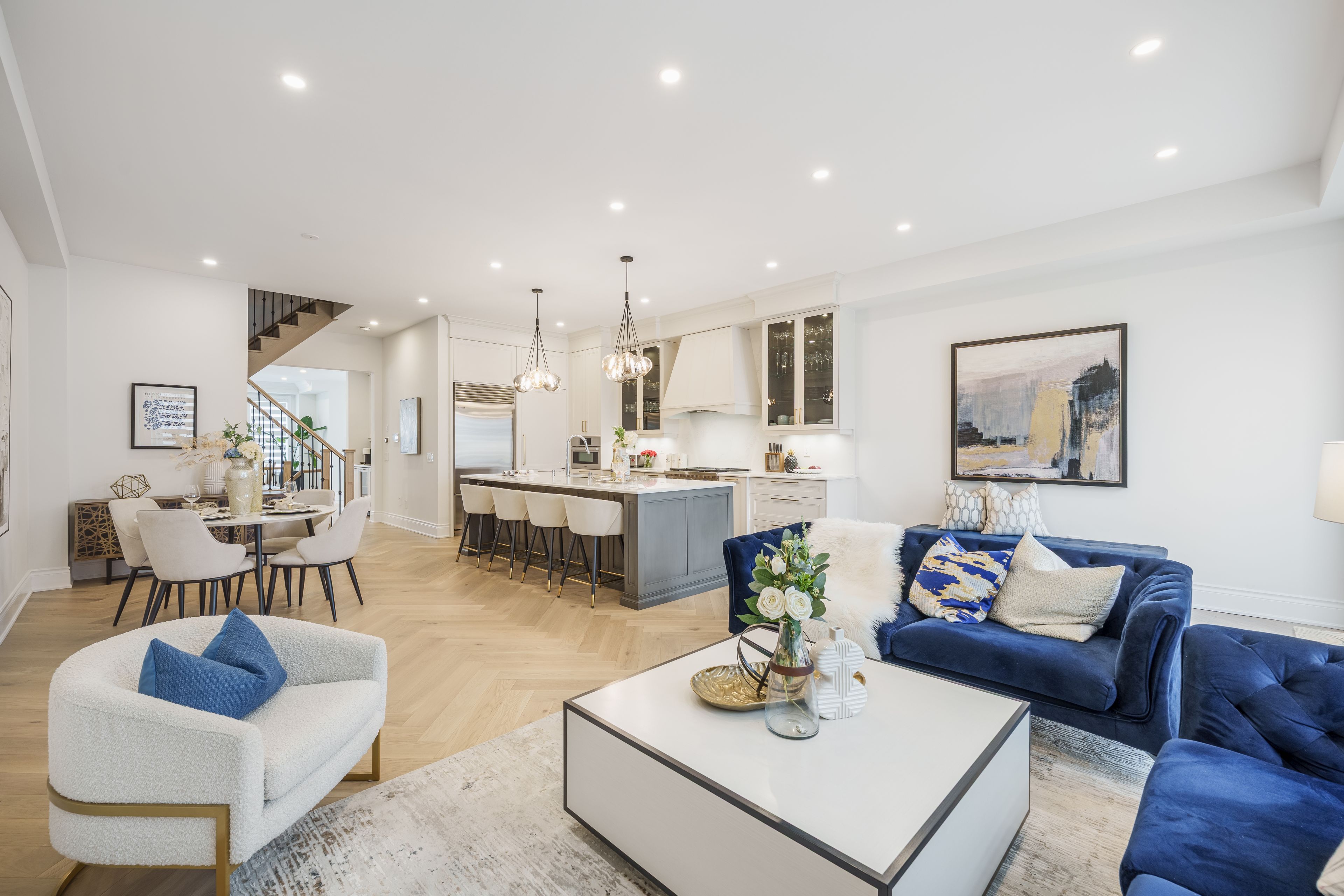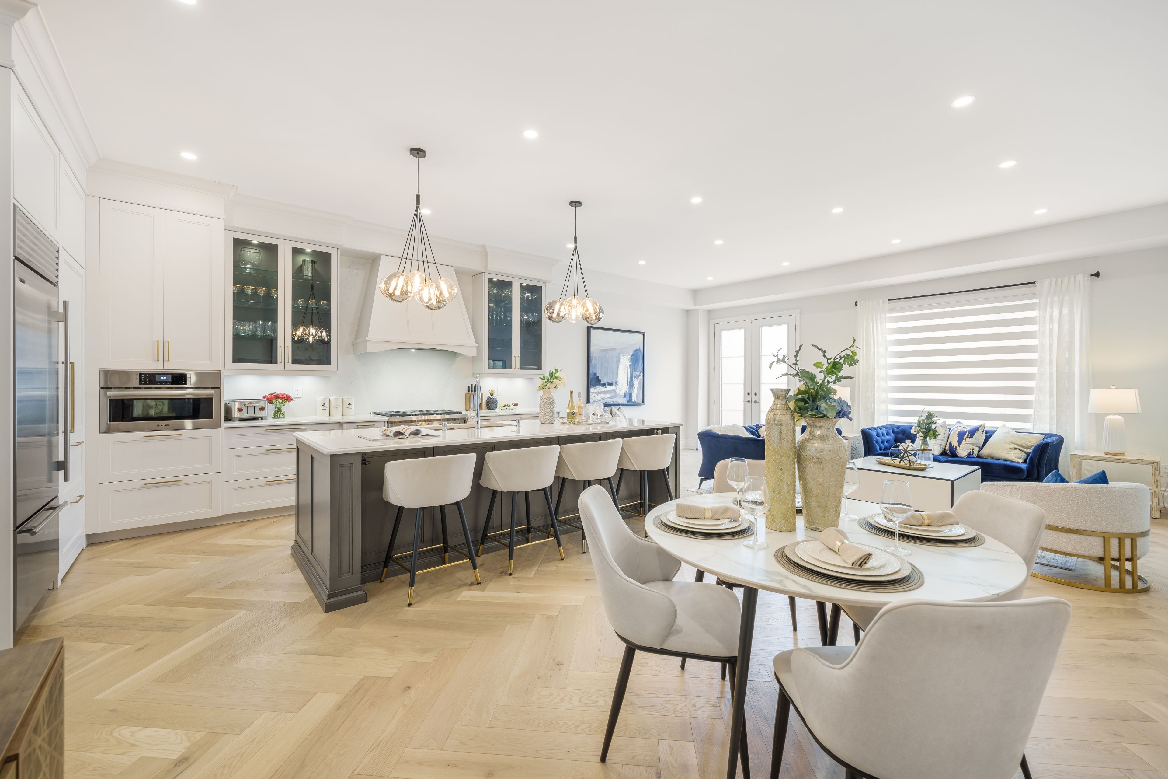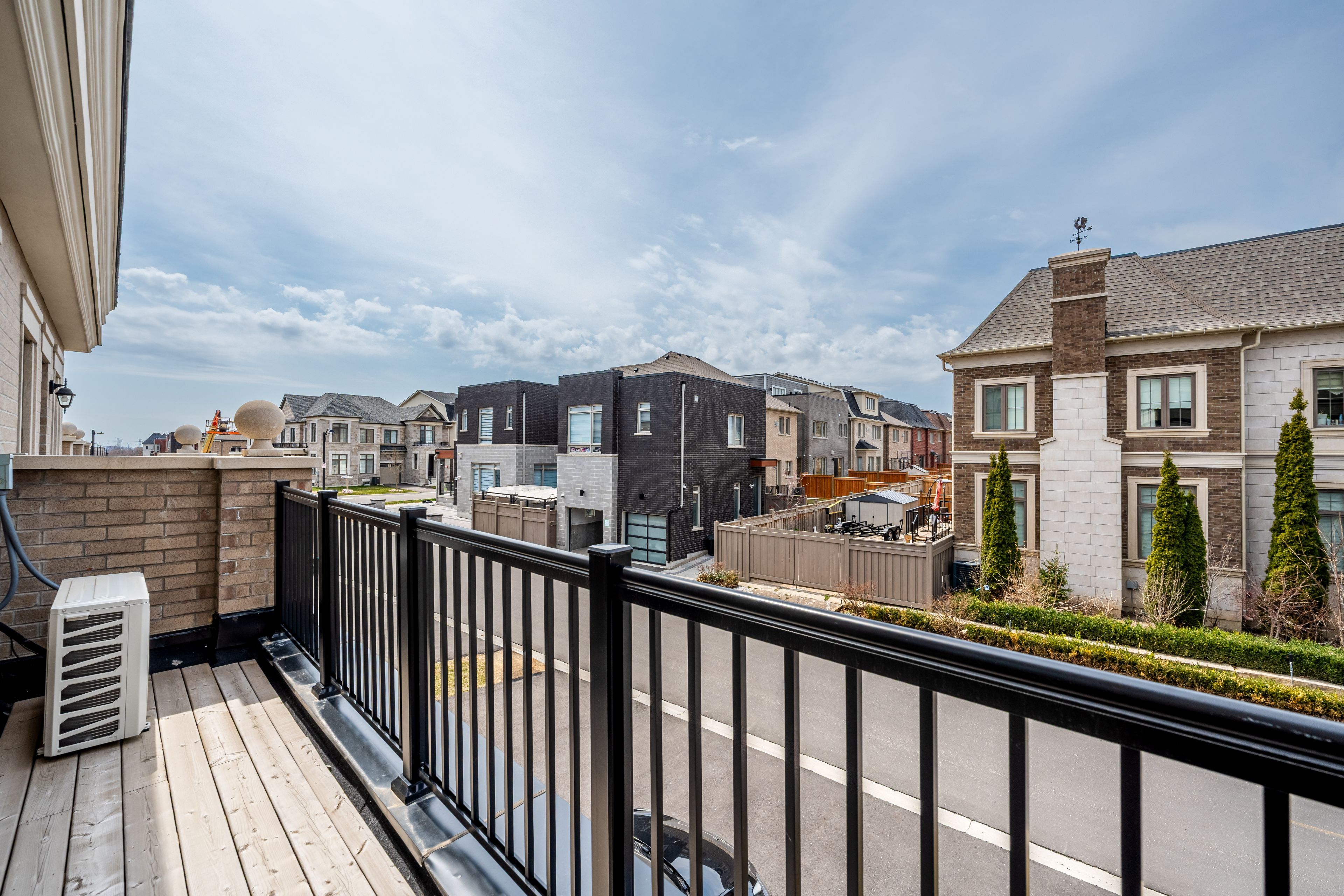 Welcome to this spectacular three-storey townhome with a rare two-car garage and a fully detached coach house, situated in the heart of richmond hills prestigious observatory hill community. As one of the largest and most coveted models in the development, this custom residence offers approximately 3,750 square feet of finely crafted living space in the main house, plus an additional 500 square feet in the private coach house an ideal setting for multi-generational living, private guest quarters, or supplementary rental income. Every inch of this home showcases exceptional quality and thoughtful design, with all upgrades completed by the builder for a seamless, cohesive aesthetic. The moment you step inside, you are welcomed by grand-scale principal rooms, soaring 10-foot ceilings, and exquisite herringbone-patterned hardwood flooring that runs throughout the main level. The open-concept living and dining areas are elegantly appointed with rich finishes and architectural detailing, setting the tone for sophisticated living. At the heart of the home lies a professionally designed chefs kitchen, a true showpiece offering an oversized centre island, top-of-the-line built-in appliances, custom cabinetry, a sleek wet bar, and a concealed walk-in pantry for optimal function and style. Perfect for hosting large gatherings or everyday family living, this kitchen is both a culinary and design masterpiece. The second floor is thoughtfully dedicated to the luxurious primary suite, offering a serene retreat complete with his-and-her walk-in closets and a lavish six-piece ensuite bath. A separate great room with elegant waffle ceilings adds versatility to this level, providing an expansive space for a second family room, home office, or even an additional bedroom, all while maintaining privacy and flow. The third floor is ideal for family or guests, featuring three generously sized bedrooms, each with its own walk-in closet and private ensuite bathroom.