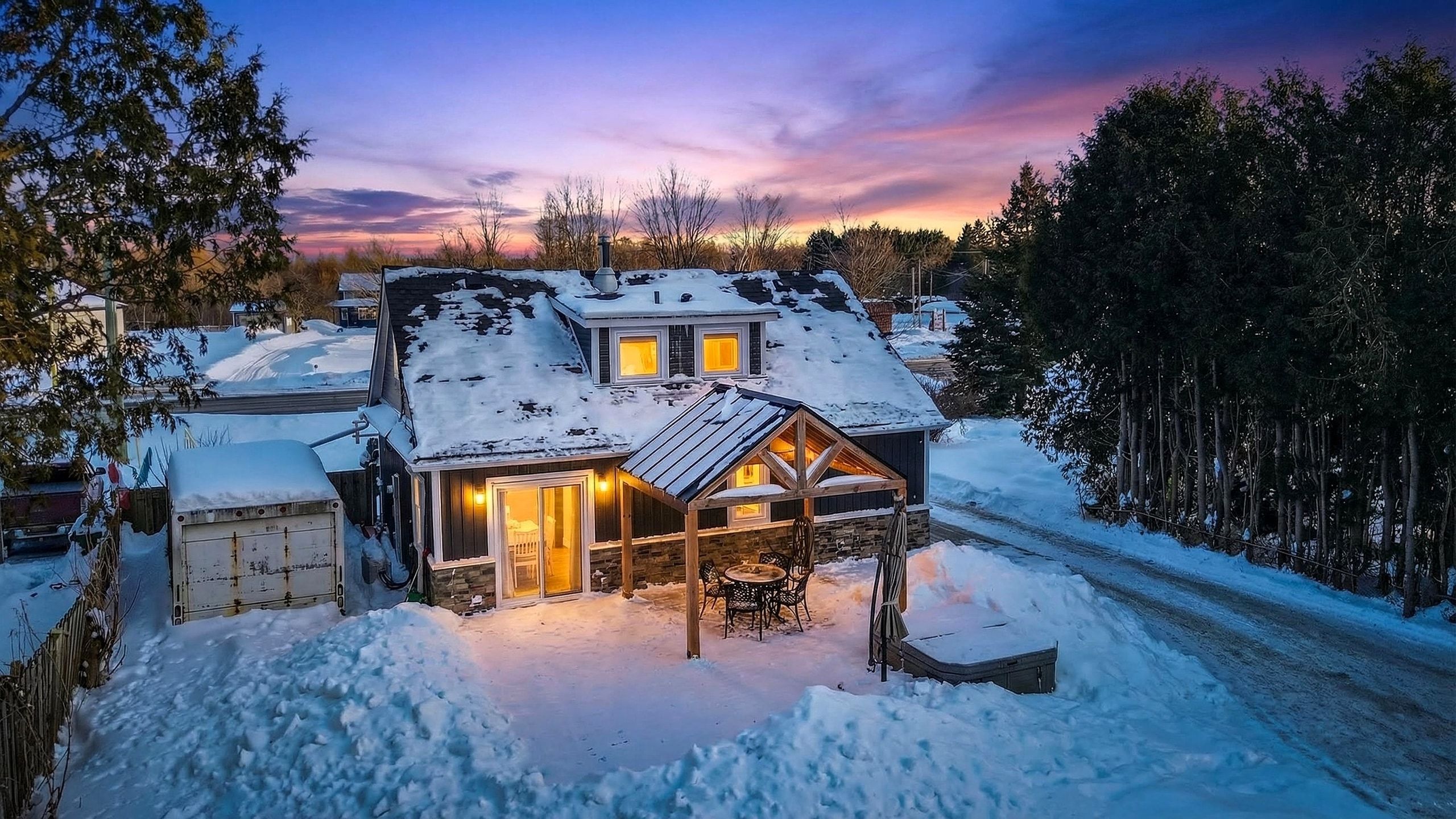 Looking for a move-in-ready home with space, privacy, and an easy commute? This fully renovated residence at 9488 wellington road 124, erin, on delivers modern comfort, small-town charm, and room to breathe. Set on an expansive 66 x 217 ft lot with no backyard neighbours, this beautifully updated home has been renovated top to bottom with thoughtful finishes and timeless style. The main floor offers a bright, open layout featuring an eat-in kitchen with quartz countertops, stainless steel appliances, pot lights, and generous cabinetry, perfect for everyday living and hosting. The living room is filled with natural light and anchored by a cozy gas stove, adding warmth and character through every season. The dining area walks out to a private back deck overlooking a deep yard designed for relaxation, complete with a cabana and hot tub. A main-floor bedroom, laundry, and a stylish 3-piece bathroom add everyday convenience. Upstairs, two inviting bedrooms and an additional 3-piece bathroom provide comfortable family or guest accommodations. The unfinished basement offers excellent storage and future potential. Outdoors, the large detached two-car garage is ideal for hobbies, tools, toys, or extra storage. Located minutes from the shops and restaurants of erin, steps from nature, and close to the elora cataract trailway, this home balances rural serenity with commuter convenience. Enjoy a 30-minute drive to the 401, 25 minutes to orangeville, and 18 minutes to georgetown go station, making trips to brampton and toronto easy and predictable.