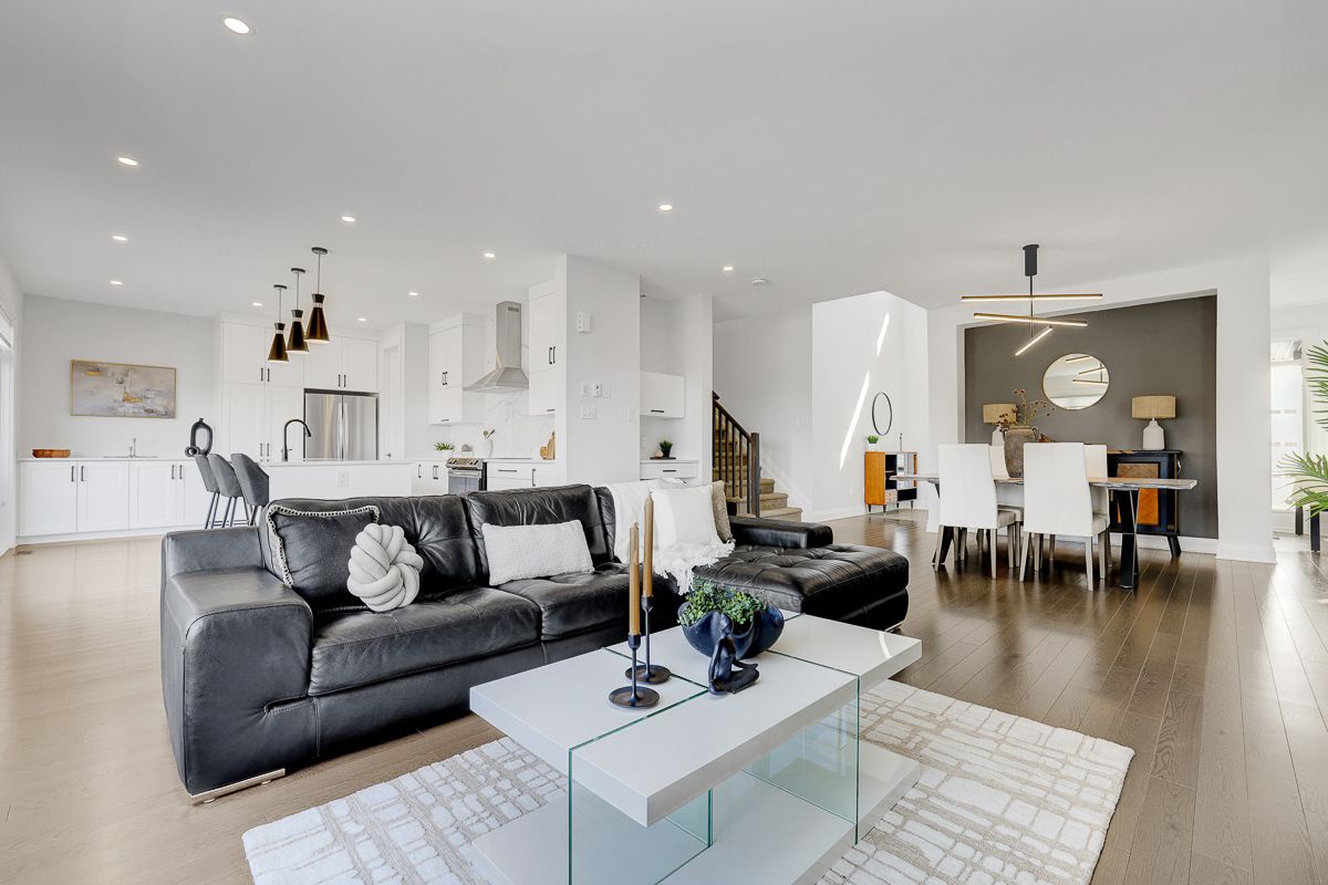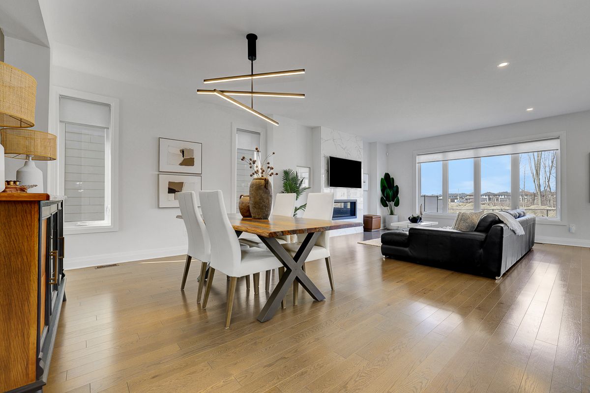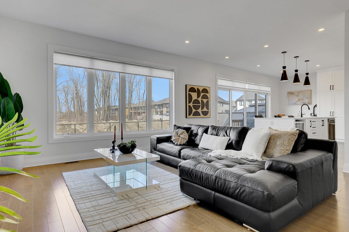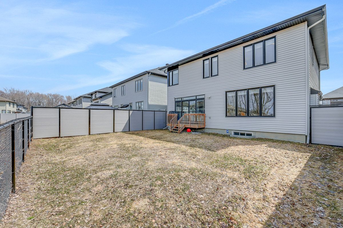 Welcome to this beautifully upgraded 2021 richcraft built home, set on premium 44-ft lot with no rear neighbours - a rare offering that delivers exceptional privacy and long-term value in this family-oriented pocket of riverside south. Striking curb appeal is enhanced by modern exterior finishes including upgraded steel cedar siding, exterior pot lights, and an interlock walkway. Inside, the bright open-concept main level features soaring ceilings and expansive windows that flood the home with natural light. The spacious living and dining areas are defined by a sleek linear fireplace with a marble surround, creating a warm contemporary focal point. The gourmet kitchen offers an oversized island, quartz countertops, upgraded cabinetry, marble backsplash, and modern range hood. Versatile front room can function as a home office or additional bedroom. A powder room and mudroom with direct access to the garage complete this level. Upstairs, retreat to the spacious primary suite featuring a walk-in closet and a large spa-inspired ensuite featuring a freestanding tub, oversized glass shower with niche, double floating vanity with a quartz countertop. Two additional generously sized bedrooms each with walk-in closets - one with a private ensuite, and the other with its own separate bathroom across the hall. Second floor laundry room adds everyday convenience. The partially finished basement includes an extra bedroom and offers flexibility for guests or future living space. With a separate garage entrance (or the option to add a dedicated side door entrance) and rough-in for an additional bathroom, this level presents outstanding potential for an in-law suite or income opportunity. Fully fenced backyard creates a peaceful and private outdoor setting. Located close to schools, parks, transit, lrt, the river, and within walking distance to amenities, this home offers a rare combination of modern comfort, privacy, and value in one of ottawa's fastest growing communities.
