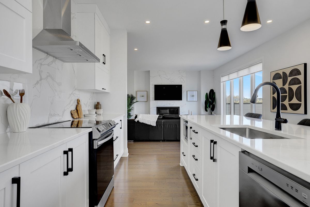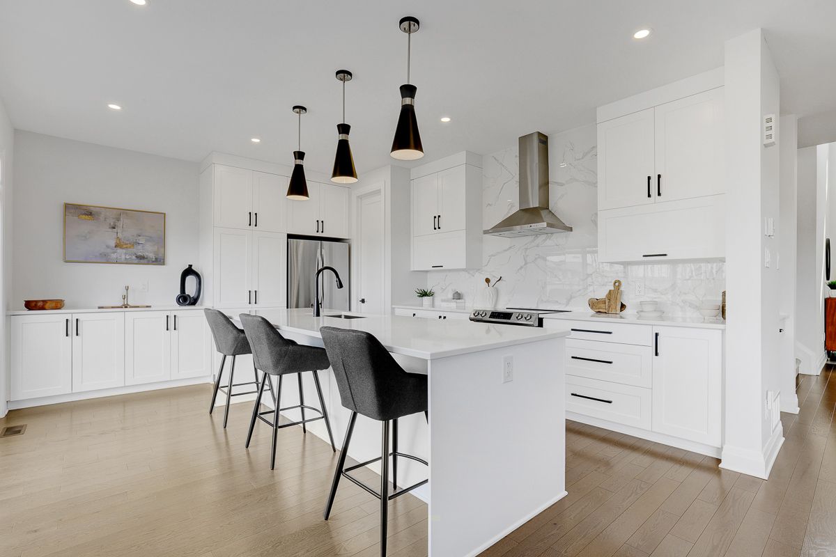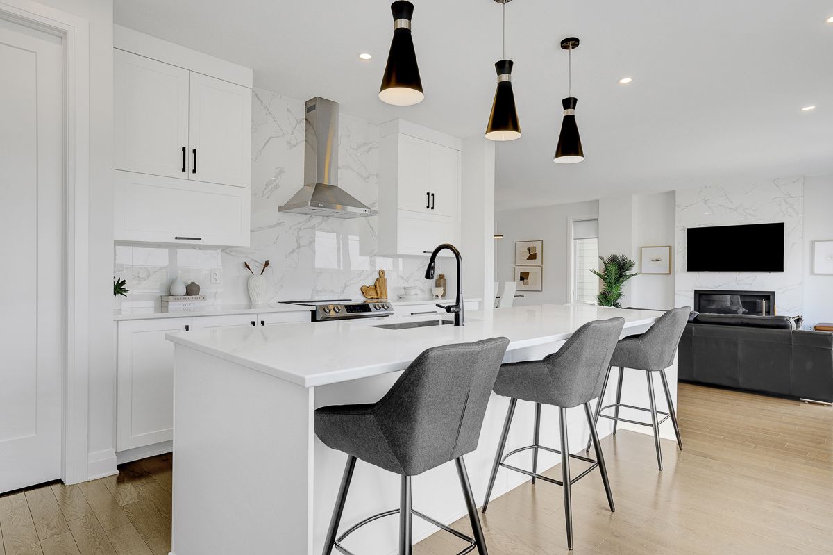 • Gourmet kitchen with oversized island and modern finishes.