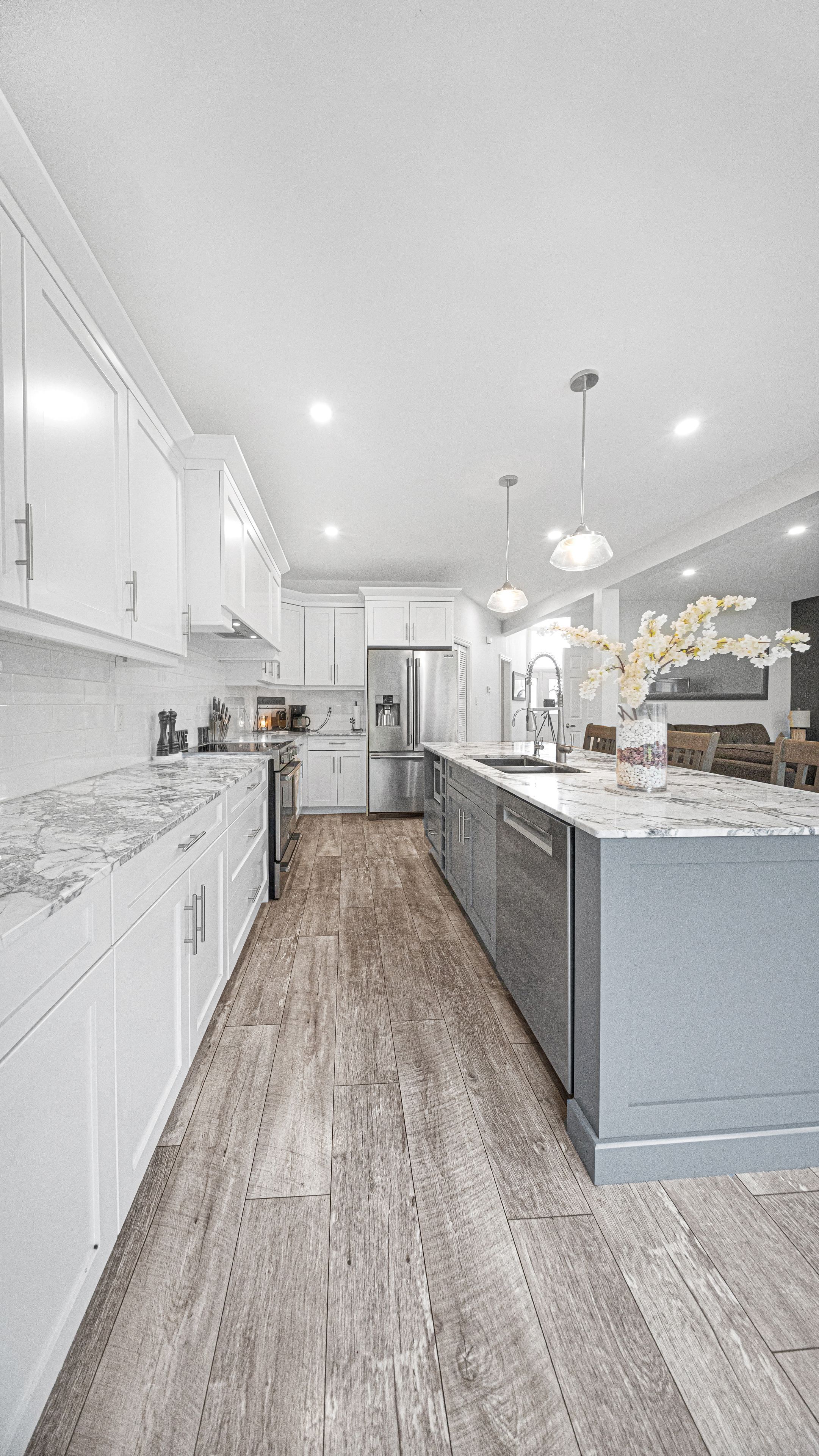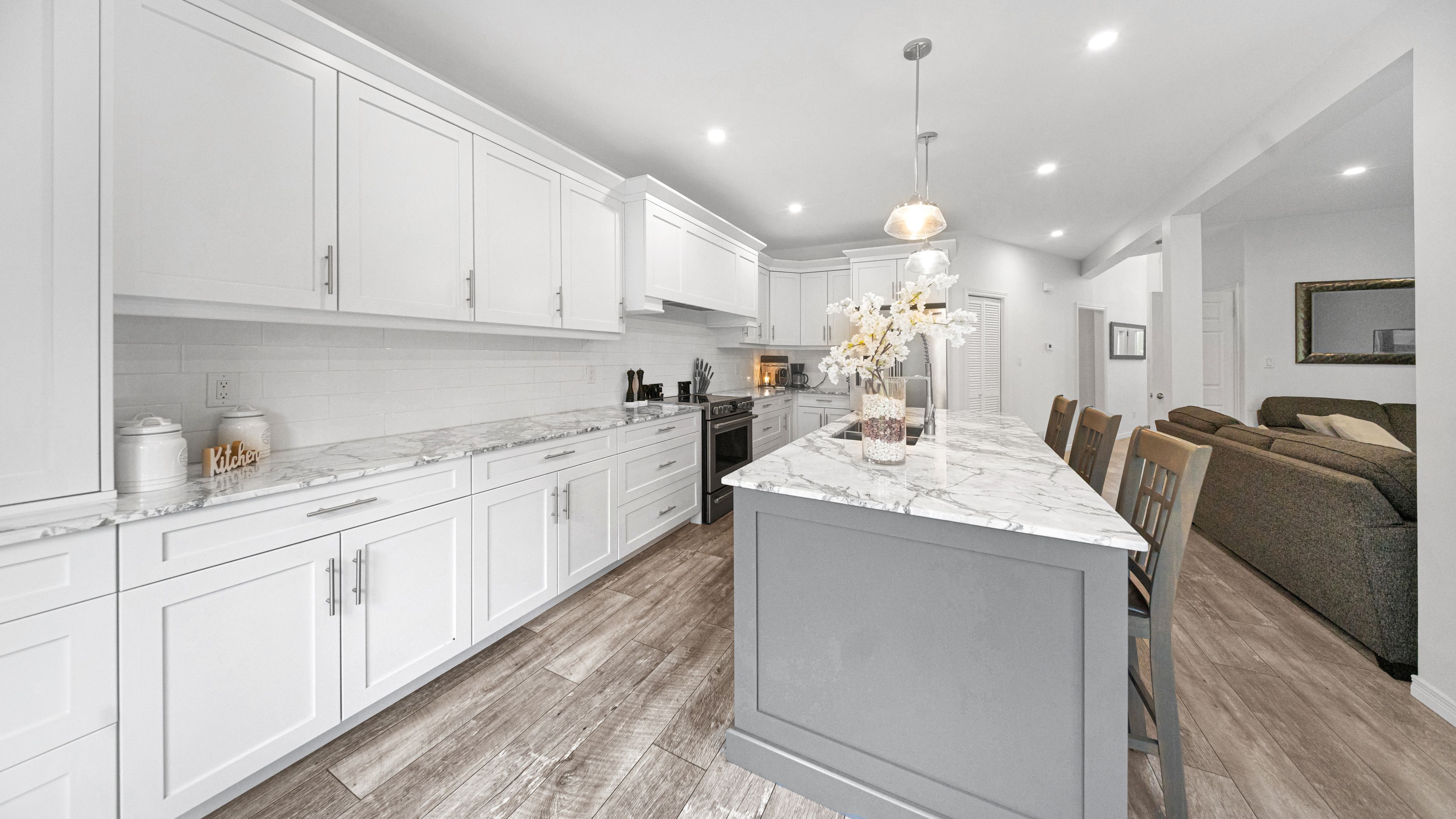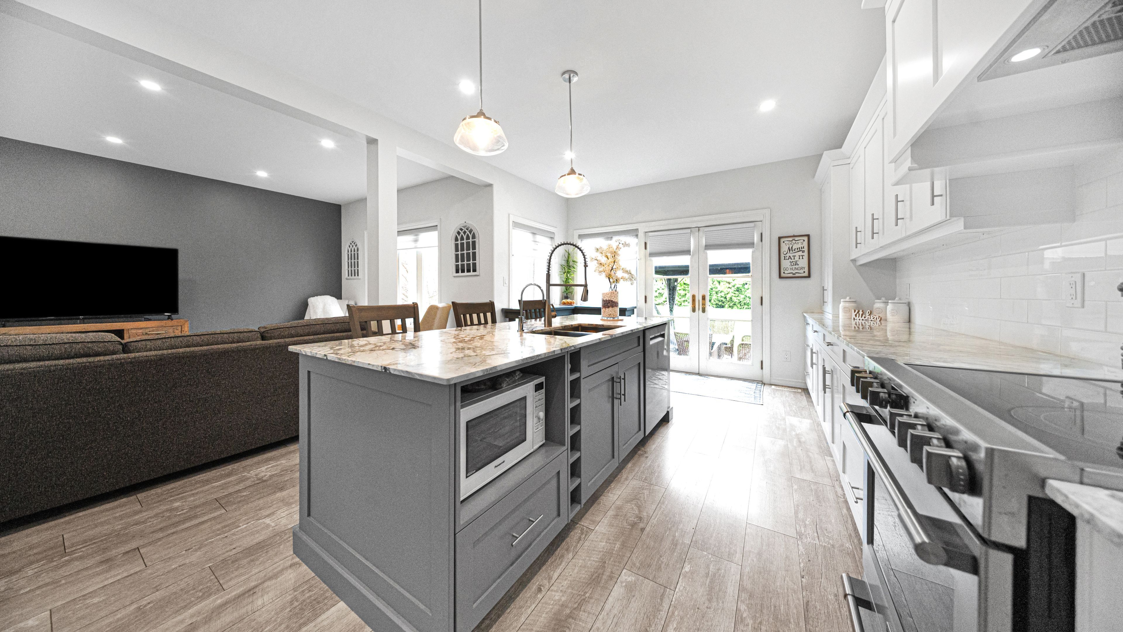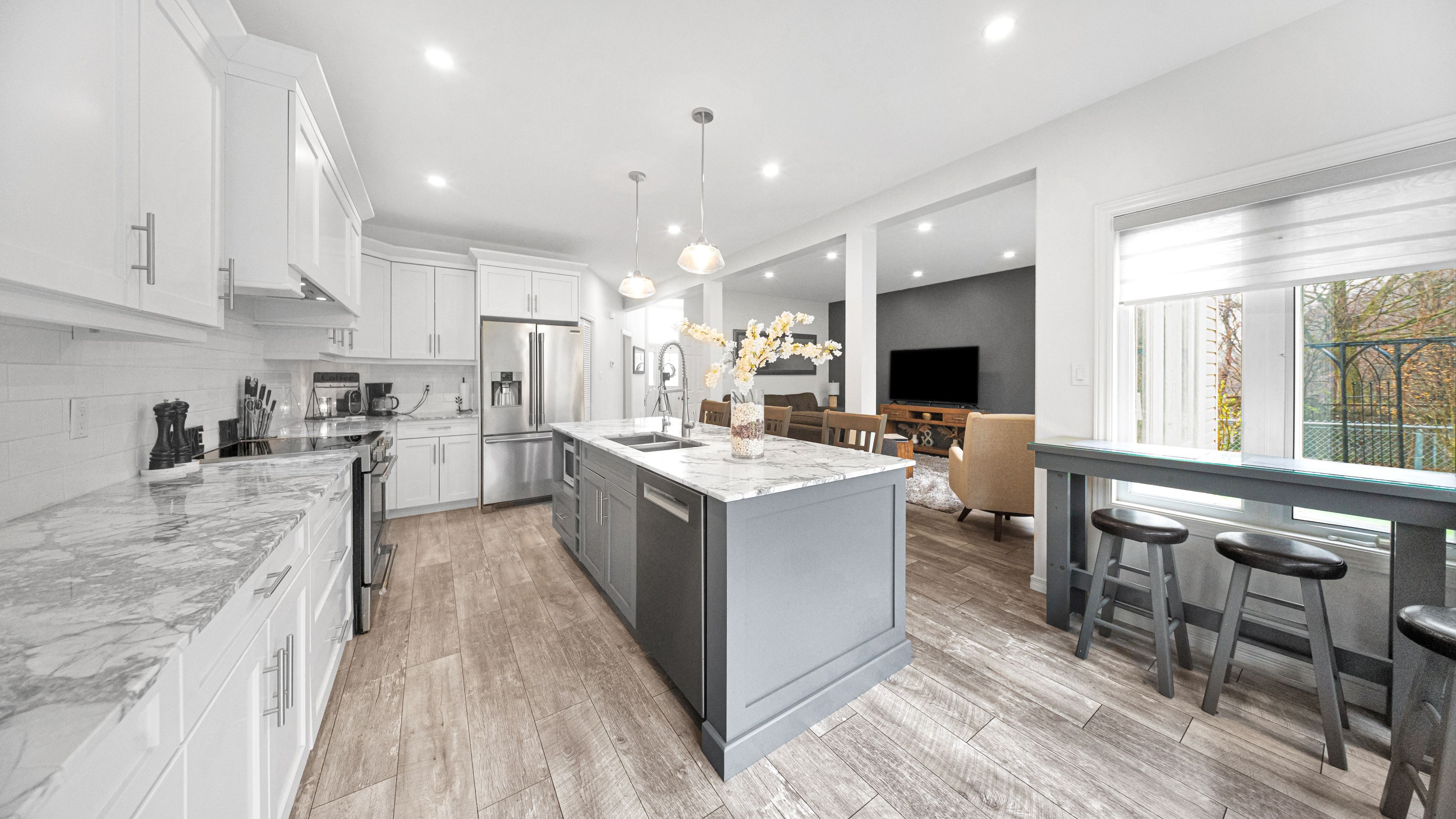 • Bright main floor with large windows and a renovated open kitchen.