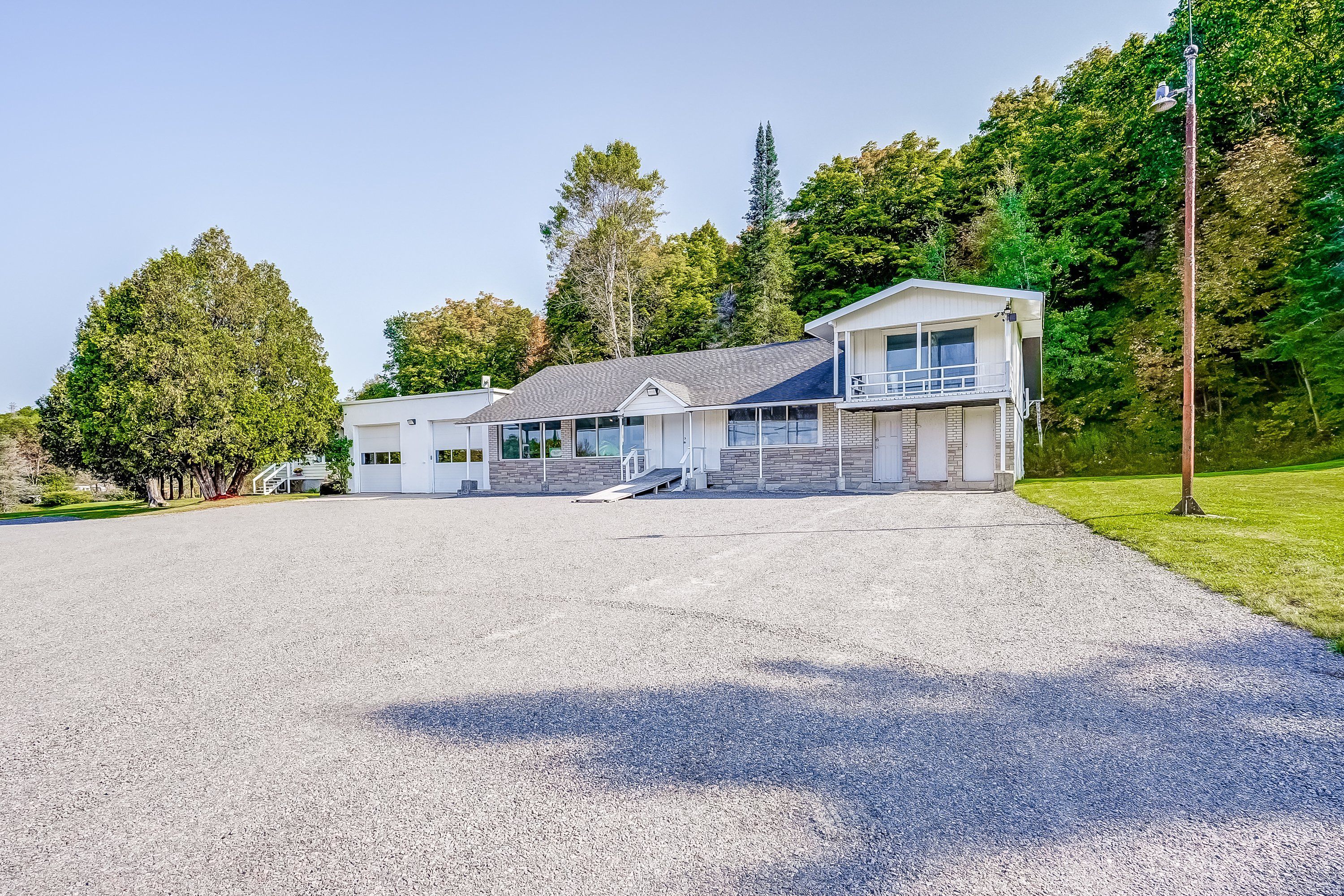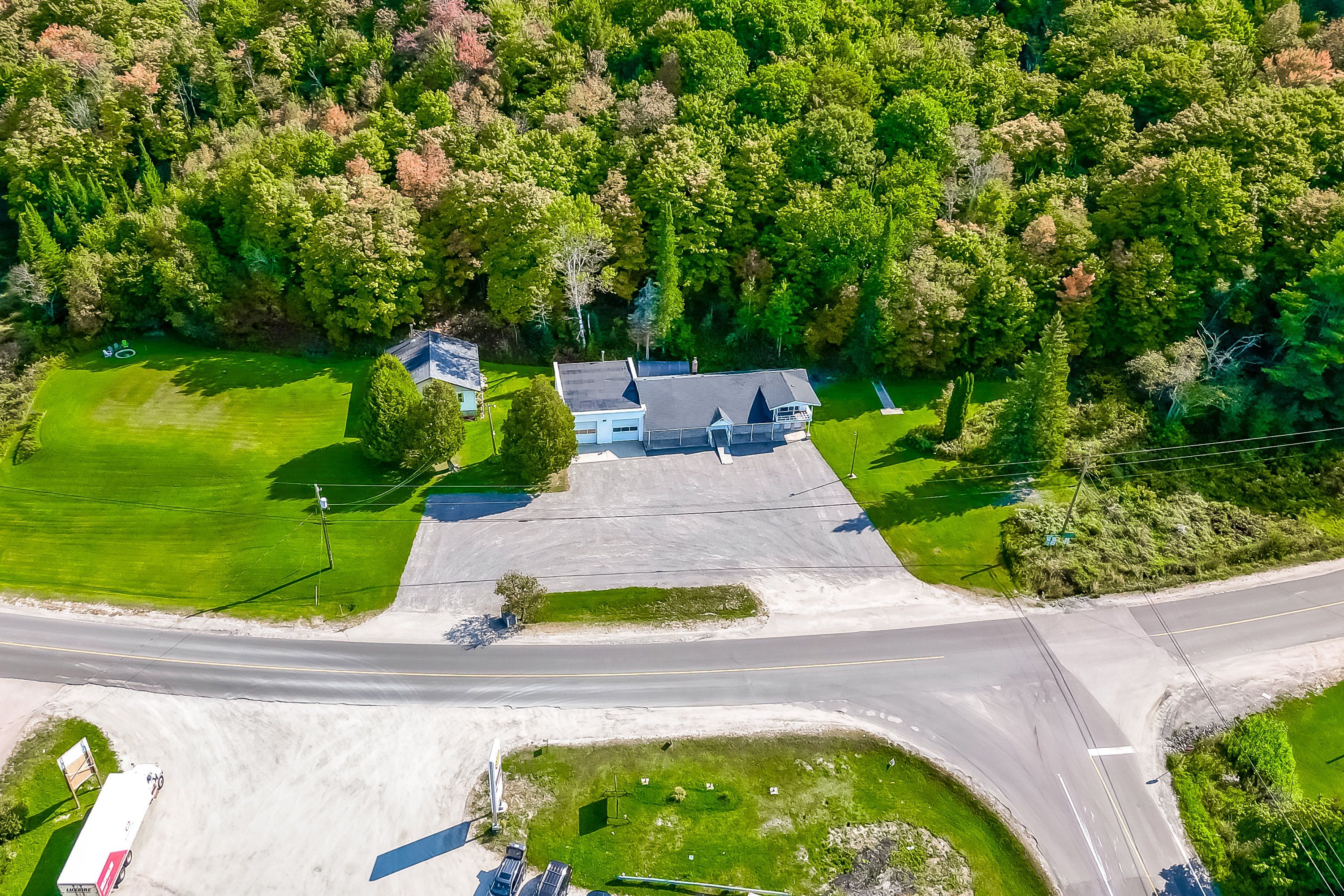 Attention investors - end users - live / work - value here! Approx 11 acres, approx 700 ft frontage on muskoka's busy arterial roads / intersection at windermere road & raymond road - 4500-6000 daily summer vehicles and 3100+ year round! Excellent visibility 2023 clean esa parking for approx 35 vehicles! 3000 sf commercial use building currently automotive repair 1000 sf two bay w/2017 equip: 10,000 lb hoist, tire balancer, tire machine. 160 psi compressor. Two 10 ft doors with 12' 4" clear height. Location registered to issue safety certification permits (new owner must reapply) for car heavy truck and motorcycles! 2000 sf showroom/office & separate 1000 sf renovated 3br bungalow too! Separate metre with 200 amp service. Commercially zoned with numerous possibilities! Automotive service - specialty retail or dealership - dry marine, repair & storage - cannabis store - restaurant - convenience store or combination of them all! Beautiful rear acreage with forest and trails!