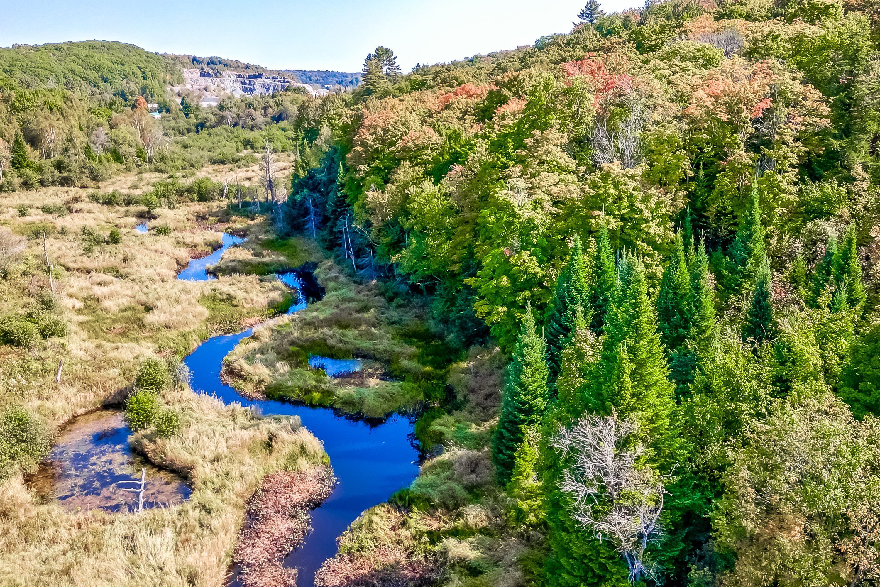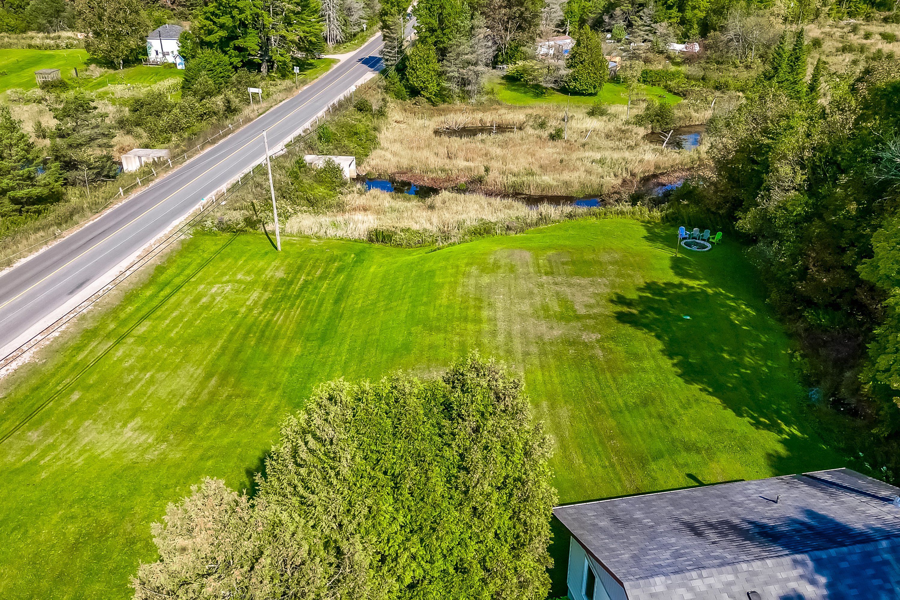 • Beautiful rear acreage features forest and trails for outdoor activities.