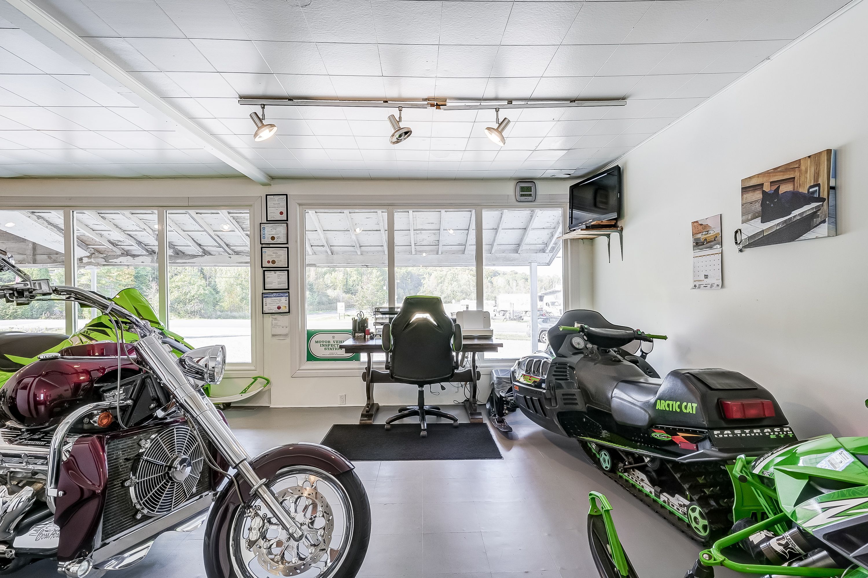 • Current automotive building equipped for repairs and certifications.