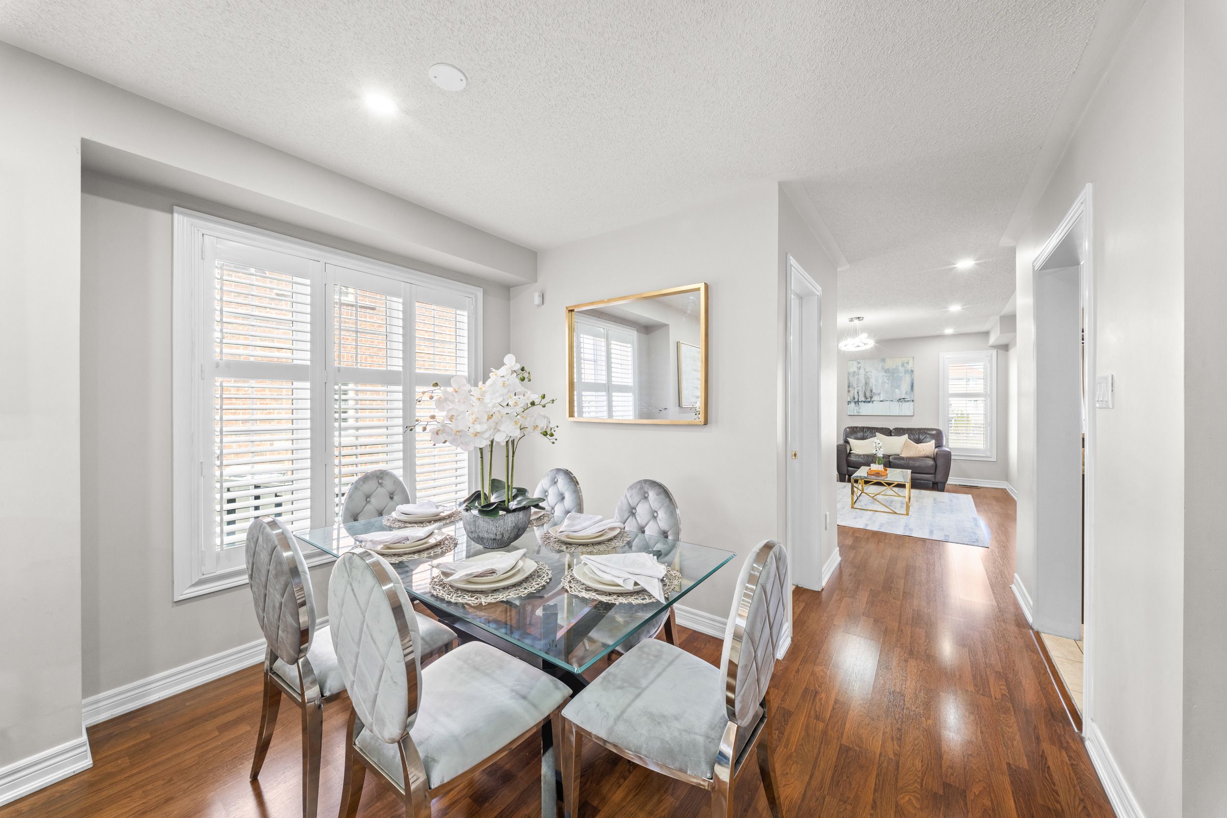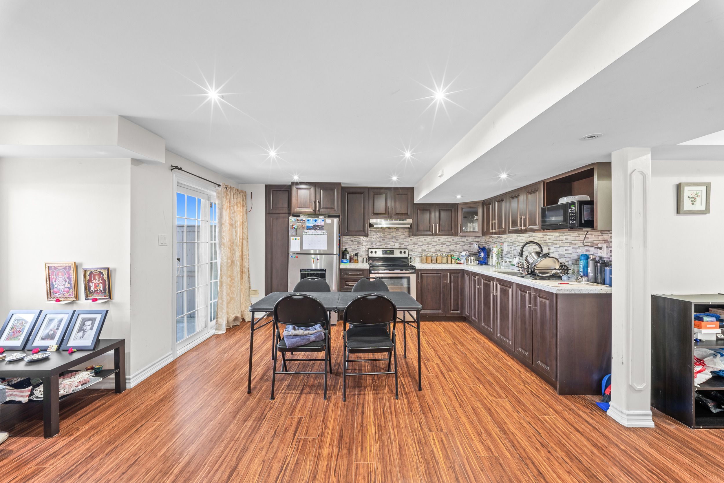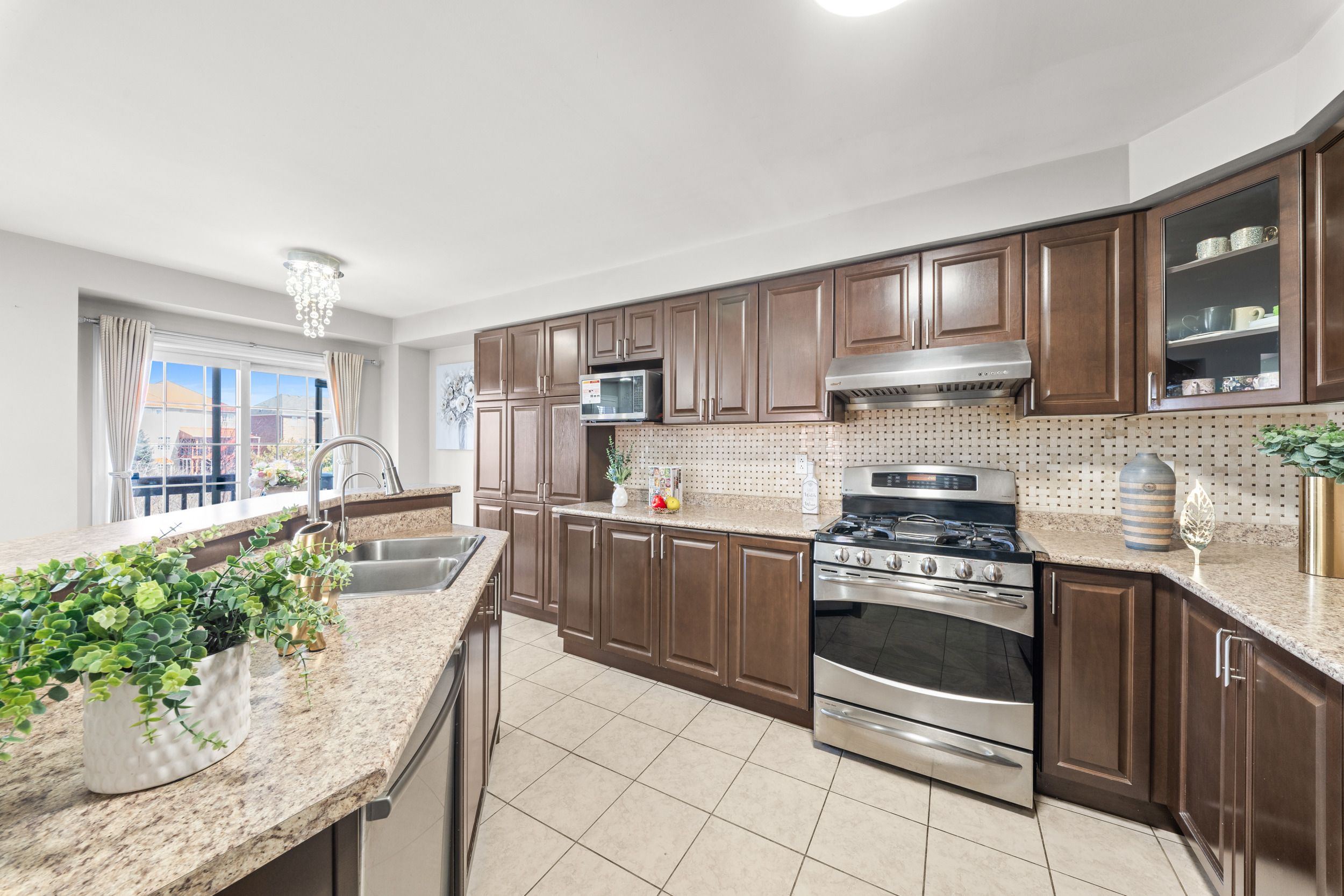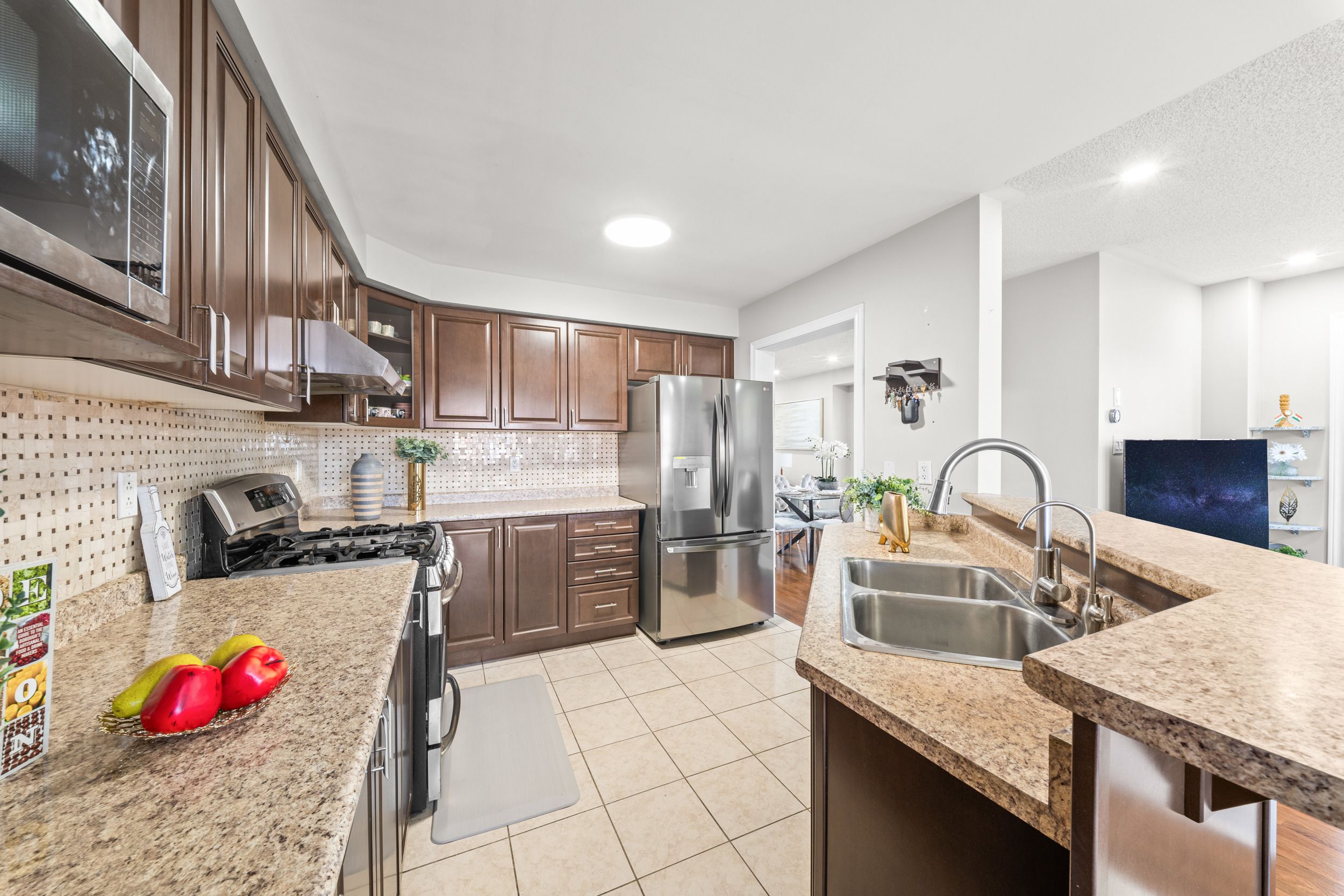 Stunning 3-bedroom end-unit townhouse with a finished 1-bedroom walkout basement on a premium ravine lot with no rear neighbours. Features a double door entrance and extended private driveway. 9 ft ceilings on the main floor. Carpet-free home with separate living, dining, and family rooms. Upgraded kitchen with extended cabinetry and stainless steel appliances. Second-floor laundry plus separate laundry in the basement. Spacious principal rooms with built-in closets throughout. Located in a high-demand area within walking distance to schools, parks, plazas, and public transit.