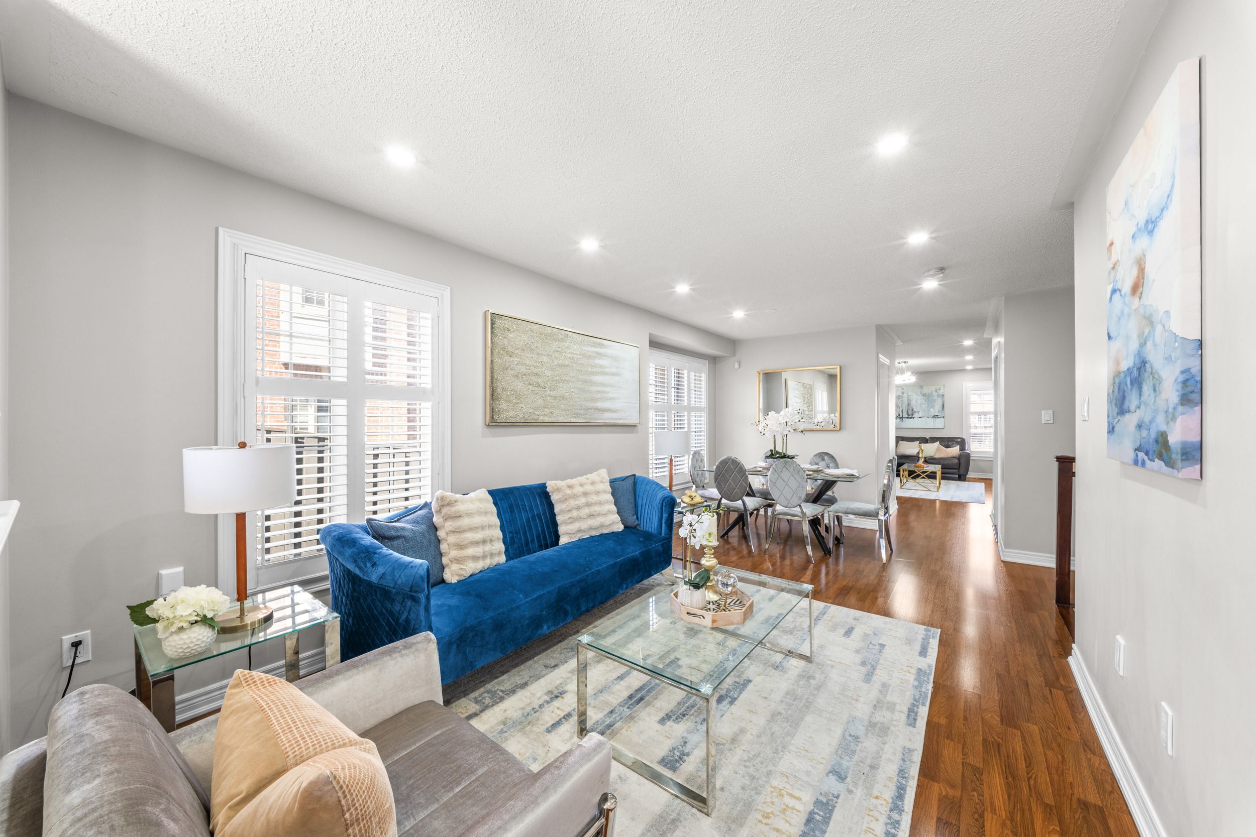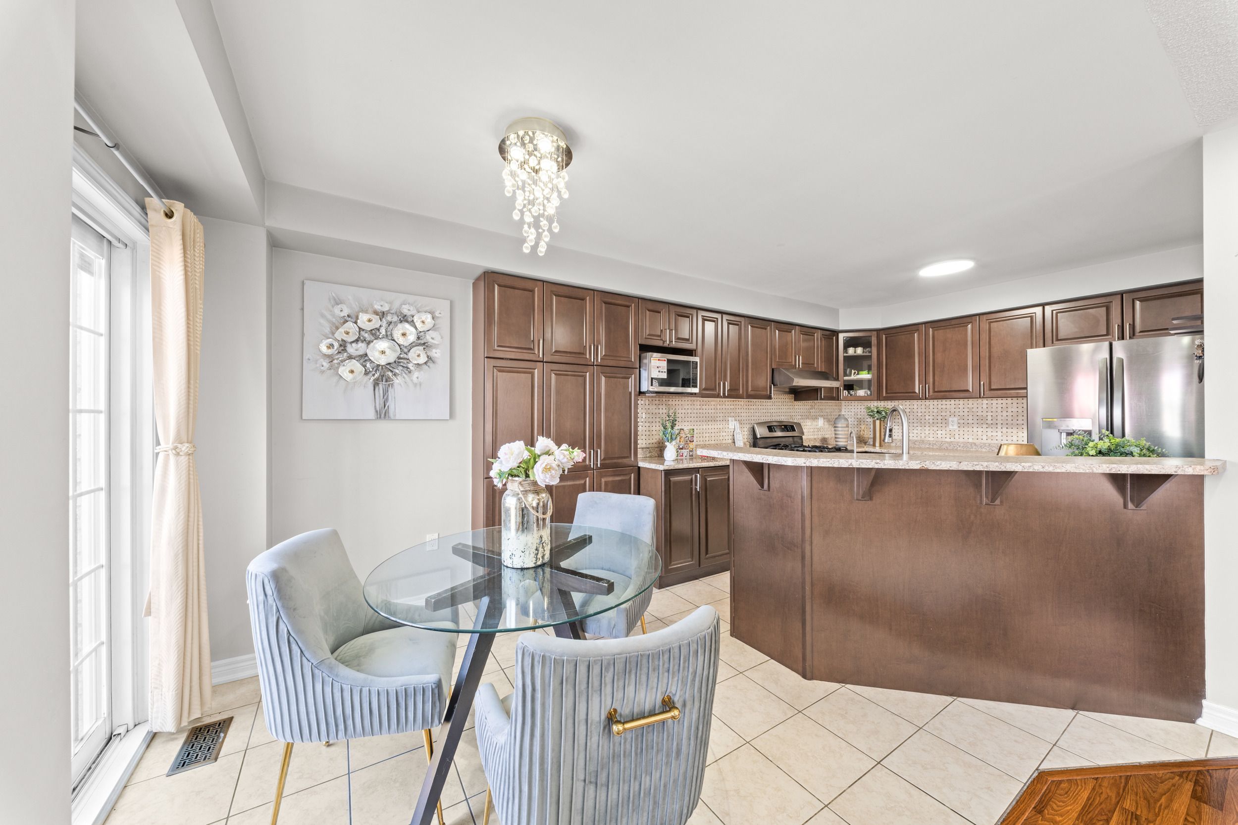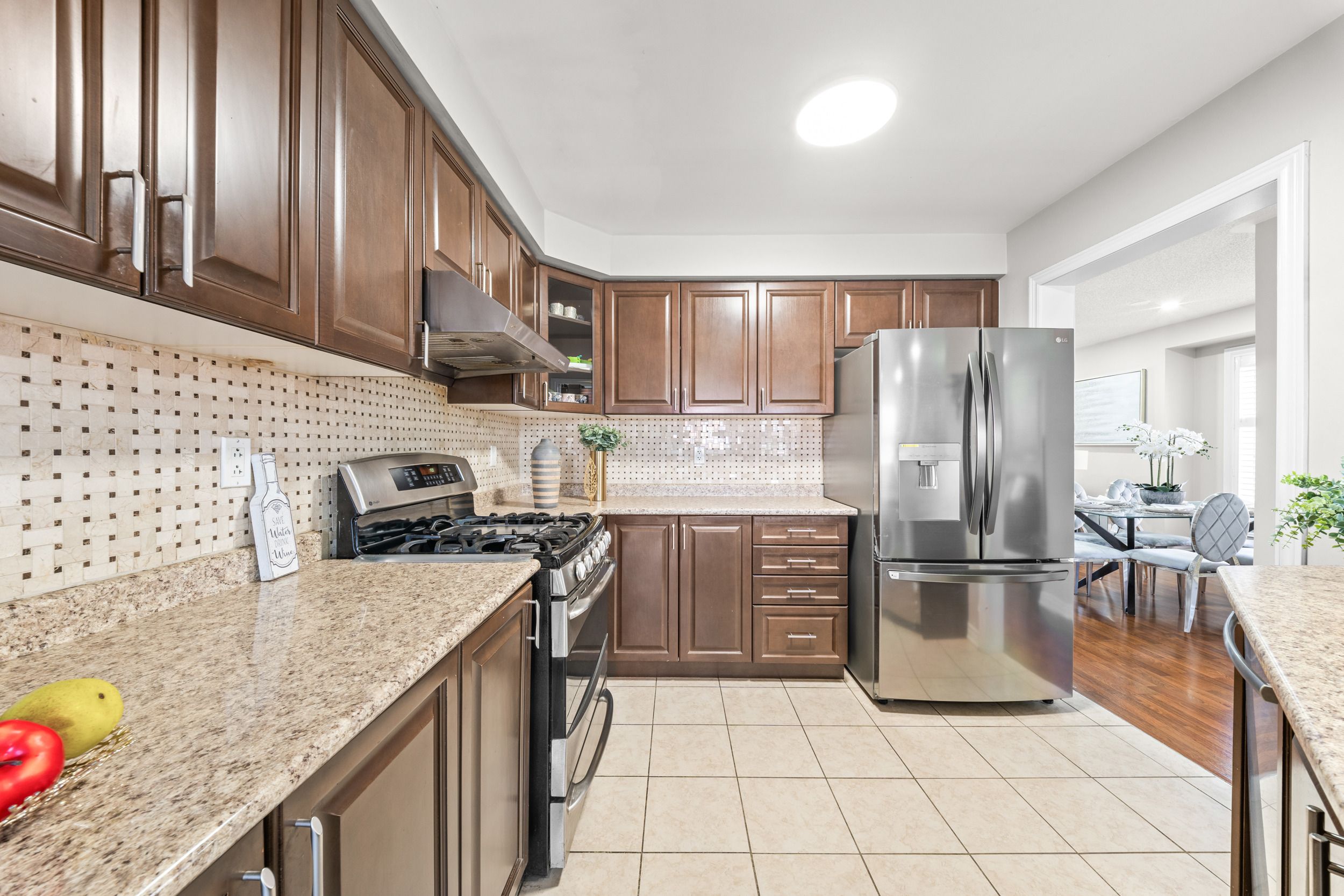 Stunning 3-bedroom end-unit townhouse with a finished 1-bedroom walkout basement on a premium ravine lot with no rear neighbours. Features a double door entrance and extended private driveway. 9 ft ceilings on the main floor. Carpet-free home with separate living, dining, and family rooms. Upgraded kitchen with extended cabinetry and stainless steel appliances. Second-floor laundry plus separate laundry in the basement. Spacious principal rooms with built-in closets throughout. Located in a high-demand area within walking distance to schools, parks, plazas, and public transit.