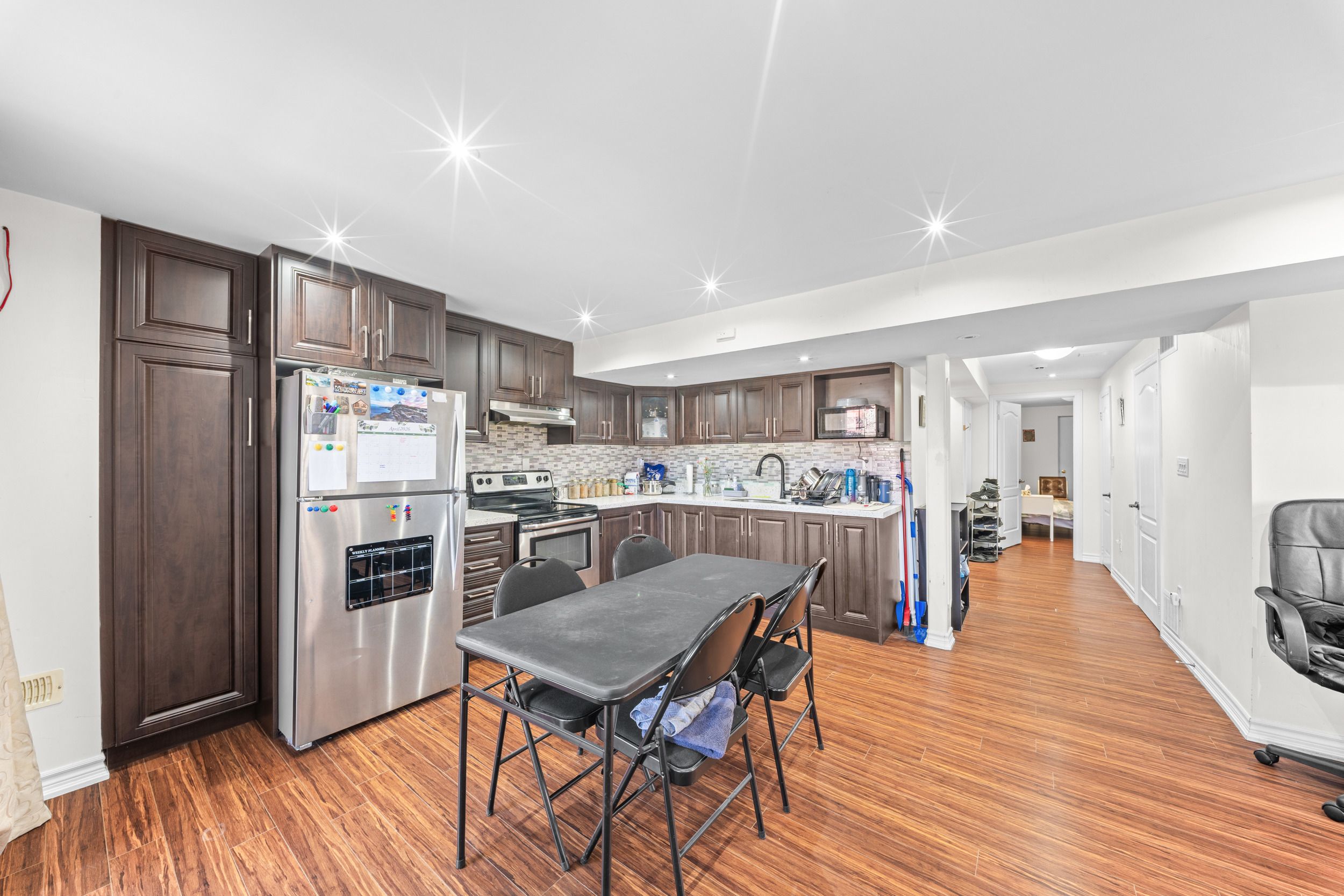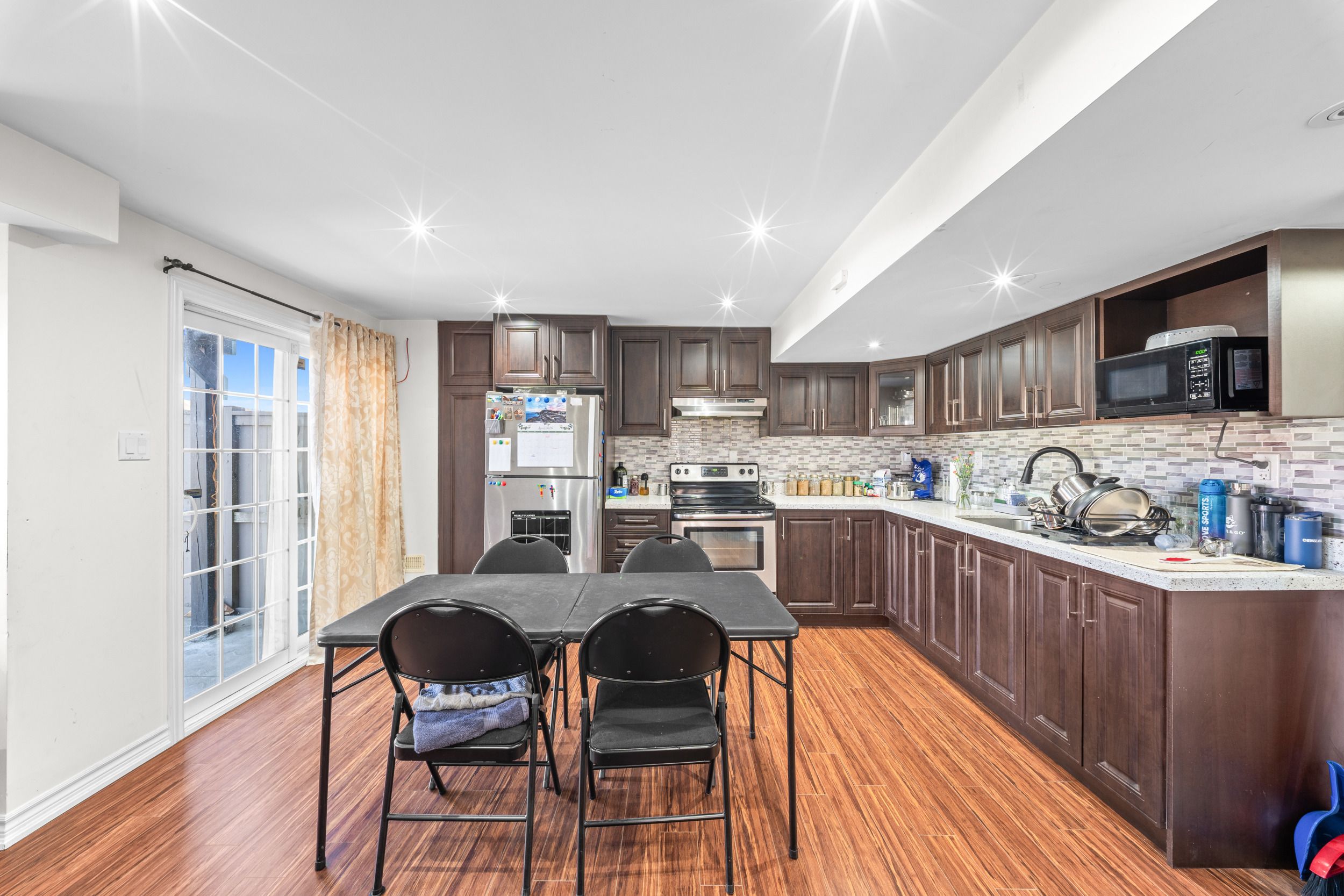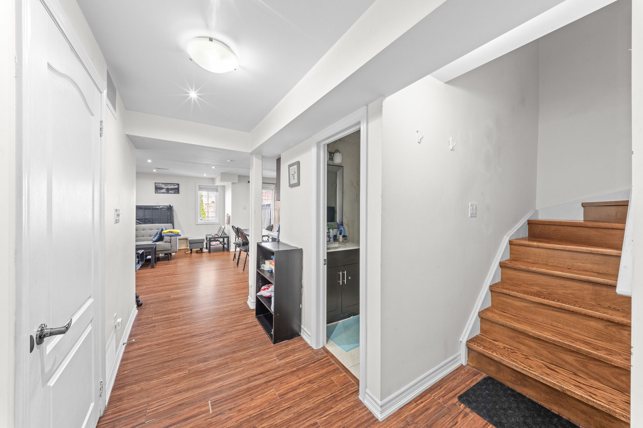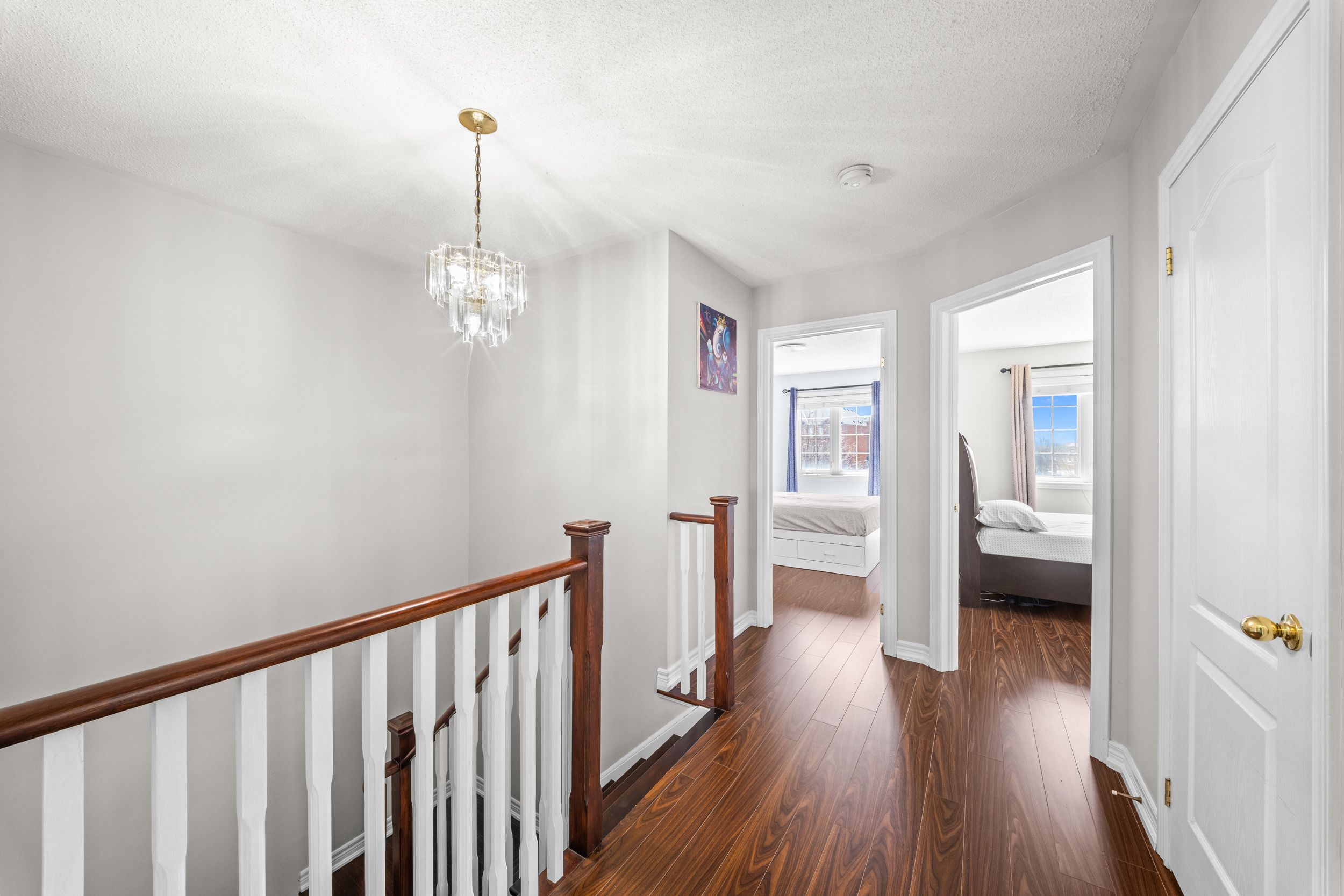 Stunning 3-bedroom end-unit townhouse with a finished 1-bedroom walkout basement on a premium ravine lot with no rear neighbours. Features a double door entrance and extended private driveway. 9 ft ceilings on the main floor. Carpet-free home with separate living, dining, and family rooms. Upgraded kitchen with extended cabinetry and stainless steel appliances. Second-floor laundry plus separate laundry in the basement. Spacious principal rooms with built-in closets throughout. Located in a high-demand area within walking distance to schools, parks, plazas, and public transit.