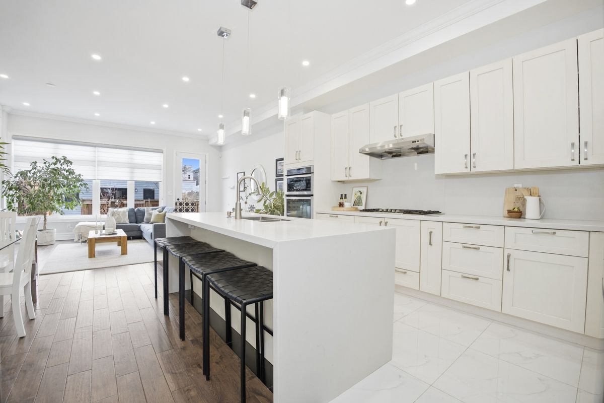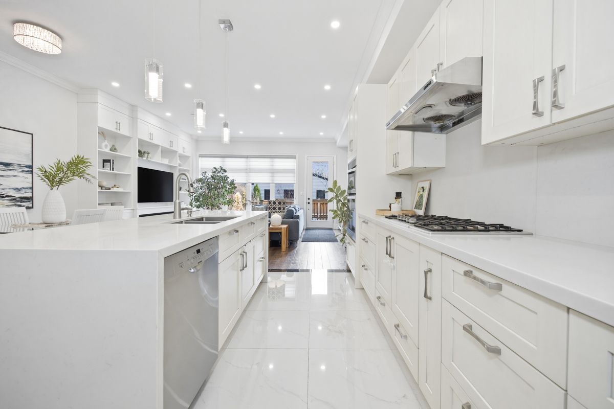 Welcome to east york! 95 dunkirk road, a custom-built (2017) masterpiece in the heart of danforth village, showcasing timeless elegance, exceptional craftsmanship, and undeniable curb appeal. Featuring a striking limestone façade and exquisite finishes throughout, this home has been meticulously designed with no expense spared. Step inside to discover 10-foot ceilings on the main floor, rich hardwood flooring, crown moulding, pot lights, and custom window coverings, all complementing a traditional yet functional layout with formal living and dining rooms-perfect for both everyday living and sophisticated entertaining. The chef-inspired kitchen is a true showstopper, complete with a centre island with bar seating, quartz countertops and backsplash, under-cabinet lighting, and a full suite of stainless steel and integrated appliances. An inviting breakfast area flows seamlessly into the spacious and cozy family room with custom built-in, with a walkout to the private backyard-ideal for indoor-outdoor living. Upstairs, you'll find four generously sized bedrooms bathed in natural light from two skylights. The luxurious primary retreat features his-and-hers closets and a spa-like ensuite with double sinks, a soaker tub, and a glass-enclosed shower. The fully finished basement offers incredible versatility with 8-foot ceilings, a massive recreation room perfect for entertaining, movie nights, or a home gym, and a walkout to the backyard. A fifth bedroom with its own ensuite makes for an ideal nanny or in-law suite. Additional highlights include a custom-built double-car garage off the laneway, bbq gas hookup on the deck, 200-amp electrical panel, and integrated security cameras. Situated in a family-friendly neighbourhood just a short walk to danforth avenue, woodbine ttc subway station, parks, schools, and local amenities, this exceptional home offers the perfect blend of luxury, comfort, and convenience.