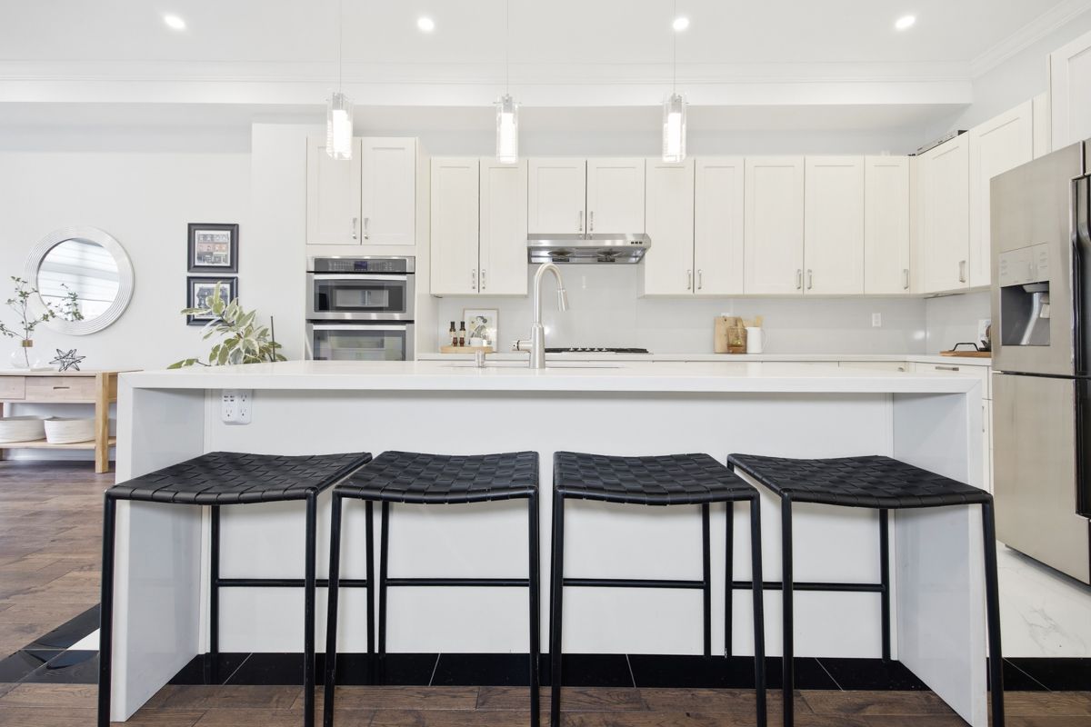 • Chef-inspired kitchen with quartz countertops and premium integrated appliances.