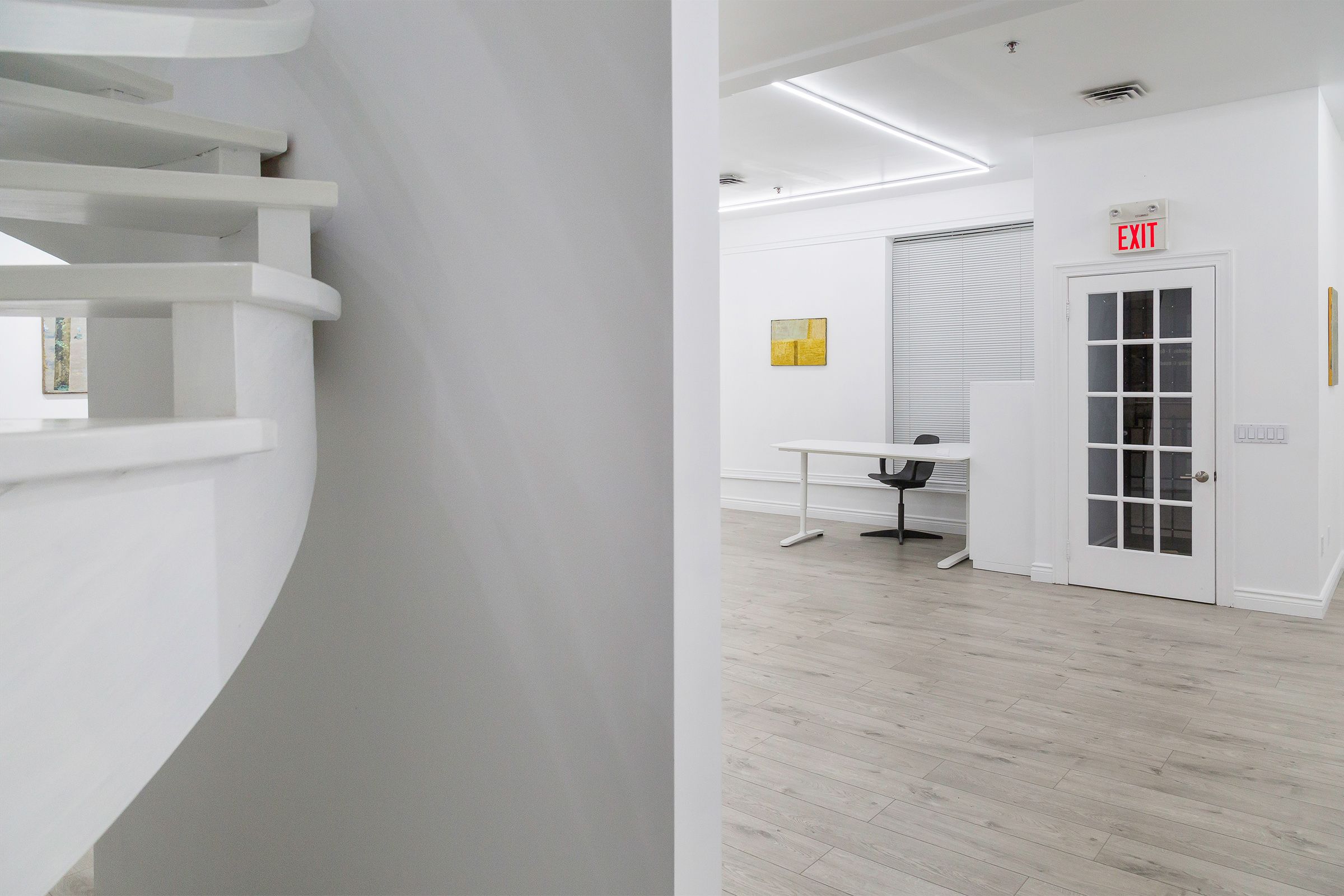 Corner south/east facing unit. Office layout consists of reception / showroom, 4 privates; boardroom. Bright open areas; two washrooms, shower and dry kitchenette. 1357 sq. Ft. On ground floor plus 675 sq. Ft. Usable mezzanine. 60 amps, 30 kva transformer; led lights. Fully sprinklered thru-out. 30/60 day occupancy