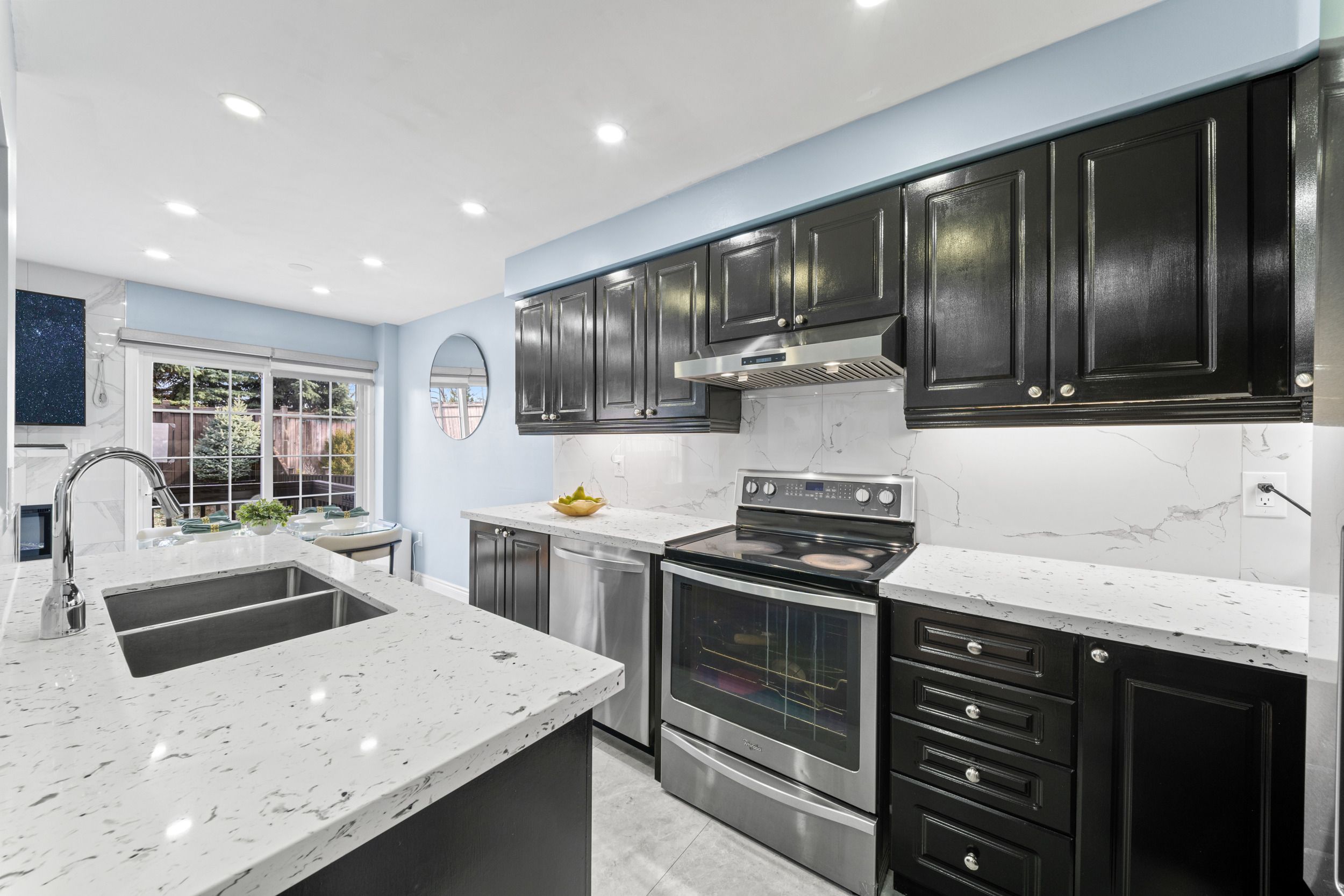 • Updated kitchen featuring new stainless steel appliances and porcelain tiles.