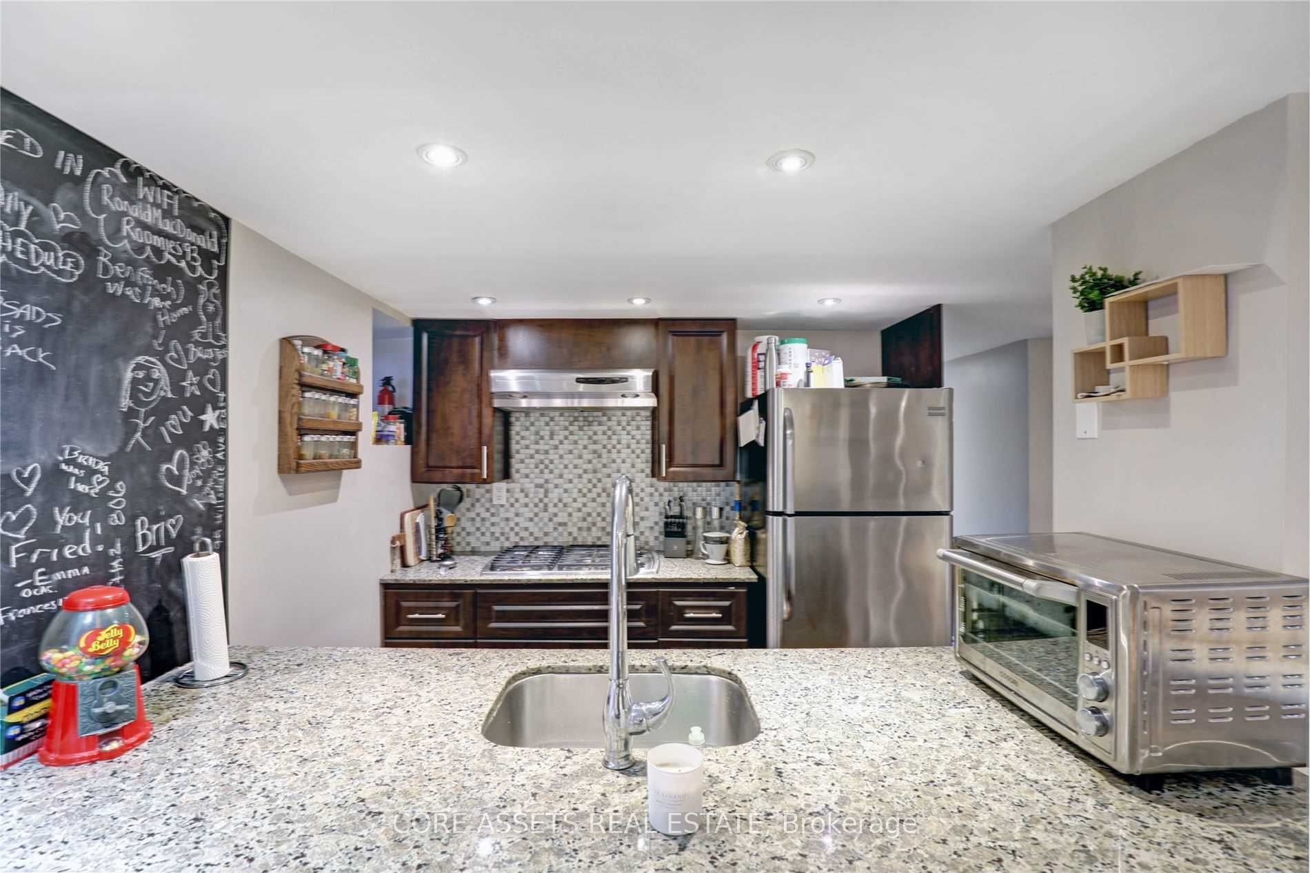 • Kitchen features granite countertops and stainless steel appliances.