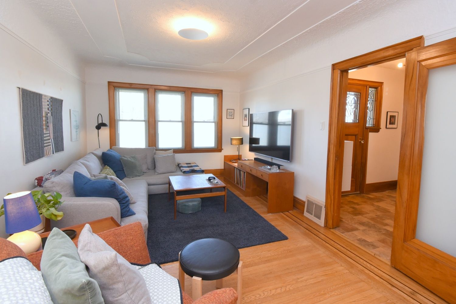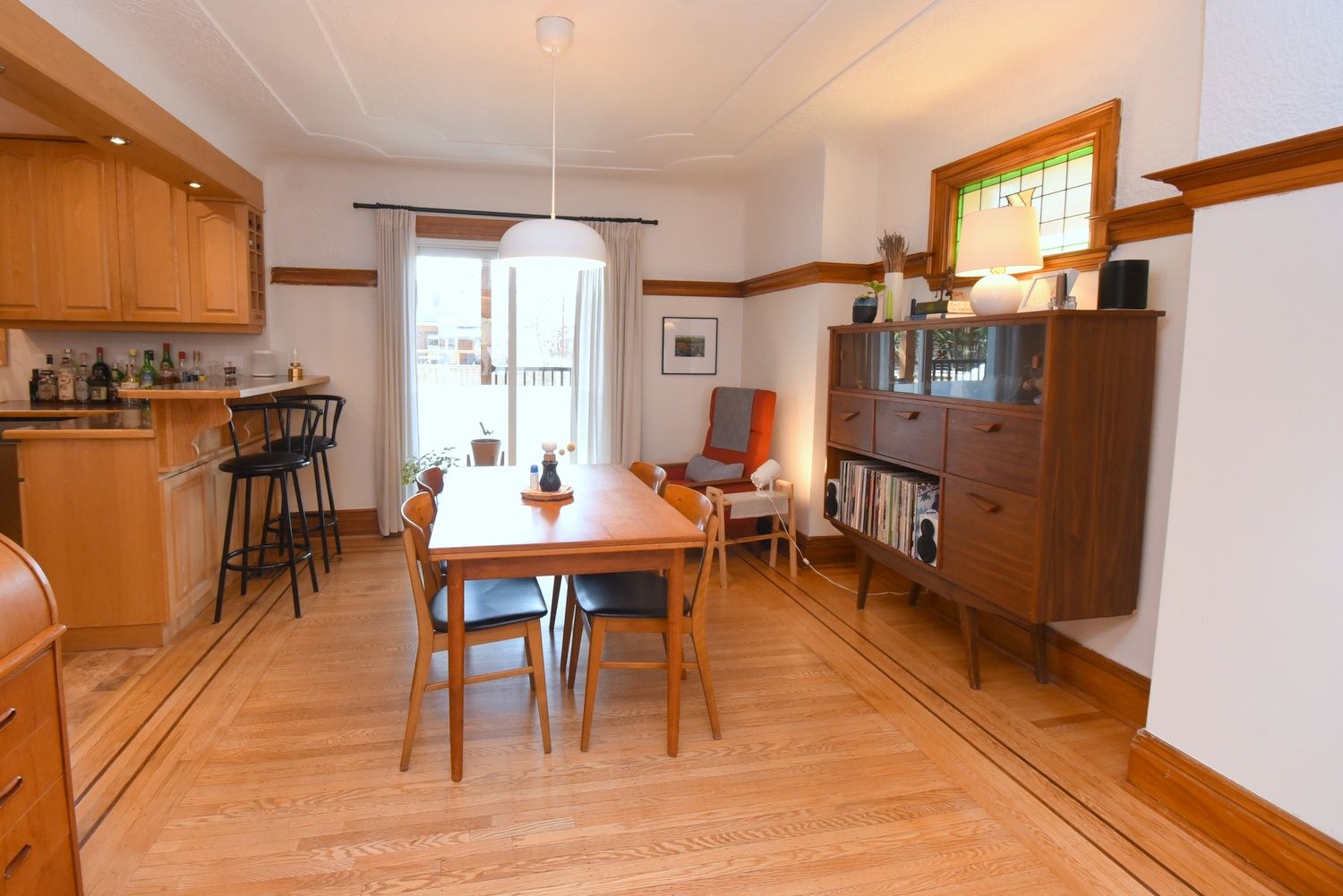 • Charming home with original features like lead glass door and hardwood floors.