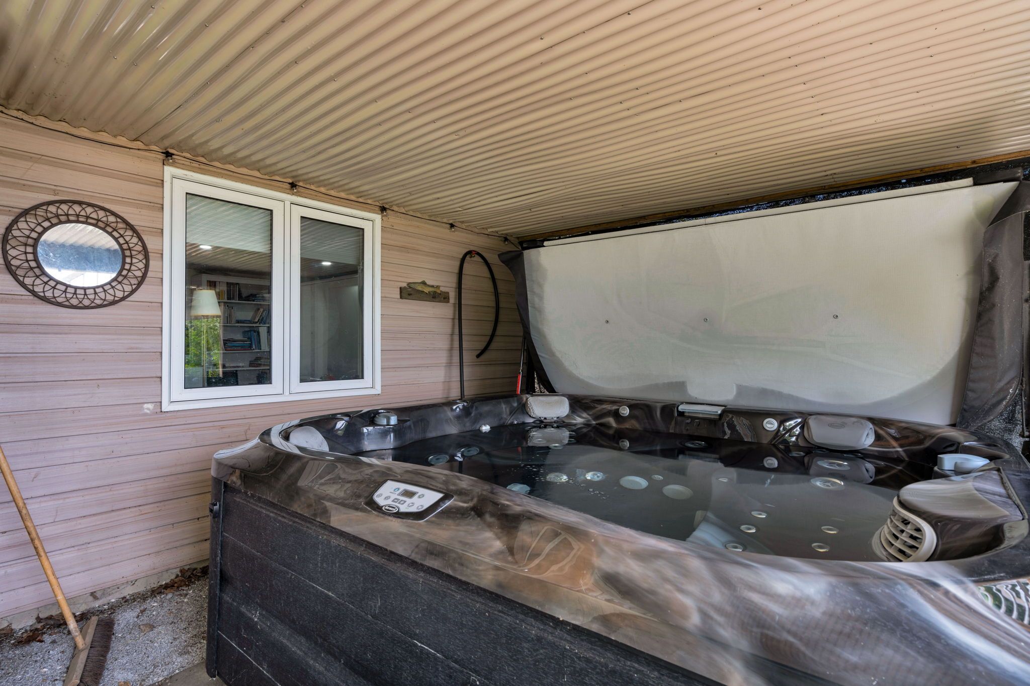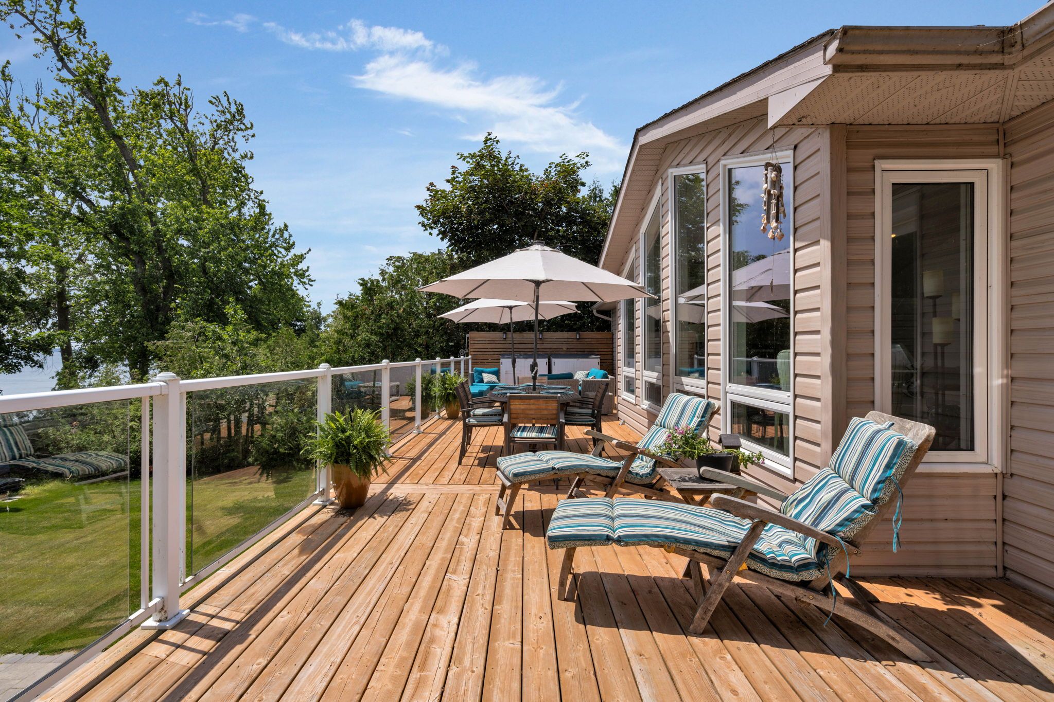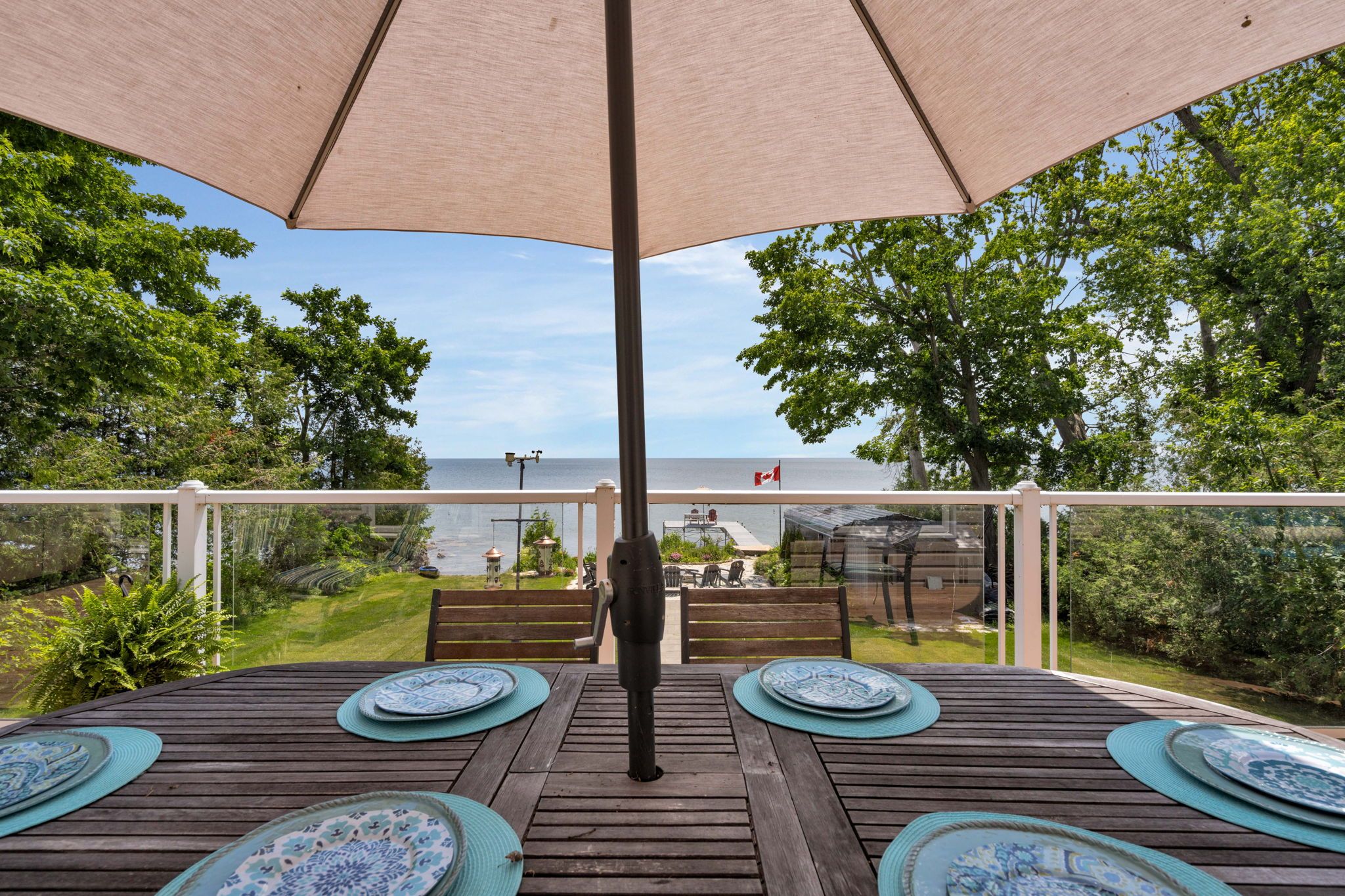 • Extensive outdoor features including a dock and shallow beach entry.