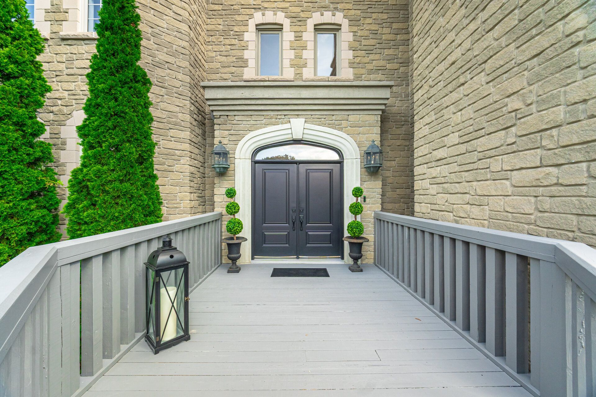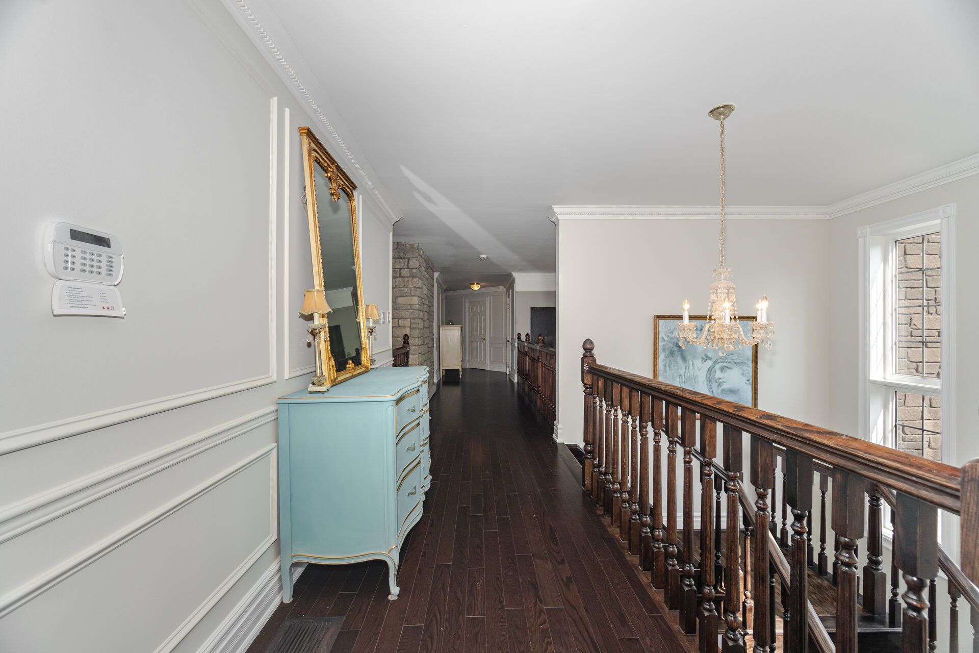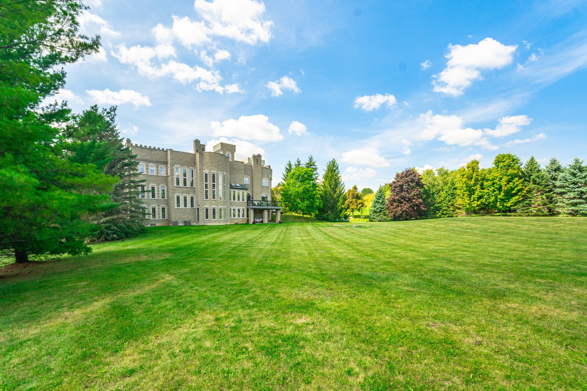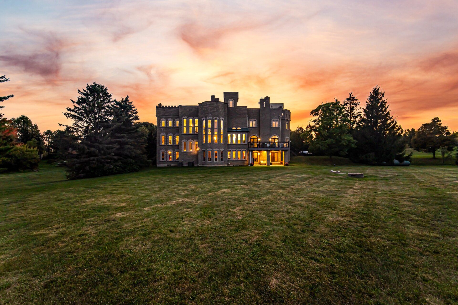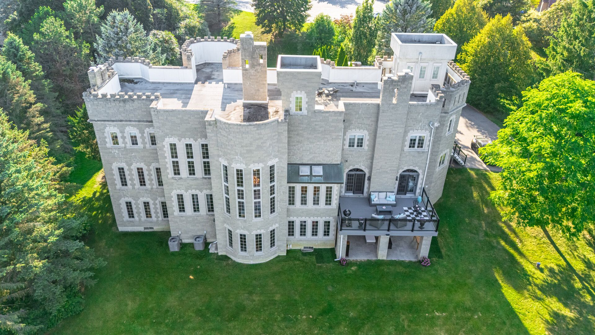 A castle on the golf course - first time ever offered for sale, over 8000 sq ft finished area plus another 2600 sq ft that can be completed . This one-of-a-kind residence is a true architectural treasure. Originally showcased by the canadian cancer society designer showcase, this remarkable estate is set on 2 private acres backing directly onto the golf course. Privately tucked back from the road, guests are welcomed onto a grand front deck that sets the stage for the elegance within. The impressive foyer is anchored by a two-storey stone fireplace, enhancing the homes sense of grandeur and warmth. The living room offers a sophisticated yet inviting space for both relaxing and entertaining. The formal dining room features a dramatic two-way fireplace, soaring ceilings, and detailed crown mouldings, creating the perfect backdrop for memorable gatherings. A private home office adds character with aged walls and a hand-painted mural. At the heart of the home, a neo-classical kitchen blends timeless design with function, opening to a versatile family room with its own fireplace and two walkouts to the expansive deck overlooking the golf course. Upstairs, the master suite is a serene retreat, featuring a walk-in closet and a spa-like 6-piece ensuite. Three additional bedrooms each enjoy their own ensuite baths, including one extraordinary train room set a whimsical escape for hobbyists of any age. The lower level extends the living space with a finished basement, offering a games room, recreation area, and a unique sub-basement, providing endless possibilities for entertaining or relaxation.