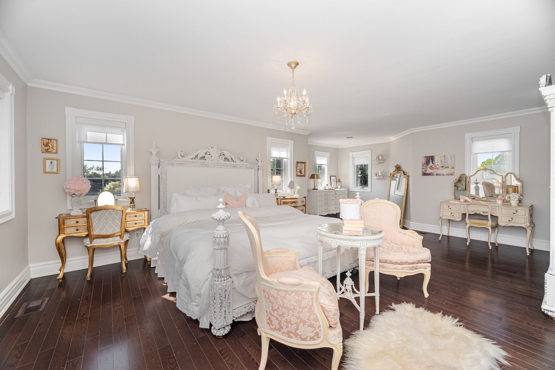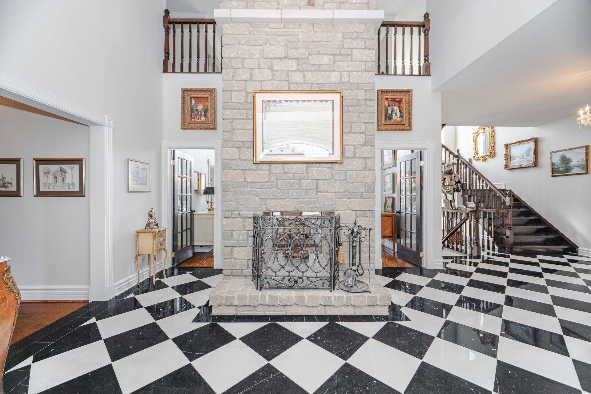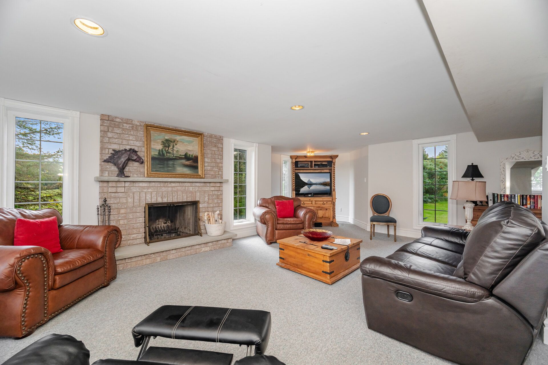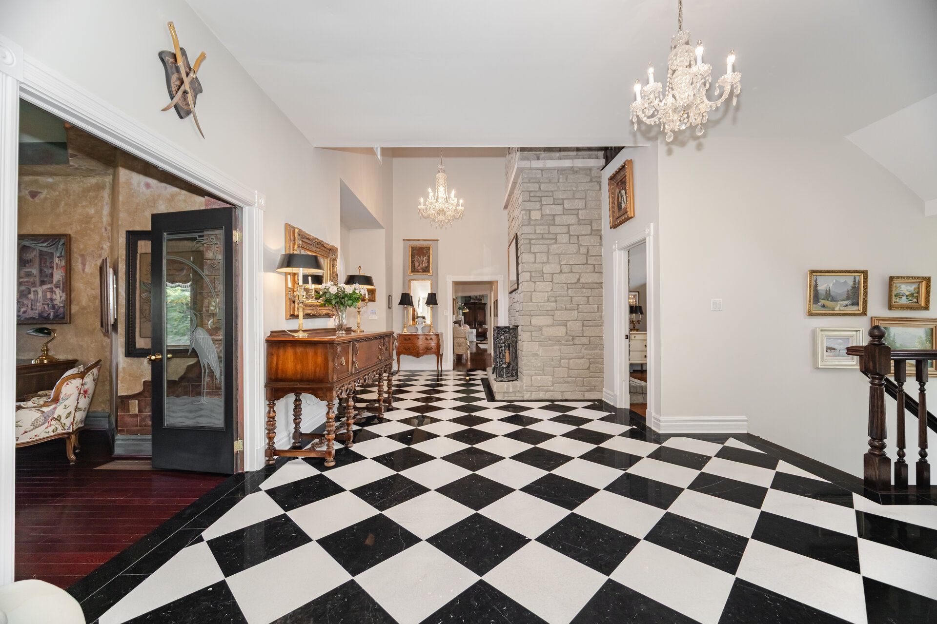 A castle on the golf course - first time ever offered for sale, over 8000 sq ft finished area plus another 2600 sq ft that can be completed . This one-of-a-kind residence is a true architectural treasure. Originally showcased by the canadian cancer society designer showcase, this remarkable estate is set on 2 private acres backing directly onto the golf course. Privately tucked back from the road, guests are welcomed onto a grand front deck that sets the stage for the elegance within. The impressive foyer is anchored by a two-storey stone fireplace, enhancing the homes sense of grandeur and warmth. The living room offers a sophisticated yet inviting space for both relaxing and entertaining. The formal dining room features a dramatic two-way fireplace, soaring ceilings, and detailed crown mouldings, creating the perfect backdrop for memorable gatherings. A private home office adds character with aged walls and a hand-painted mural. At the heart of the home, a neo-classical kitchen blends timeless design with function, opening to a versatile family room with its own fireplace and two walkouts to the expansive deck overlooking the golf course. Upstairs, the master suite is a serene retreat, featuring a walk-in closet and a spa-like 6-piece ensuite. Three additional bedrooms each enjoy their own ensuite baths, including one extraordinary train room set a whimsical escape for hobbyists of any age. The lower level extends the living space with a finished basement, offering a games room, recreation area, and a unique sub-basement, providing endless possibilities for entertaining or relaxation.