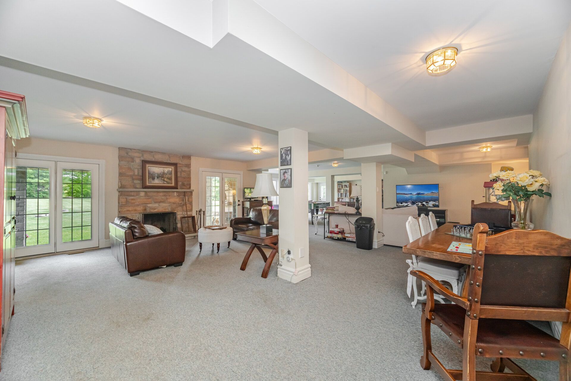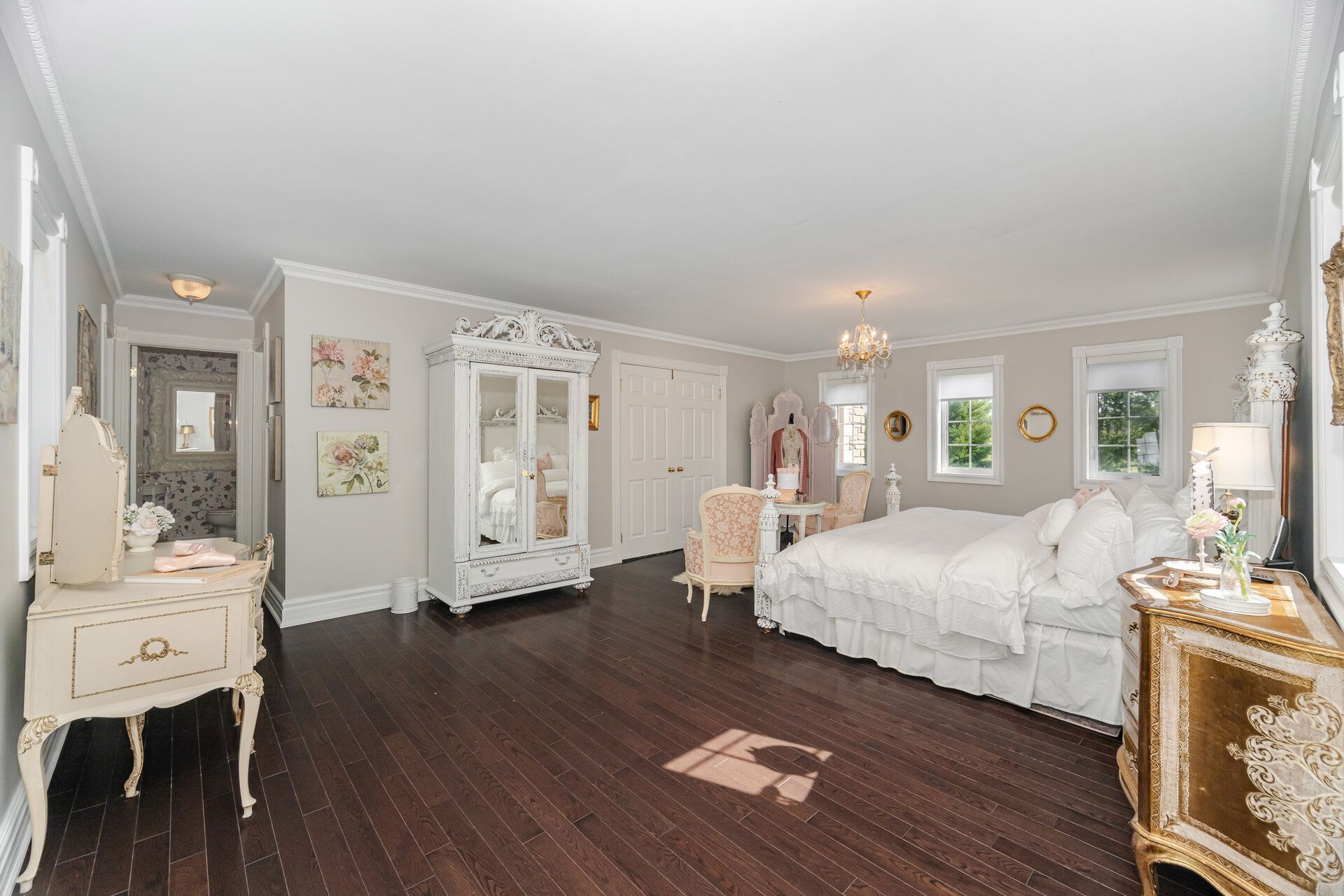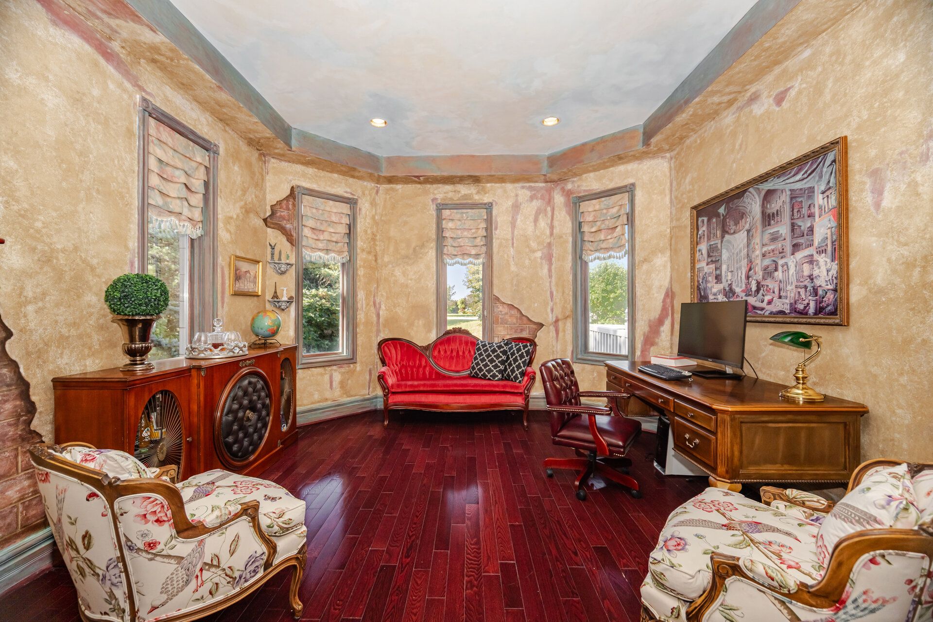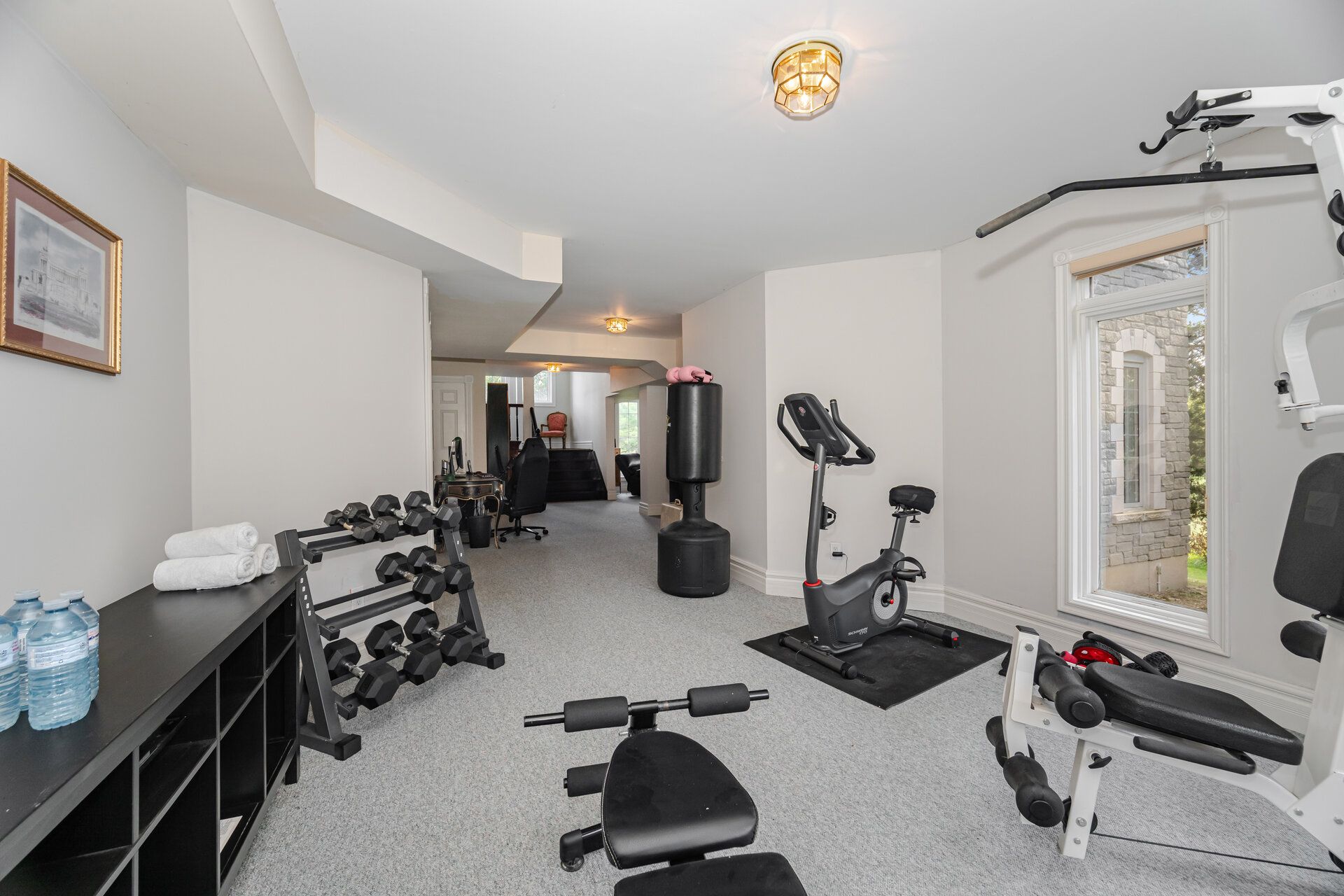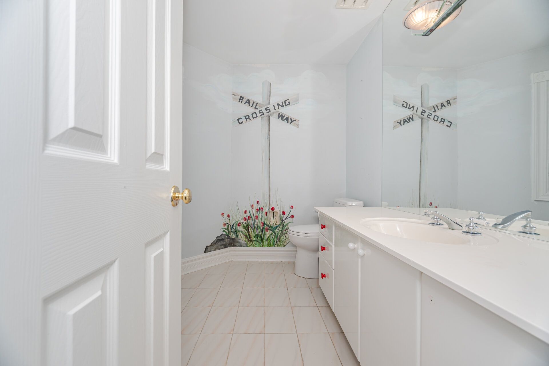 A castle on the golf course - first time ever offered for sale, over 8000 sq ft finished area plus another 2600 sq ft that can be completed . This one-of-a-kind residence is a true architectural treasure. Originally showcased by the canadian cancer society designer showcase, this remarkable estate is set on 2 private acres backing directly onto the golf course. Privately tucked back from the road, guests are welcomed onto a grand front deck that sets the stage for the elegance within. The impressive foyer is anchored by a two-storey stone fireplace, enhancing the homes sense of grandeur and warmth. The living room offers a sophisticated yet inviting space for both relaxing and entertaining. The formal dining room features a dramatic two-way fireplace, soaring ceilings, and detailed crown mouldings, creating the perfect backdrop for memorable gatherings. A private home office adds character with aged walls and a hand-painted mural. At the heart of the home, a neo-classical kitchen blends timeless design with function, opening to a versatile family room with its own fireplace and two walkouts to the expansive deck overlooking the golf course. Upstairs, the master suite is a serene retreat, featuring a walk-in closet and a spa-like 6-piece ensuite. Three additional bedrooms each enjoy their own ensuite baths, including one extraordinary train room set a whimsical escape for hobbyists of any age. The lower level extends the living space with a finished basement, offering a games room, recreation area, and a unique sub-basement, providing endless possibilities for entertaining or relaxation.