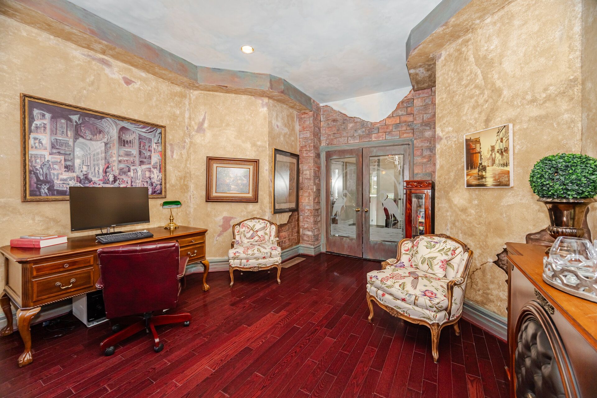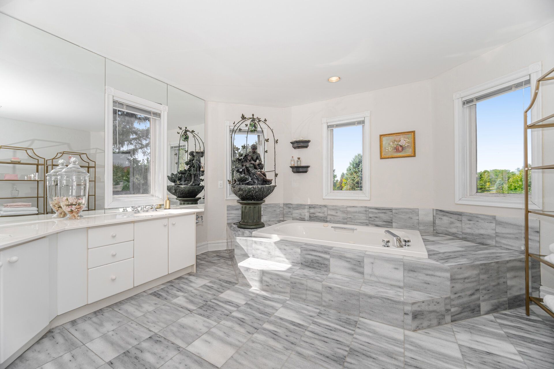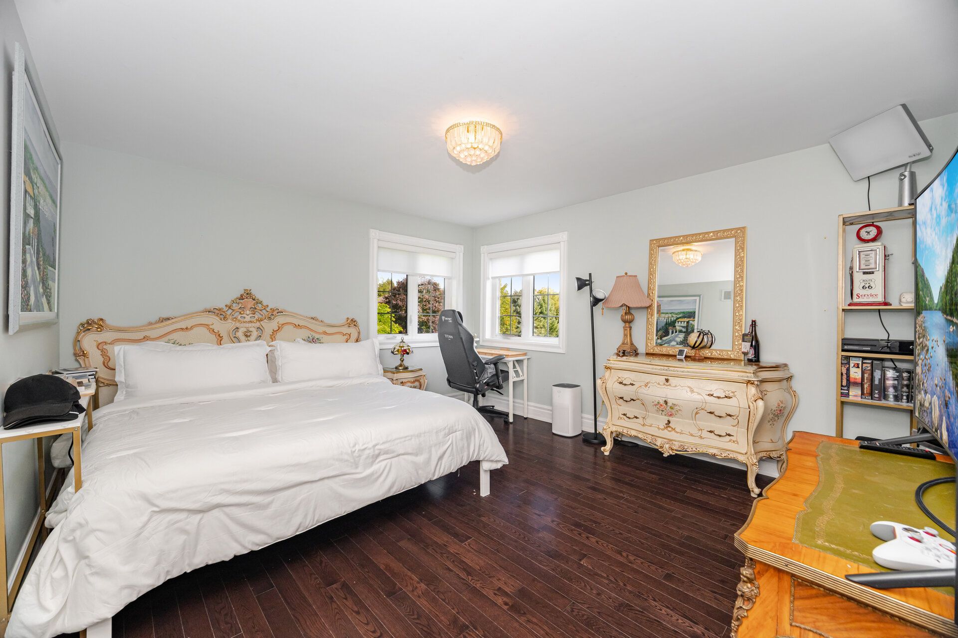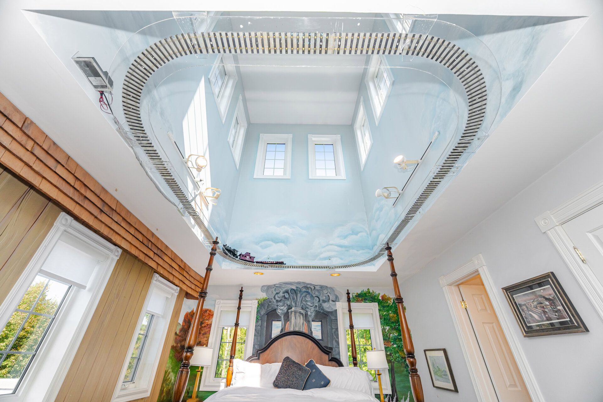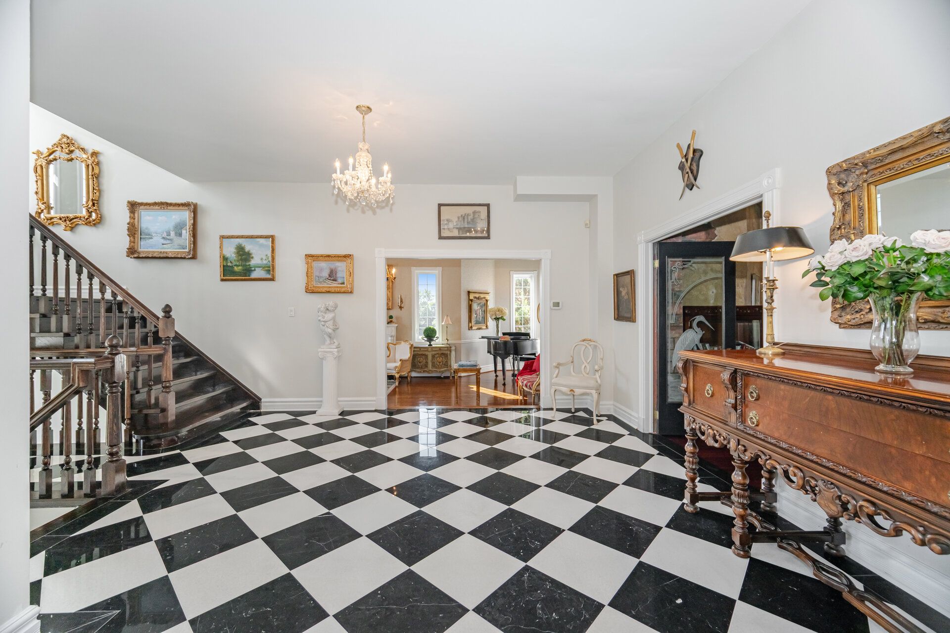 A castle on the golf course - first time ever offered for sale, over 8000 sq ft finished area plus another 2600 sq ft that can be completed . This one-of-a-kind residence is a true architectural treasure. Originally showcased by the canadian cancer society designer showcase, this remarkable estate is set on 2 private acres backing directly onto the golf course. Privately tucked back from the road, guests are welcomed onto a grand front deck that sets the stage for the elegance within. The impressive foyer is anchored by a two-storey stone fireplace, enhancing the homes sense of grandeur and warmth. The living room offers a sophisticated yet inviting space for both relaxing and entertaining. The formal dining room features a dramatic two-way fireplace, soaring ceilings, and detailed crown mouldings, creating the perfect backdrop for memorable gatherings. A private home office adds character with aged walls and a hand-painted mural. At the heart of the home, a neo-classical kitchen blends timeless design with function, opening to a versatile family room with its own fireplace and two walkouts to the expansive deck overlooking the golf course. Upstairs, the master suite is a serene retreat, featuring a walk-in closet and a spa-like 6-piece ensuite. Three additional bedrooms each enjoy their own ensuite baths, including one extraordinary train room set a whimsical escape for hobbyists of any age. The lower level extends the living space with a finished basement, offering a games room, recreation area, and a unique sub-basement, providing endless possibilities for entertaining or relaxation.