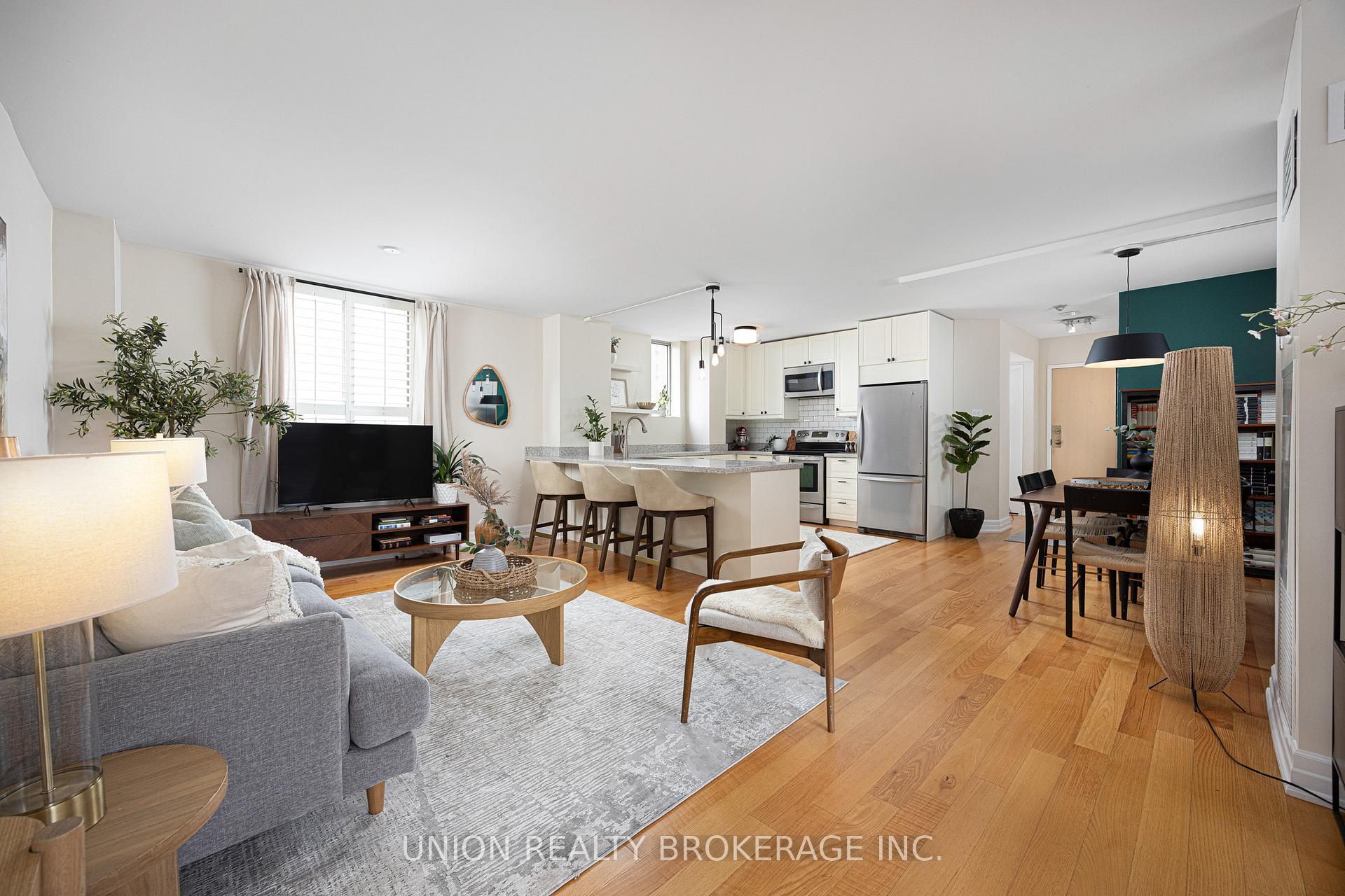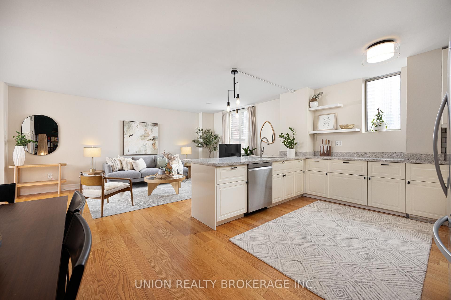 Client remarkswelcome to st. James square! A spacious and thoughtfully designed 1+1 bedroom, 2 bathroom condo in the highly desirable st. Lawrence market neighbourhood. Offering an exceptional layout, this suite features a large den with expansive windows-perfect for a home office or guest space-and a generously sized primary bedroom complete with an updated 4-piece ensuite. The oversized, renovated kitchen is a true standout, boasting a large peninsula, abundant cabinetry, and ample storage-ideal for both everyday living and entertaining. Enjoy multiple storage solutions including a hall closet and locker, plus the convenience of one parking space. This well-managed boutique building offers only five suites per floor, fostering a quiet, community-oriented atmosphere with many long-term owners. Residents enjoy access to excellent amenities including a gym and party room, while all-inclusive maintenance fees mean no additional utility bills. Perfectly situated on a charming street near jarvis & adelaide, you'll experience the best of both worlds. Nestled in the northwest corner of the historic st. Lawrence market neighbourhood, you're just steps to the iconic market, distillery district, shops, and restaurants-while also being moments to yonge street, the eaton centre, and toronto's financial district. If you're seeking the character and charm of st. Lawrence paired with the convenience and energy of downtown living, this is the one.