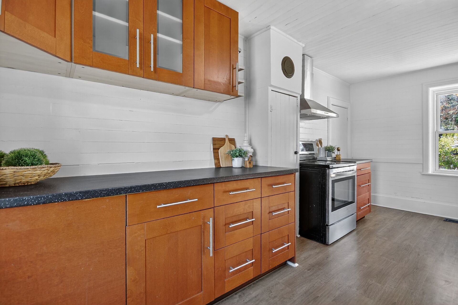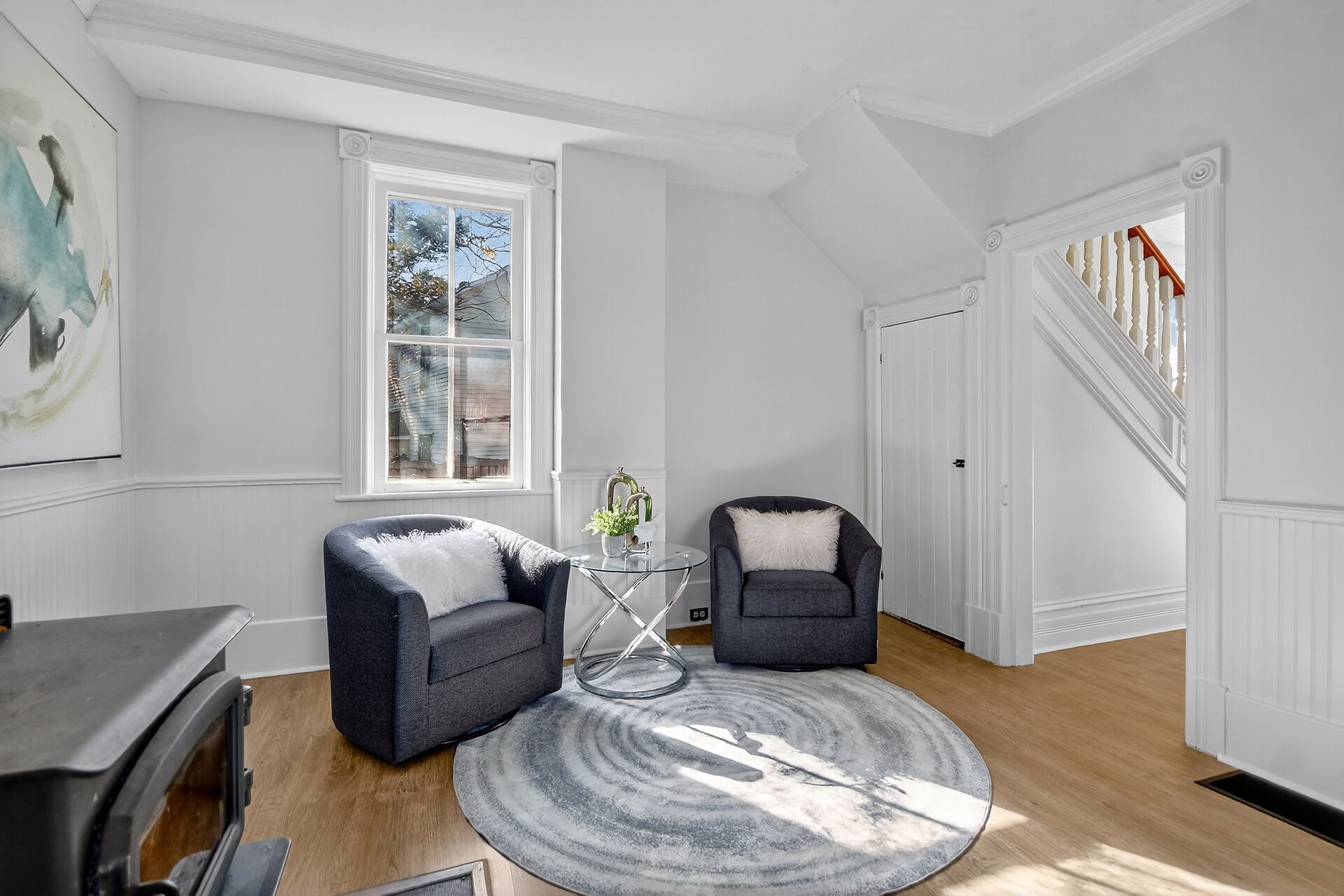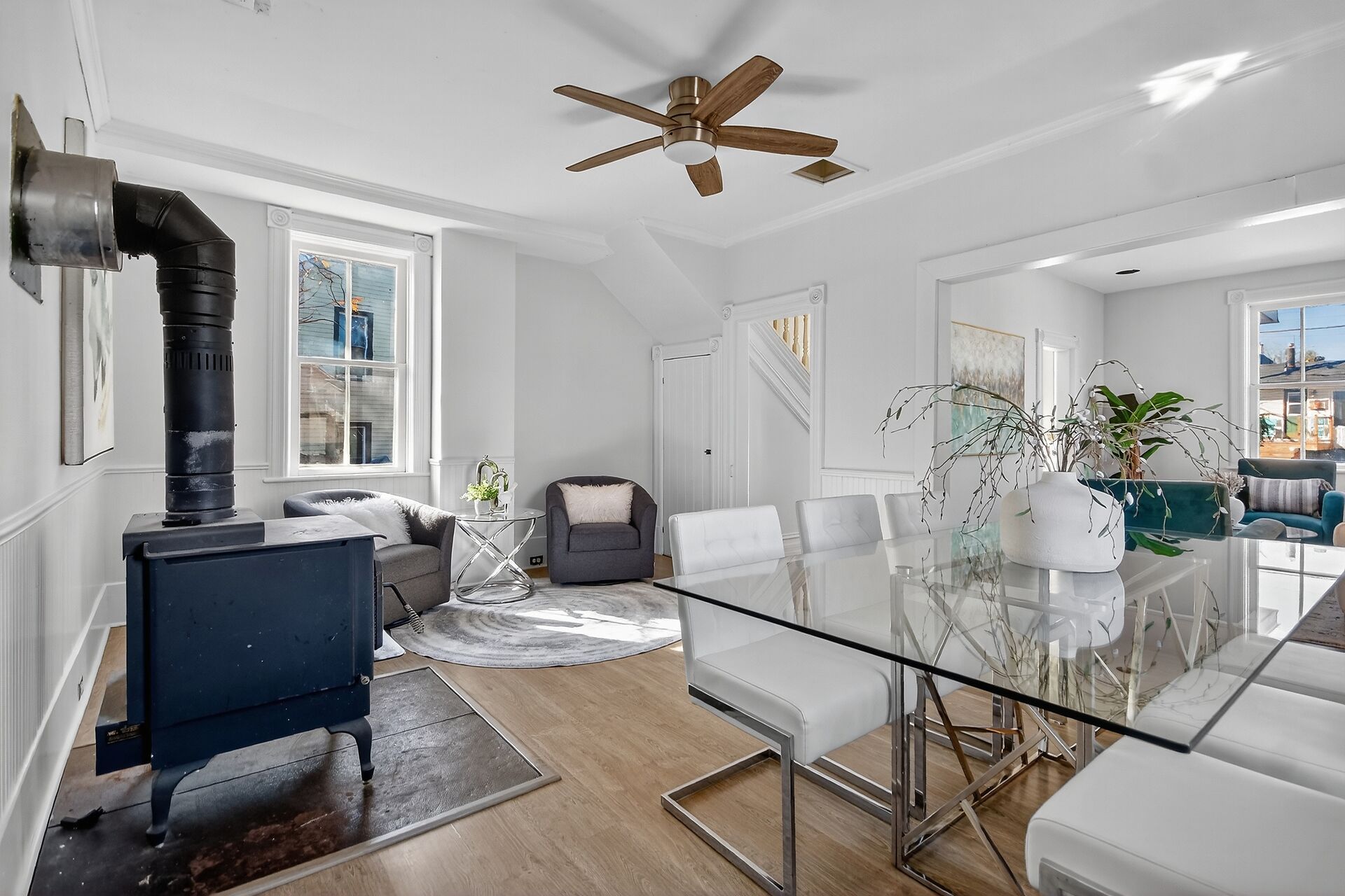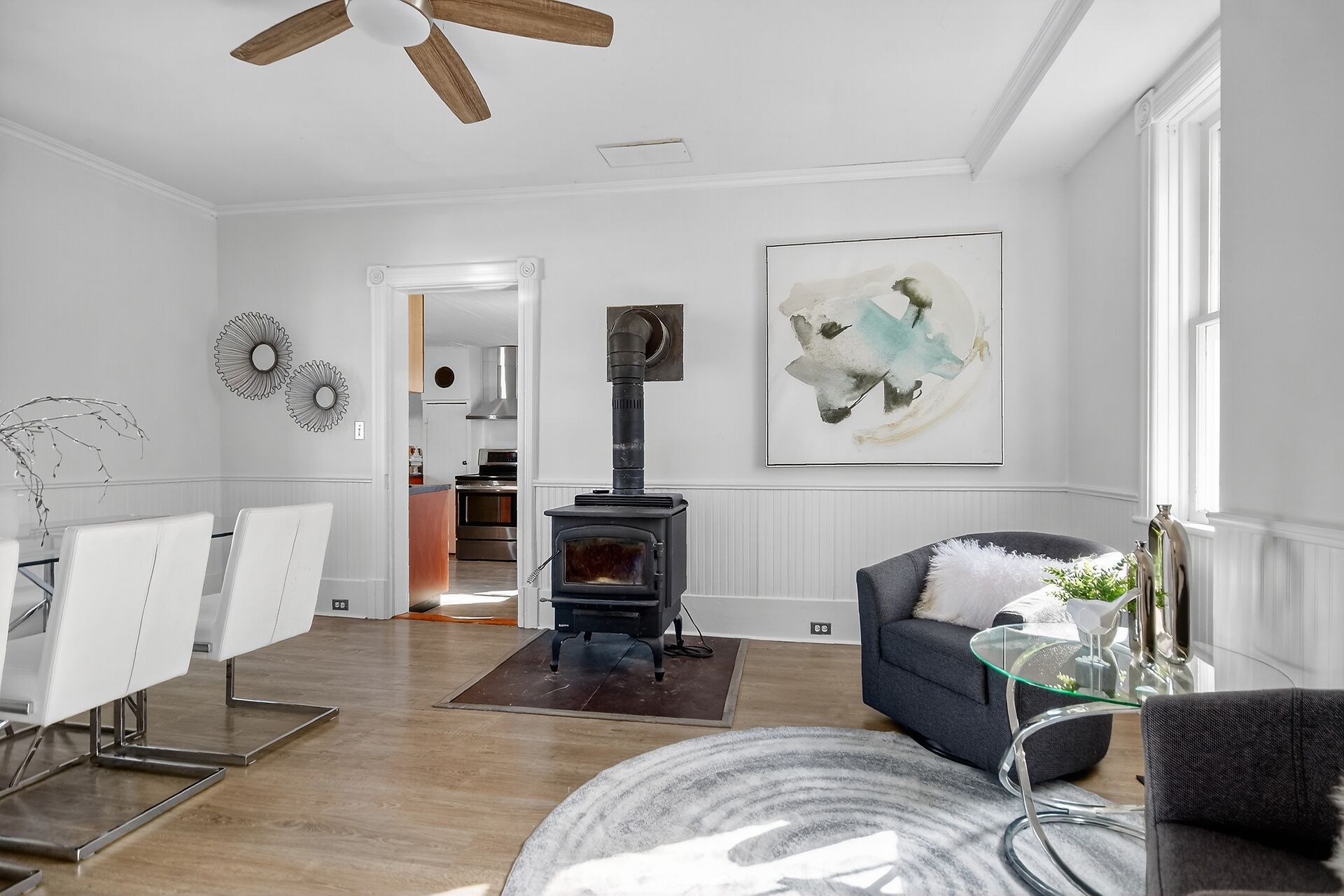 Experience the timeless appeal of 95 main street, a charming 1900 victorian home in the vibrant heart of almonte. Rich with original character, this vintage home features wide baseboards, lofty ceilings, and a classic 3-season front porch-perfect for morning coffees and warm welcomes. Inside, modern comforts embrace historic charm: easy-care vinyl flooring runs throughout the main level, complemented by newly replaced windows that fill each space with natural light. The open, sunlit living room flows into a large dining area anchored by a cozy wood-burning stove-a perfect gathering spot on winter evenings. The homey kitchen is equipped with stainless steel appliances and convenient in-unit laundry, while the attached shed offers added storage and handy backyard access. Upstairs, unwind in a vintage-inspired bath with a claw-foot tub and pedestal sink. The bright, spacious primary bedroom boasts high ceilings and plentiful storage, and two additional bedrooms (one with a closet, the second without). Plush comfortable carpeting throughout the second floor. Outside, find tandem parking for four vehicles and a fully fenced, generous yard with a large deck-an ideal retreat for children and pets. Moments from the ovr trail, library, and the shops and cafes of mill street, this is almonte living at its best. Welcome to 95 main street ~ a beautiful blend of history, comfort, and community.