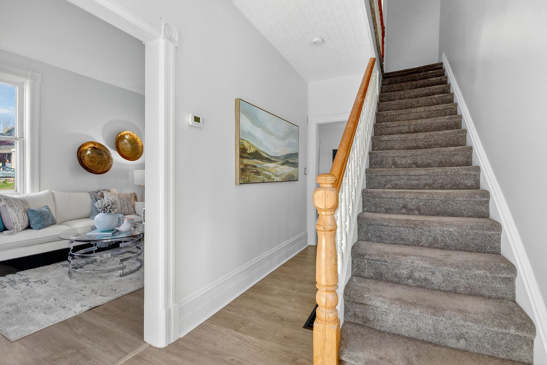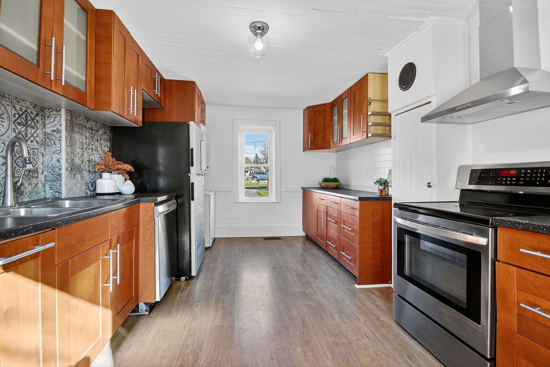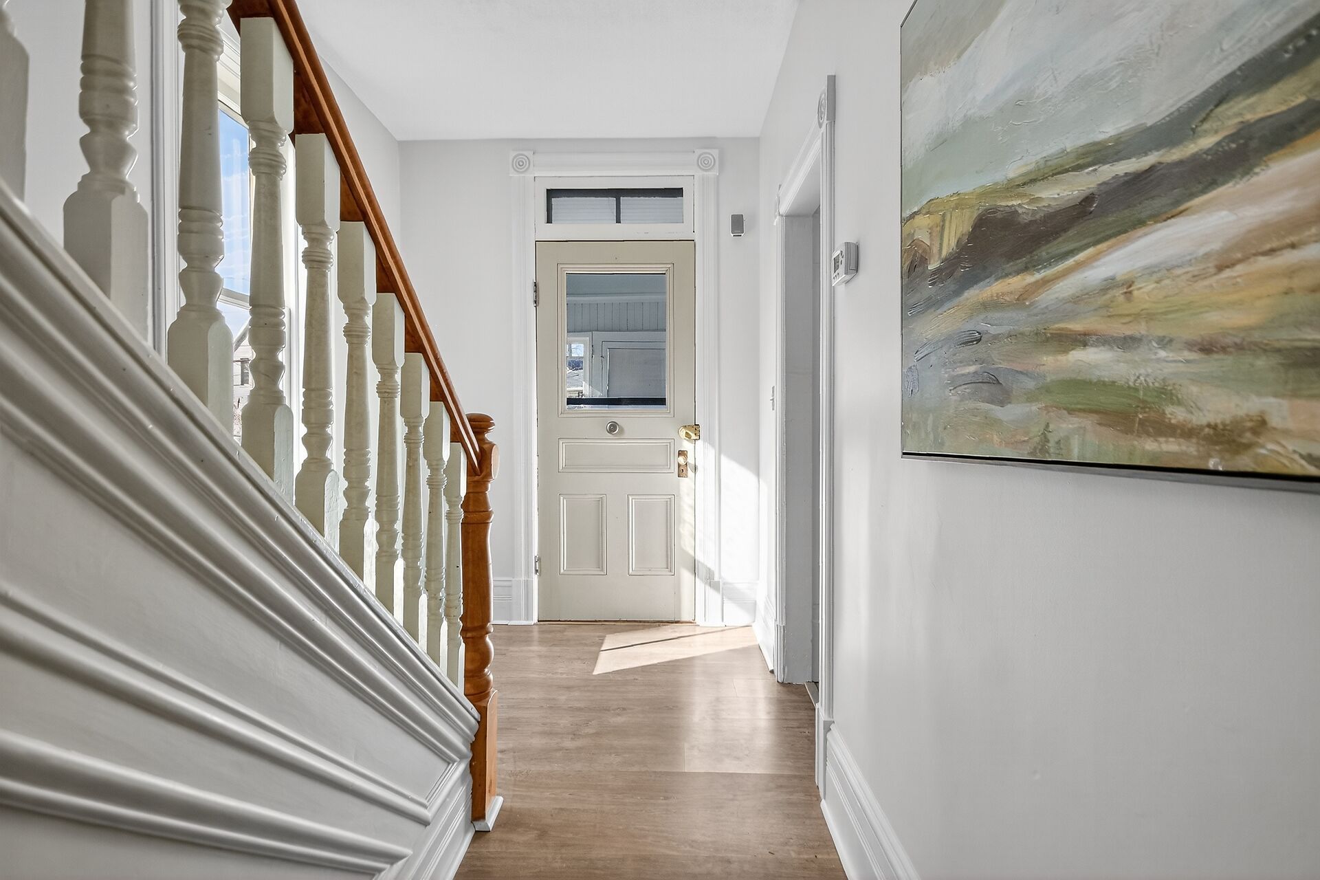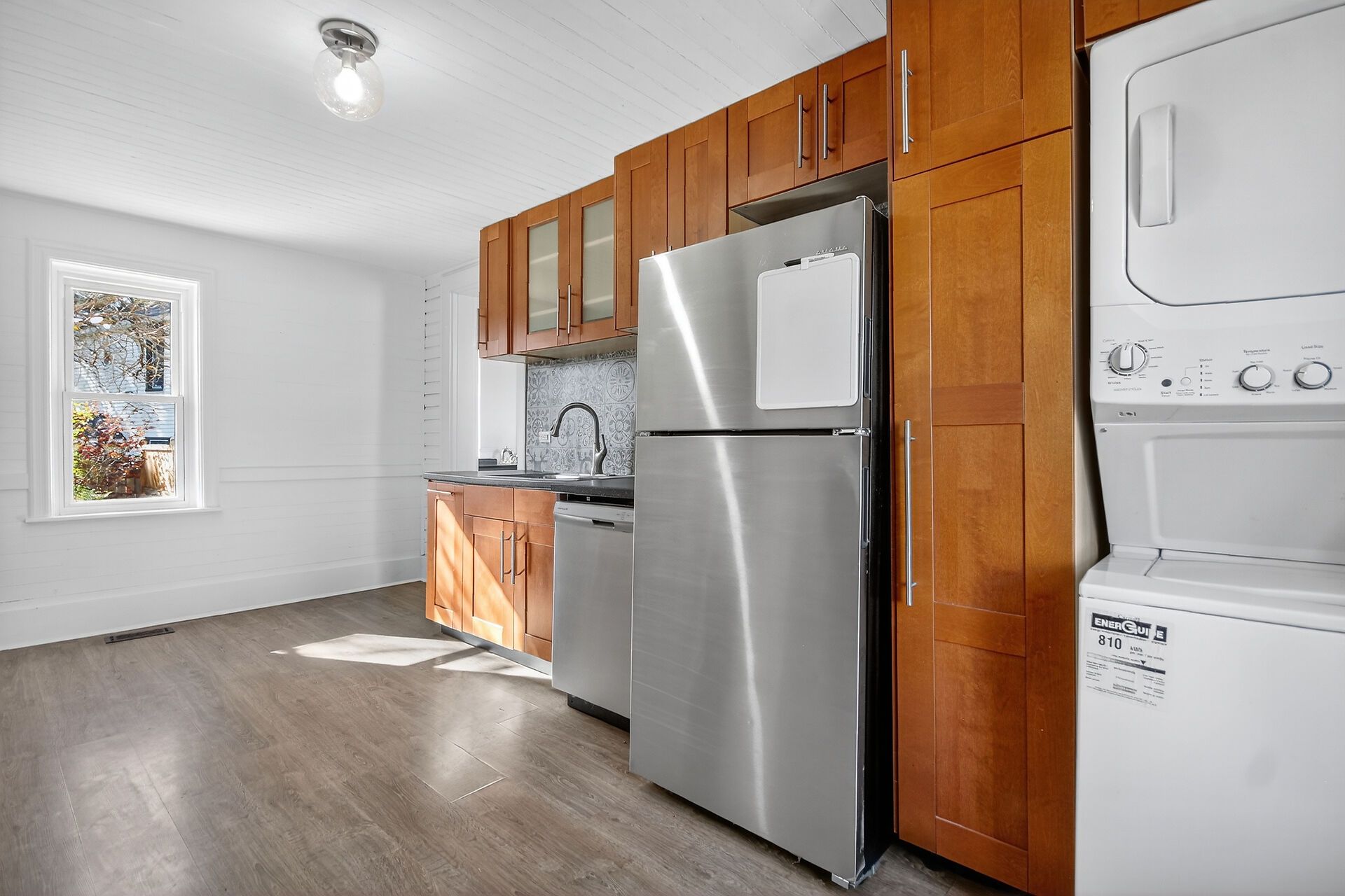 Experience the timeless appeal of 95 main street, a charming 1900 victorian home in the vibrant heart of almonte. Rich with original character, this vintage home features wide baseboards, lofty ceilings, and a classic 3-season front porch-perfect for morning coffees and warm welcomes. Inside, modern comforts embrace historic charm: easy-care vinyl flooring runs throughout the main level, complemented by newly replaced windows that fill each space with natural light. The open, sunlit living room flows into a large dining area anchored by a cozy wood-burning stove-a perfect gathering spot on winter evenings. The homey kitchen is equipped with stainless steel appliances and convenient in-unit laundry, while the attached shed offers added storage and handy backyard access. Upstairs, unwind in a vintage-inspired bath with a claw-foot tub and pedestal sink. The bright, spacious primary bedroom boasts high ceilings and plentiful storage, and two additional bedrooms (one with a closet, the second without). Plush comfortable carpeting throughout the second floor. Outside, find tandem parking for four vehicles and a fully fenced, generous yard with a large deck-an ideal retreat for children and pets. Moments from the ovr trail, library, and the shops and cafes of mill street, this is almonte living at its best. Welcome to 95 main street ~ a beautiful blend of history, comfort, and community.