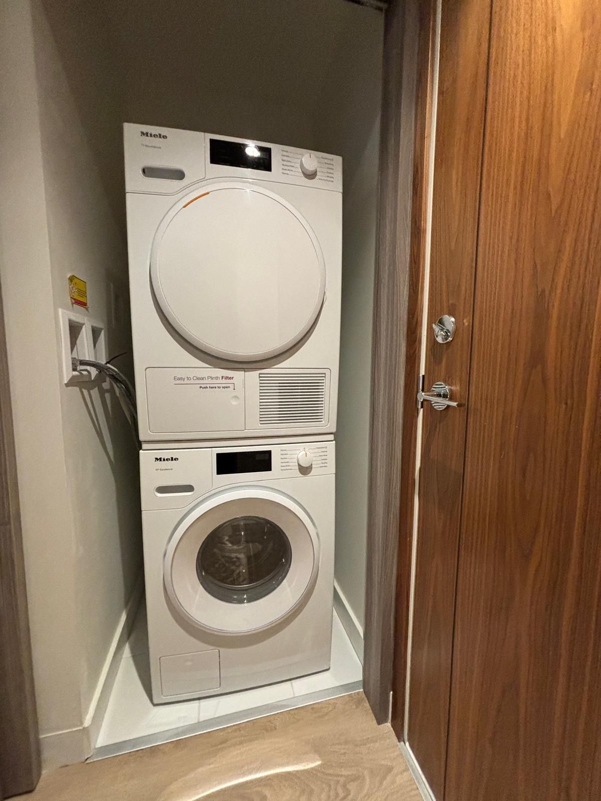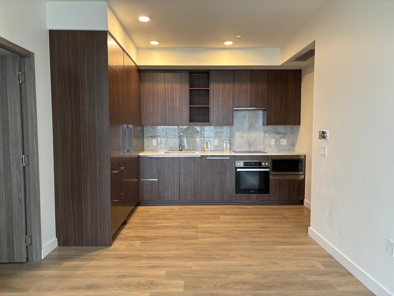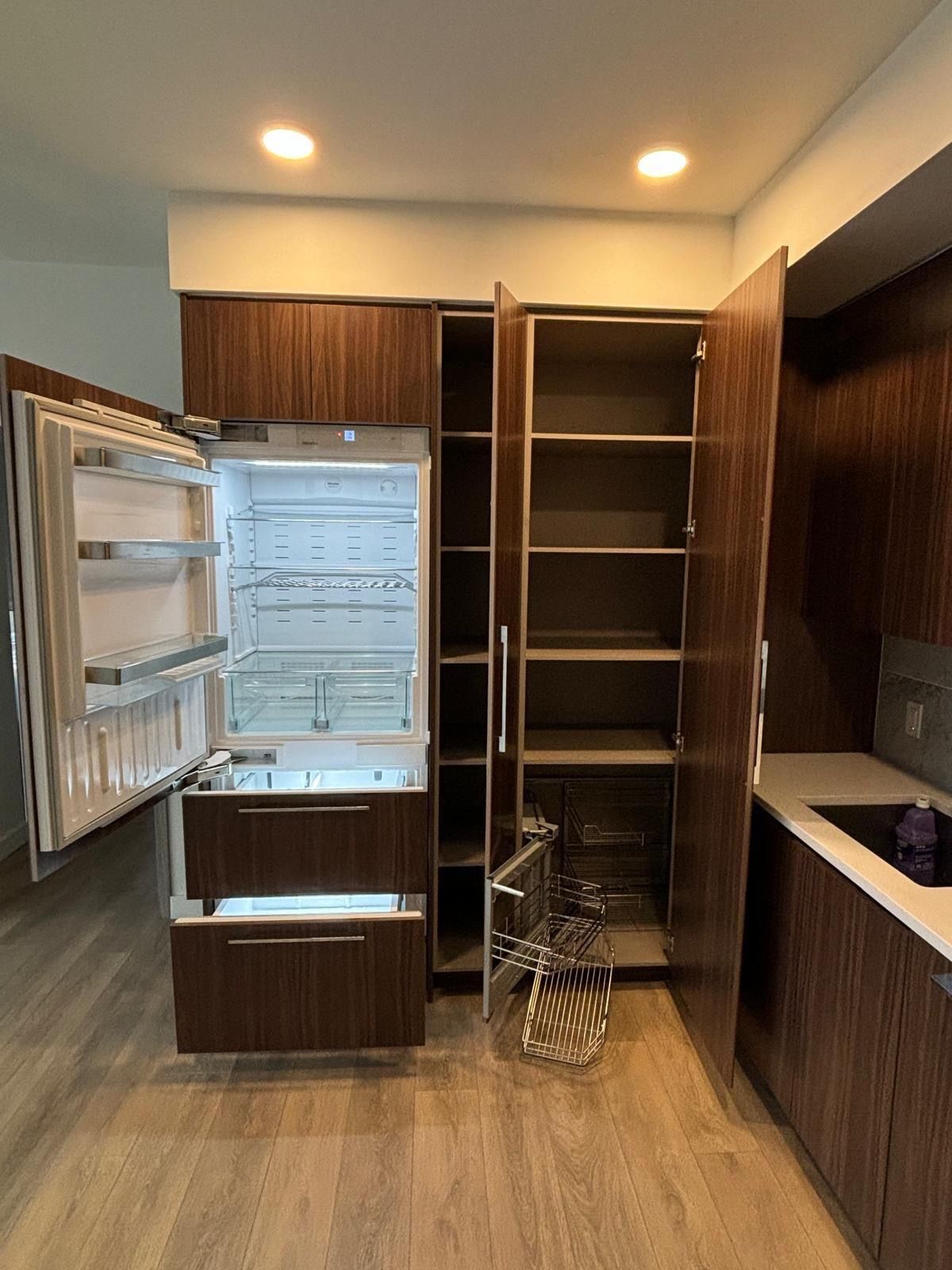 • Modern kitchen featuring premium Miele appliances and pullout pantry.