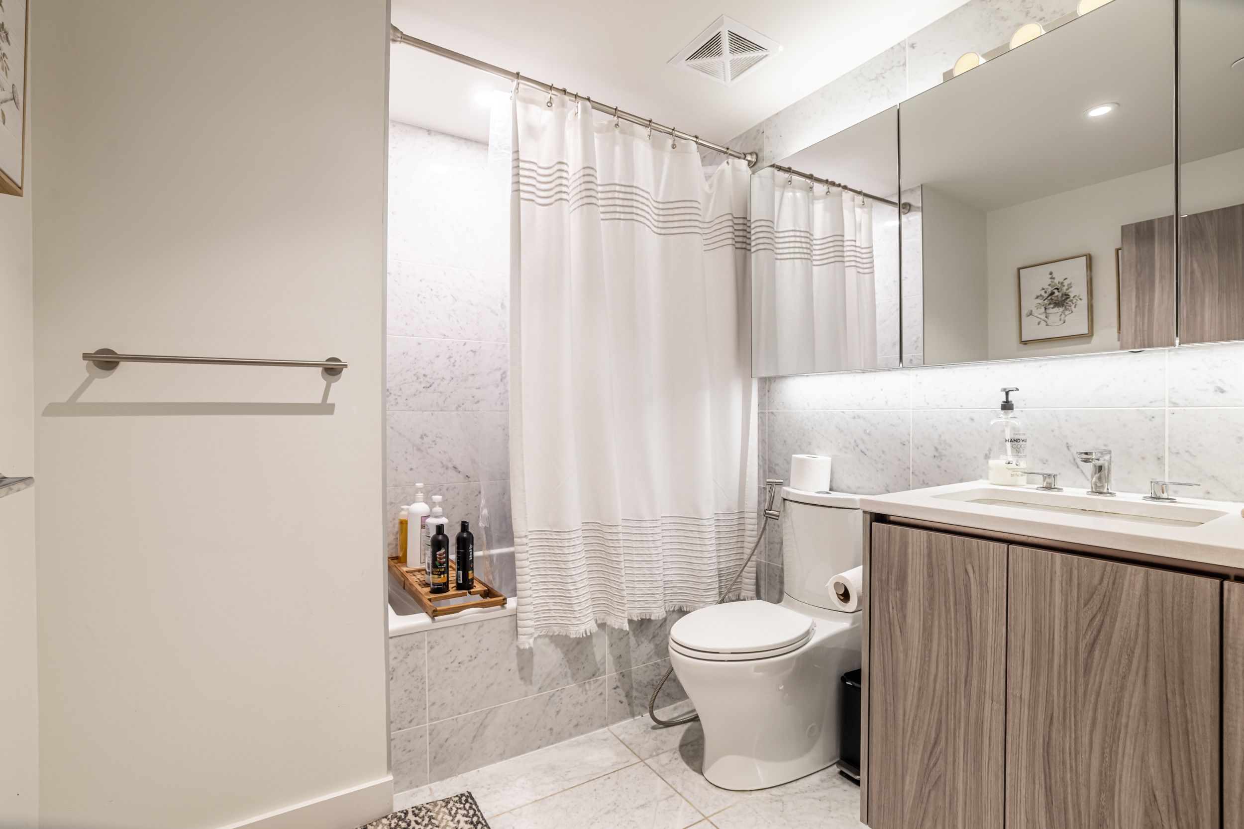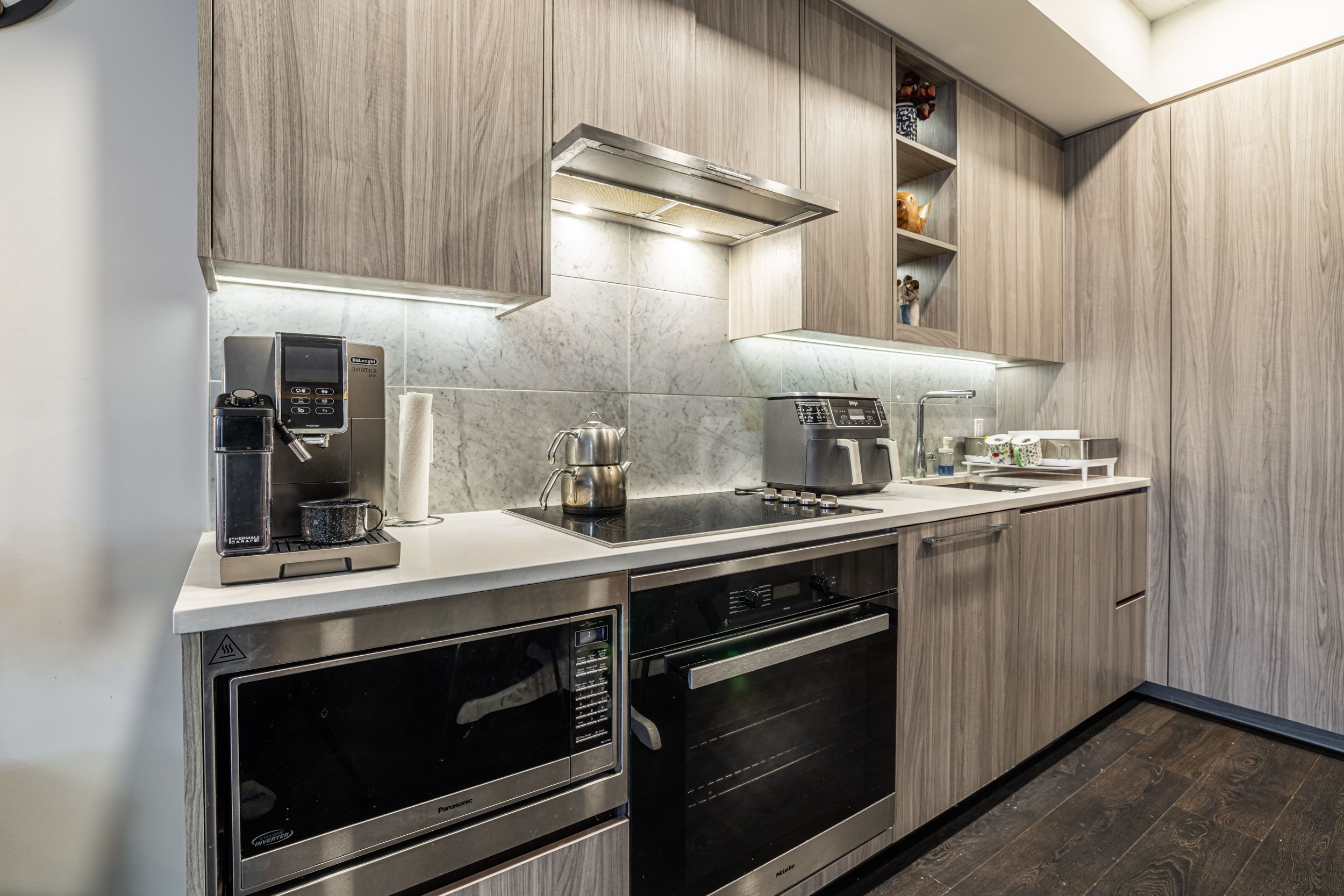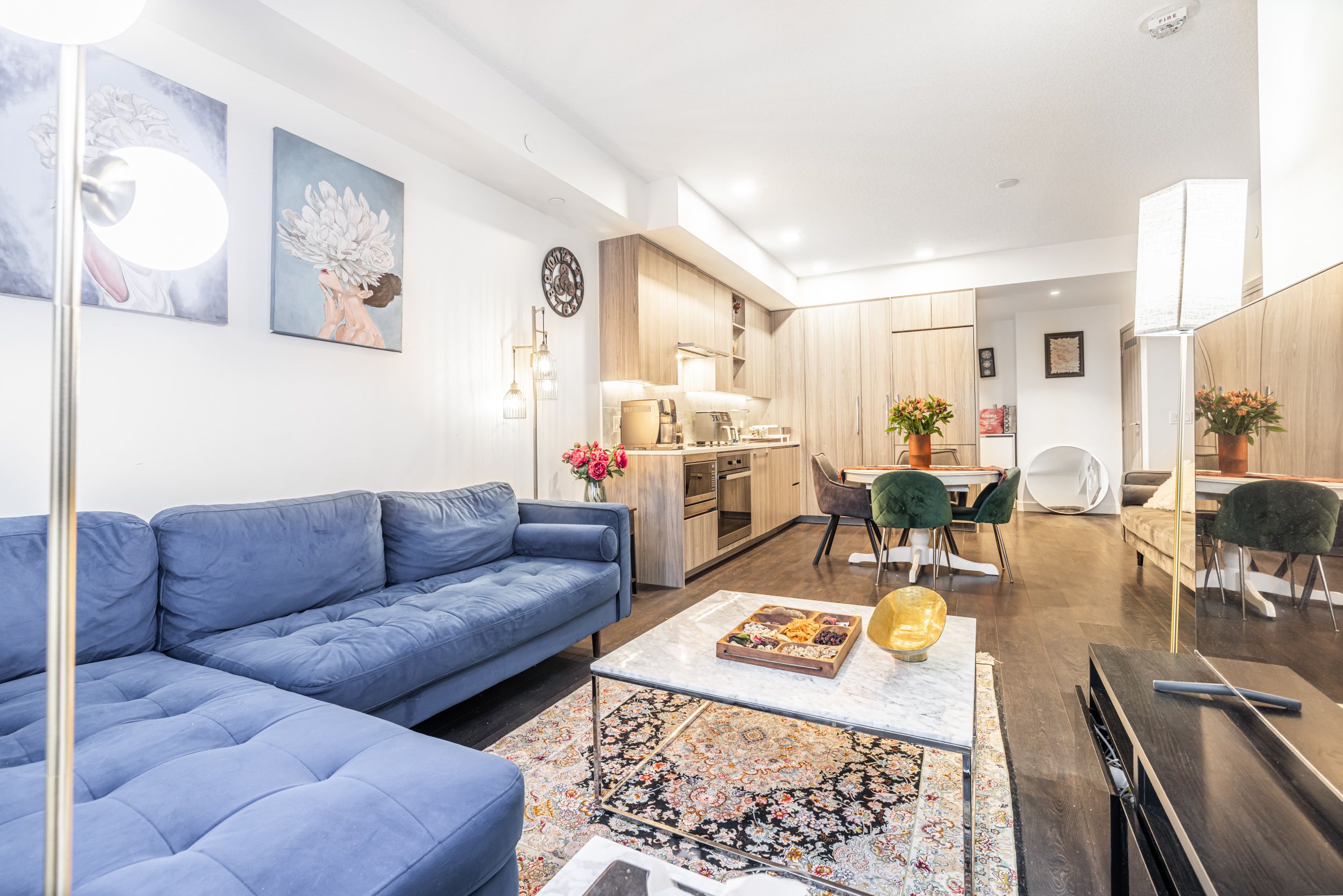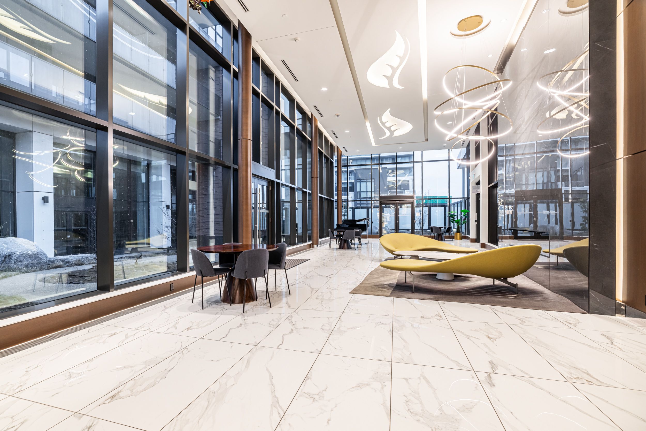 • Modern high-end laminate flooring and 9' floor-to-ceiling windows throughout.