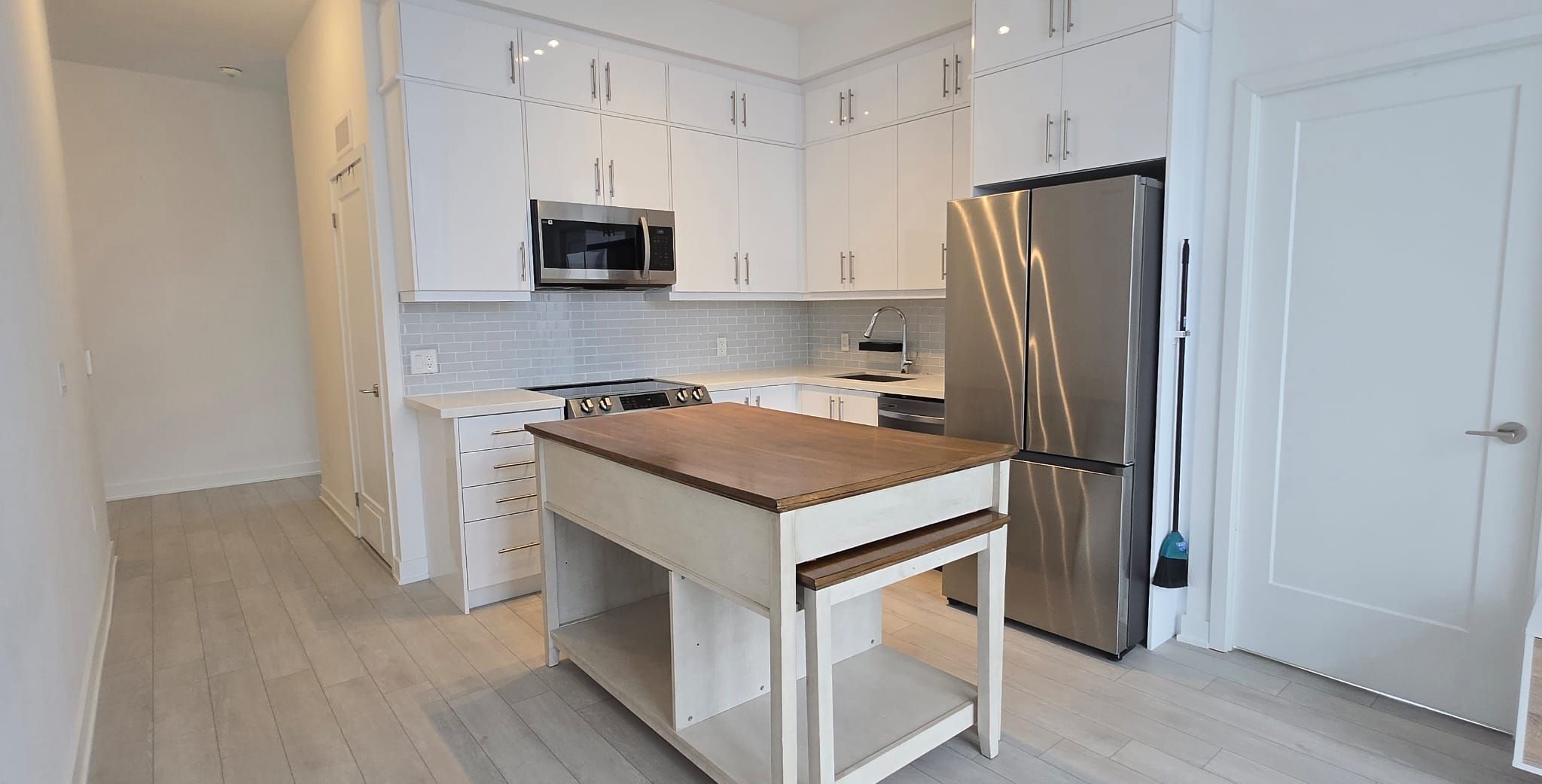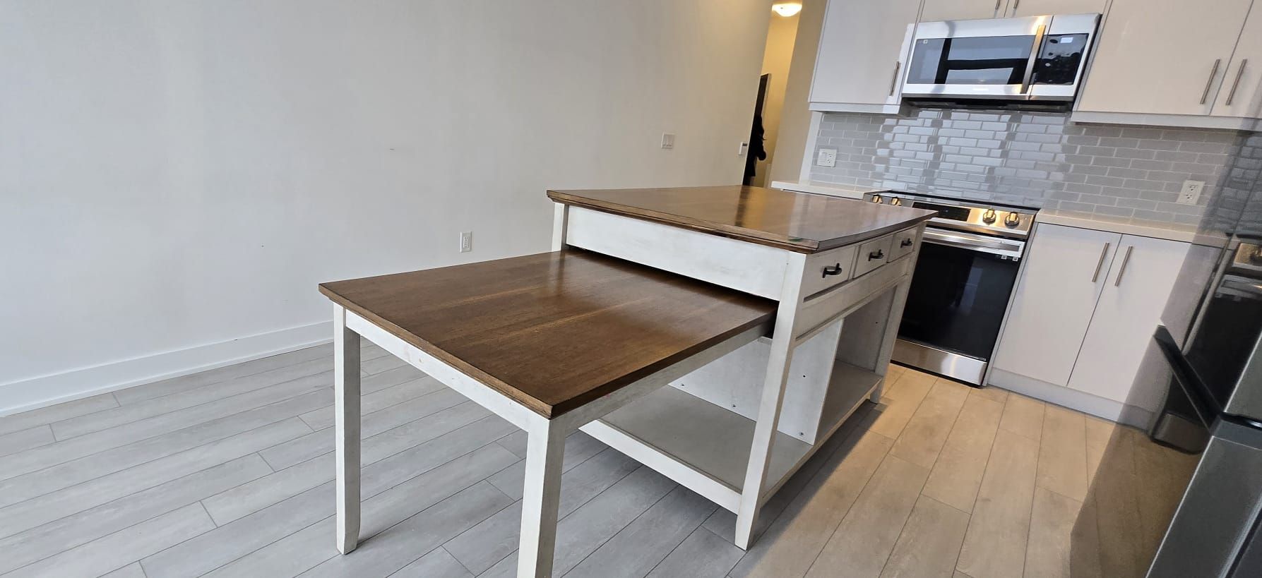 • Stylish kitchen with quartz countertops and an extendable island.