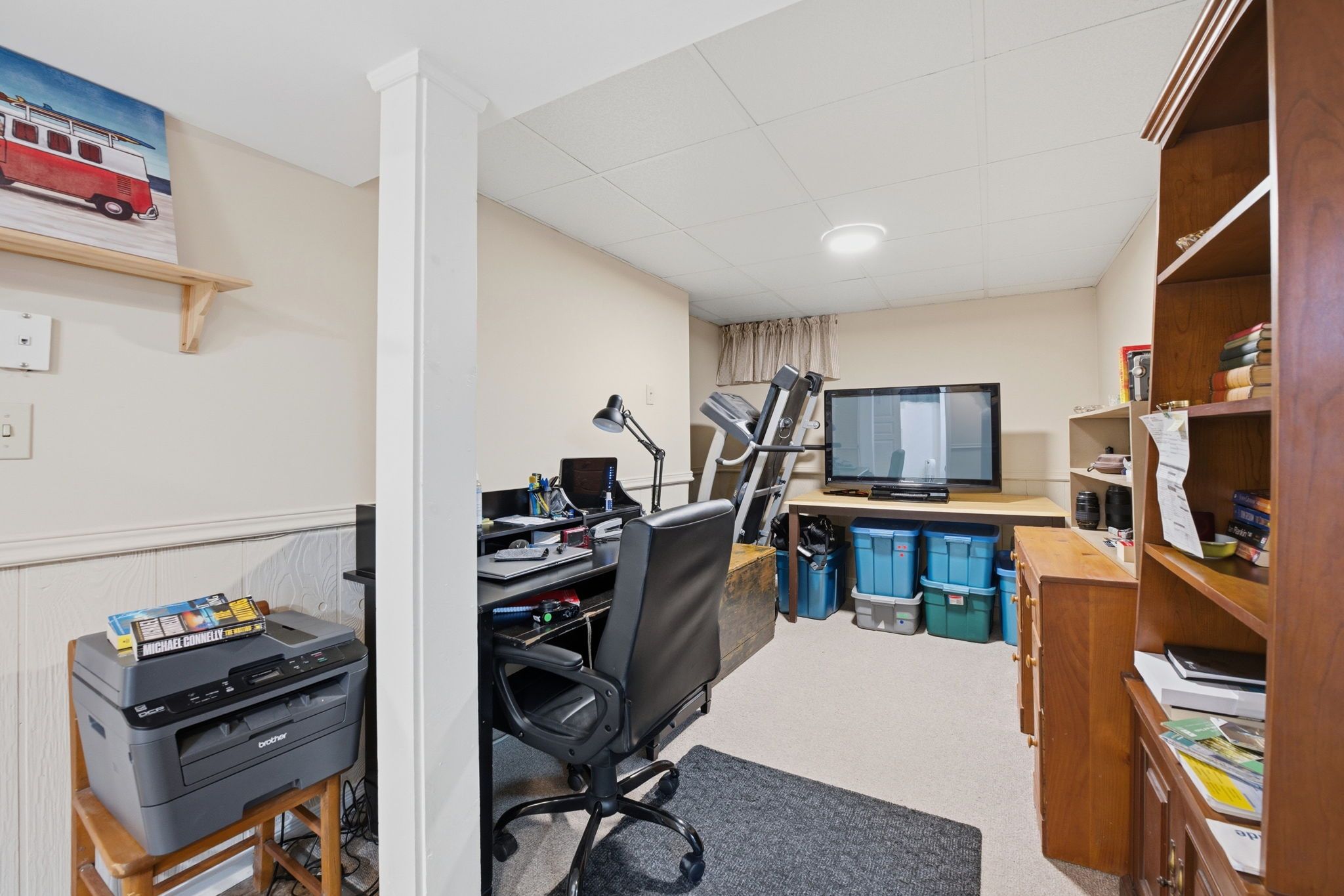 • Cozy rec room with gas fireplace and flexible spaces for entertainment.