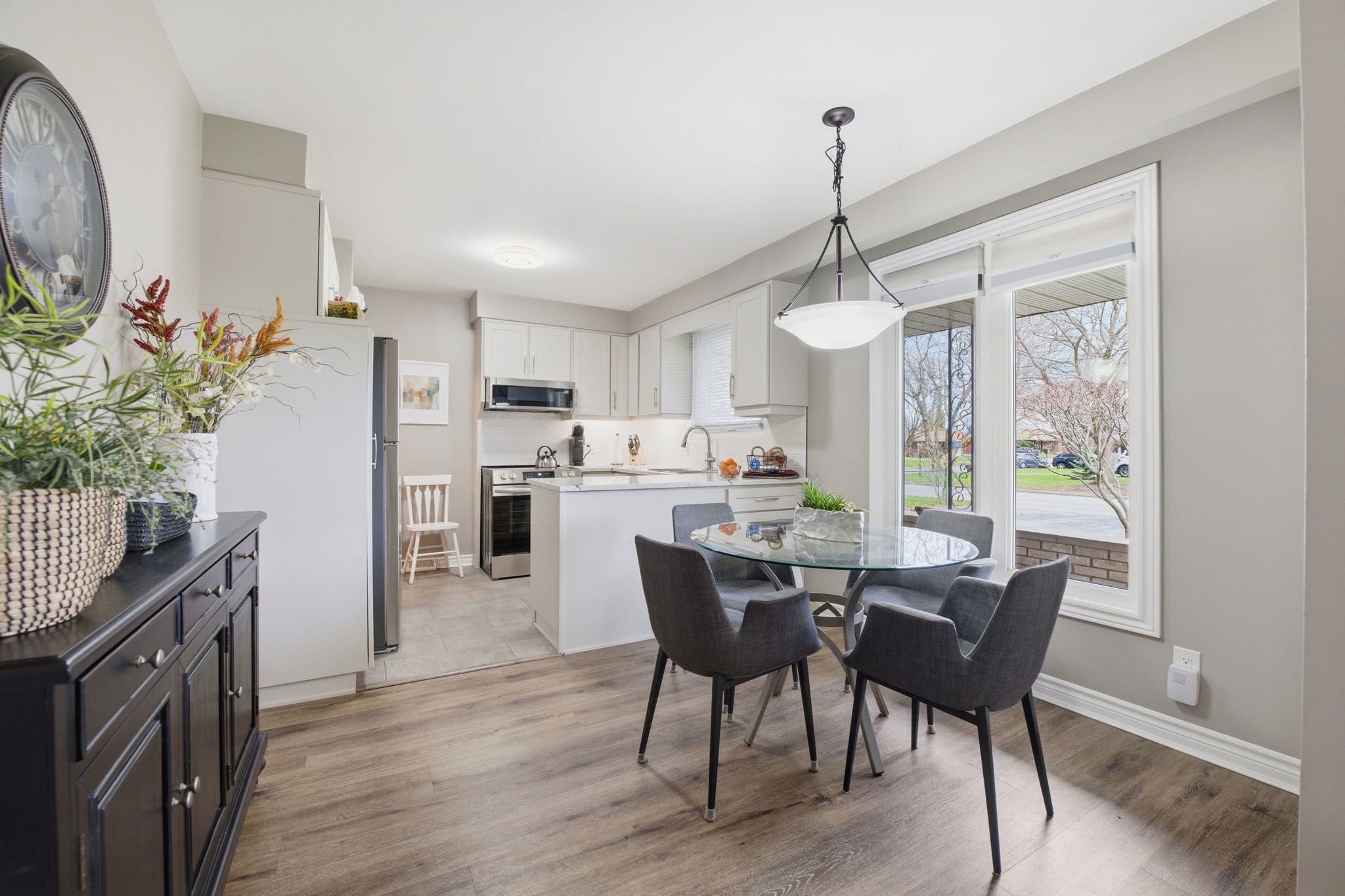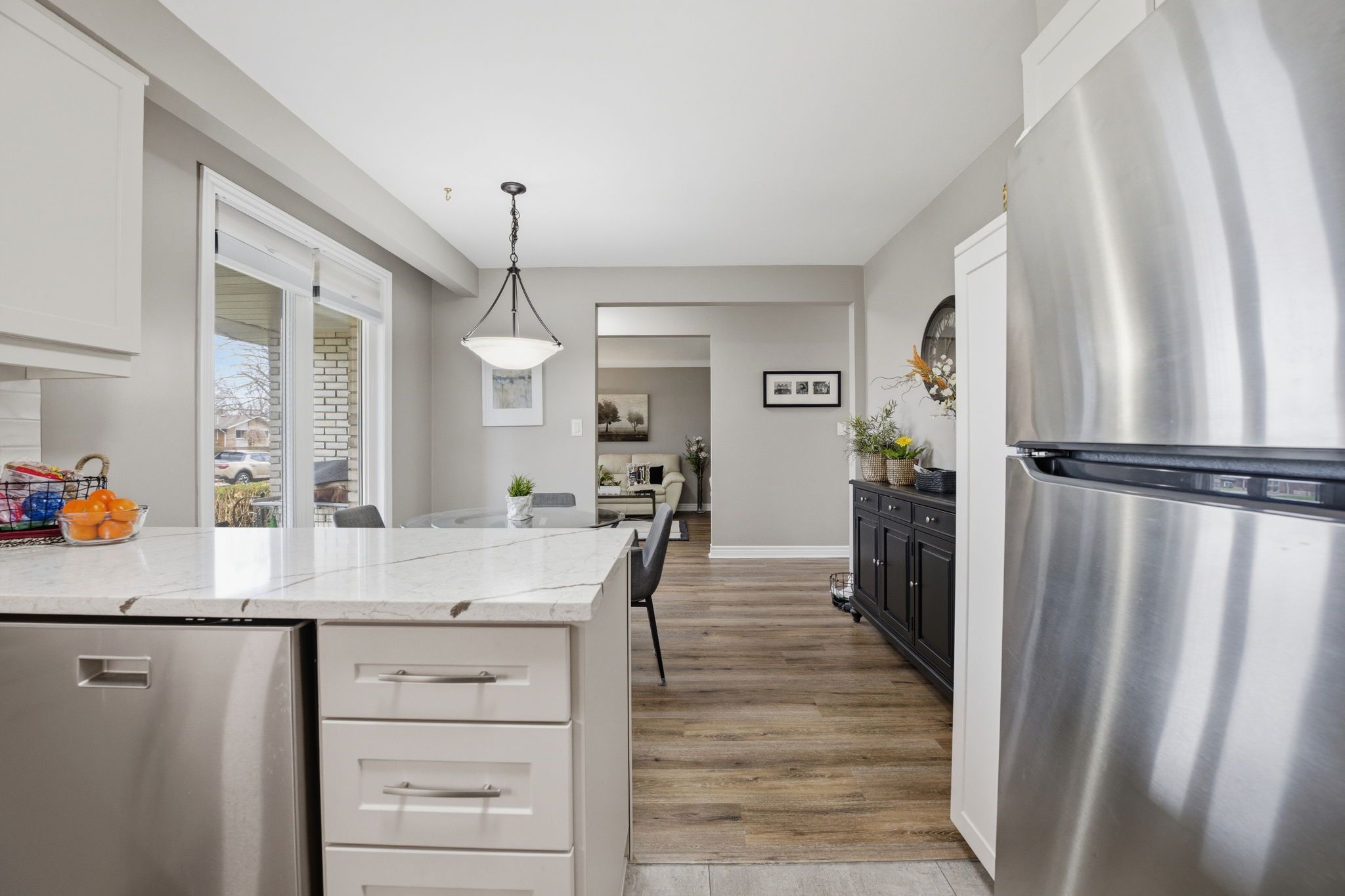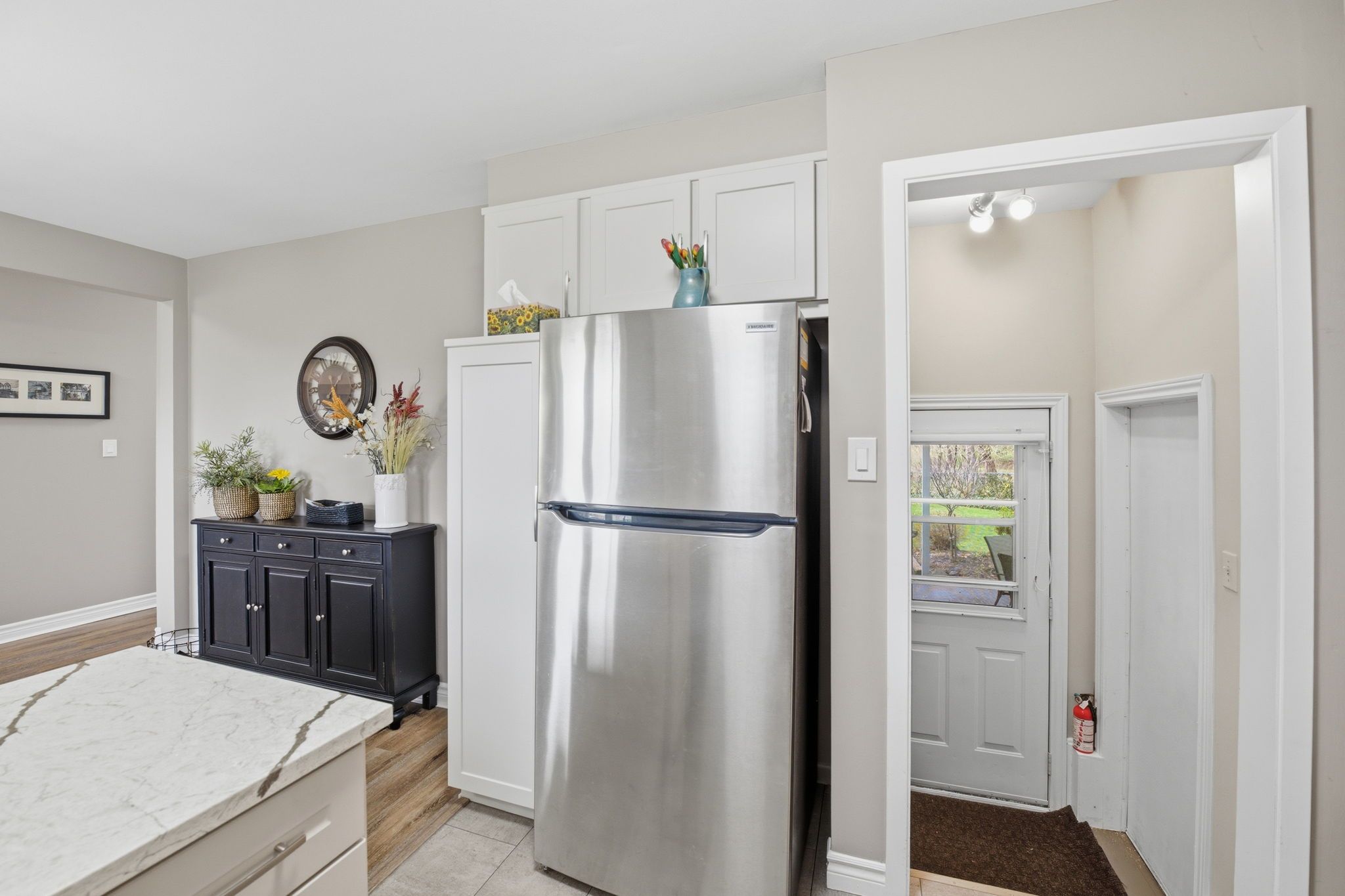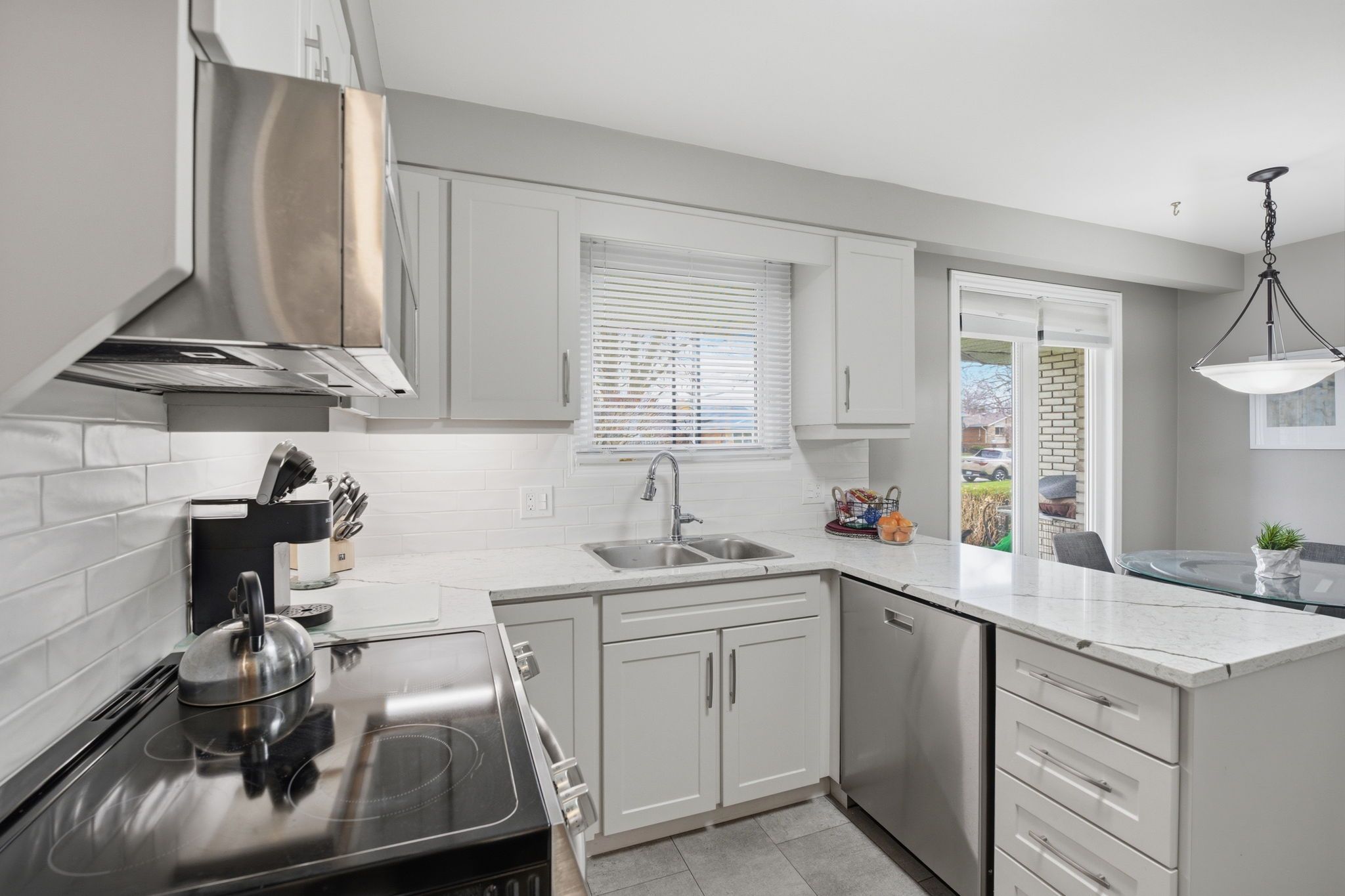 Opportunity knocks to make this home yours! Boasting mid-century-inspired curb appeal and a welcoming front porch, this desirable north-end st. Catharines 3+1 bedroom, 2 bathroom bungalow sits on an incredible lot with no rear neighbours, backing gently onto a ravine, creek, park and walkways. The main level features numerous updates, including a stunning 2-year-young kitchen with eye-catching quartz counters, stainless appliances and ample storage. The inviting living room flows with consistent flooring down the hall to a modern updated bathroom, a spacious primary bedroom and two additional generous bedrooms. Downstairs, you'll find a large, cozy rec room retreat with a modern gas fireplace, games area, kitchenette, office space, laundry, a fourth bedroom and a fully updated bathroom. Step out to a covered patio and enjoy the peaceful, private setting with beautifully landscaped outdoor space. Updates include roof and gutters (2019), furnace (2021), new air conditioner (2025) and hot water tank (rental, 2017). Close to lake ontario's walking trails, port dalhousie, great schools, public transit, and shopping of all kinds. Truly move-in ready!