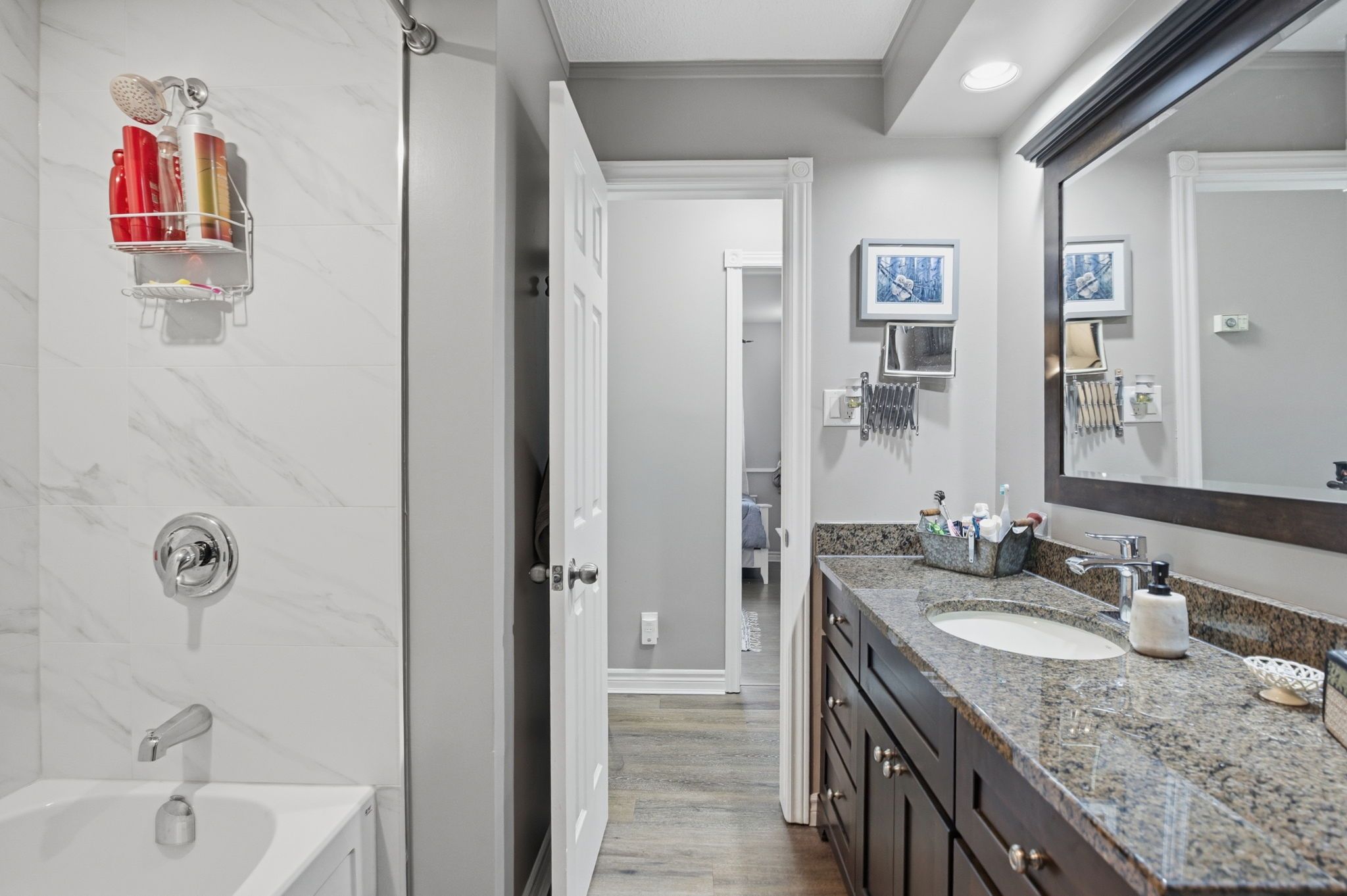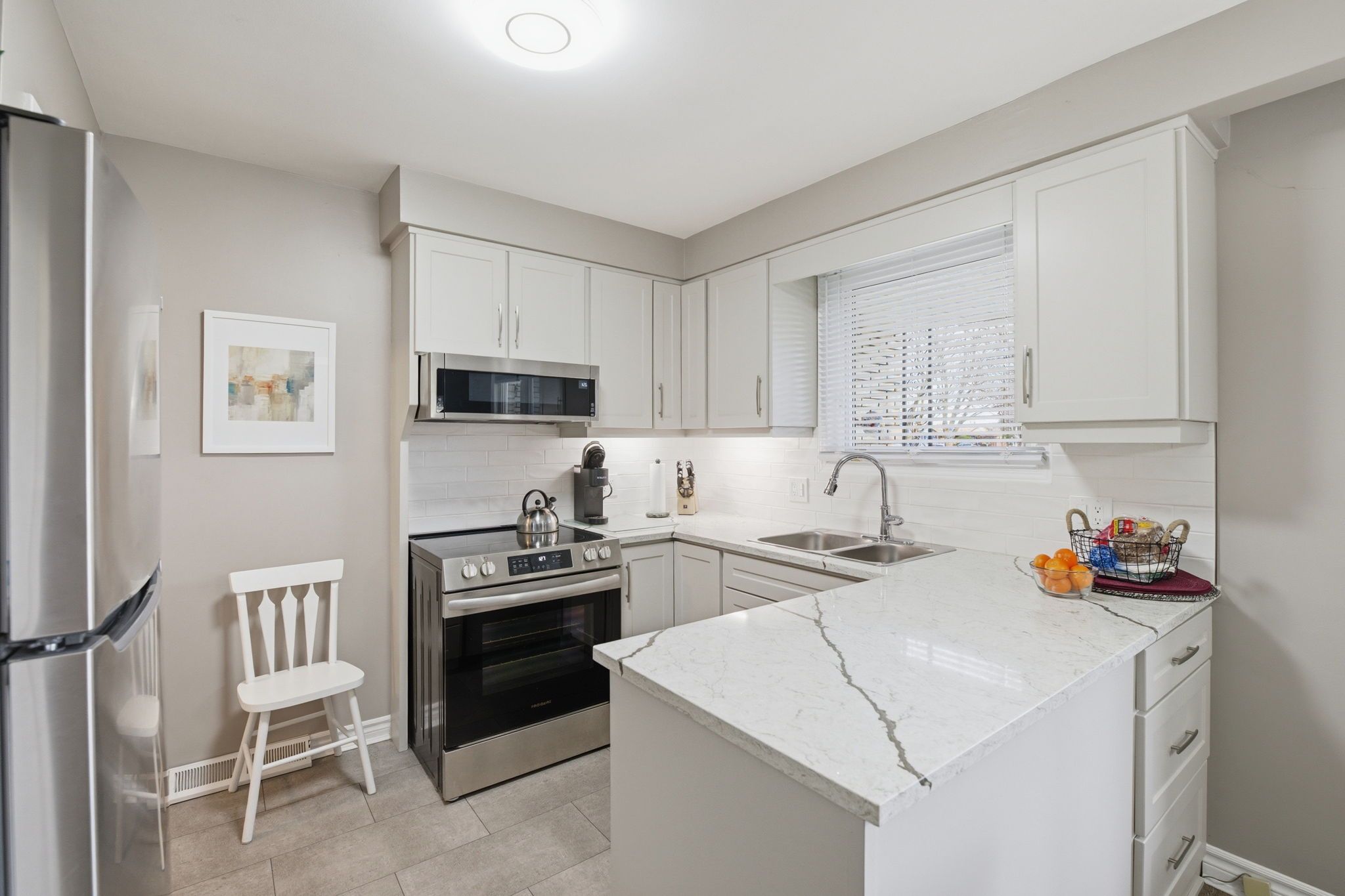 • Updated kitchen featuring quartz counters and stainless appliances.