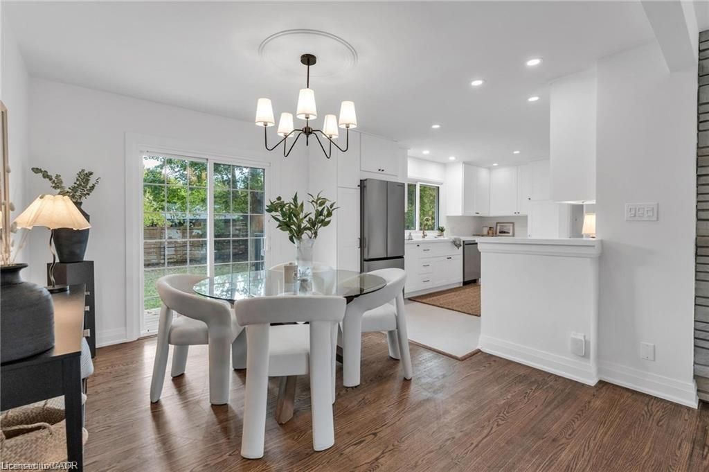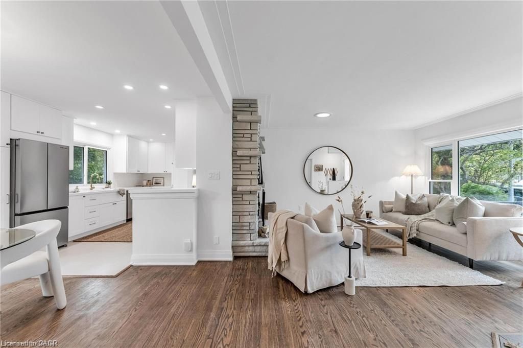 Situated in the highly sought after old meadows neighbourhood in ancaster, this beautifully updated, carpet free bungalow blends timeless charm with modern elegance. Showcasing a bright, airy interior this home features thoughtfully curated finishes throughout. The main level offers 3 spacious bedrooms, rich hardwood flooring, and expansive windows, including a stunning bay window that fills the home with natural light and adds architectural character. The designer inspired kitchen features built-in stainless steel appliances, crown mouldings, smooth ceilings, and pot lights perfectly blending style and function. A seamless walk-out from the dining area leads to a private, beautifully landscaped backyard, an ideal setting for entertaining or quiet moments outdoors. Set on an impressive 80' x 120' lot, this property offers exceptional space and privacy, all just minutes from the charm of old ancaster village, meadowlands shopping centre, and convenient highway access. The fully finished lower level, complete with a separate entrance, second kitchen, separate laundry, and two additional bedrooms, provides excellent flexibility for extended family living. A rare opportunity to own a truly turn-key home in one of ancaster's most desirable neighbourhoods, offering exceptional in-law suite capability and potential for supplementary income. "2 homes in 1!"