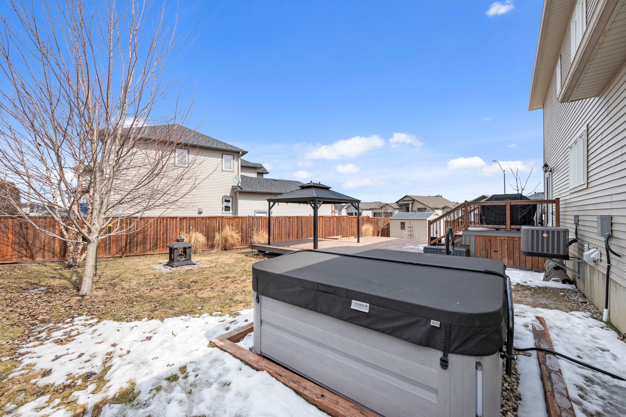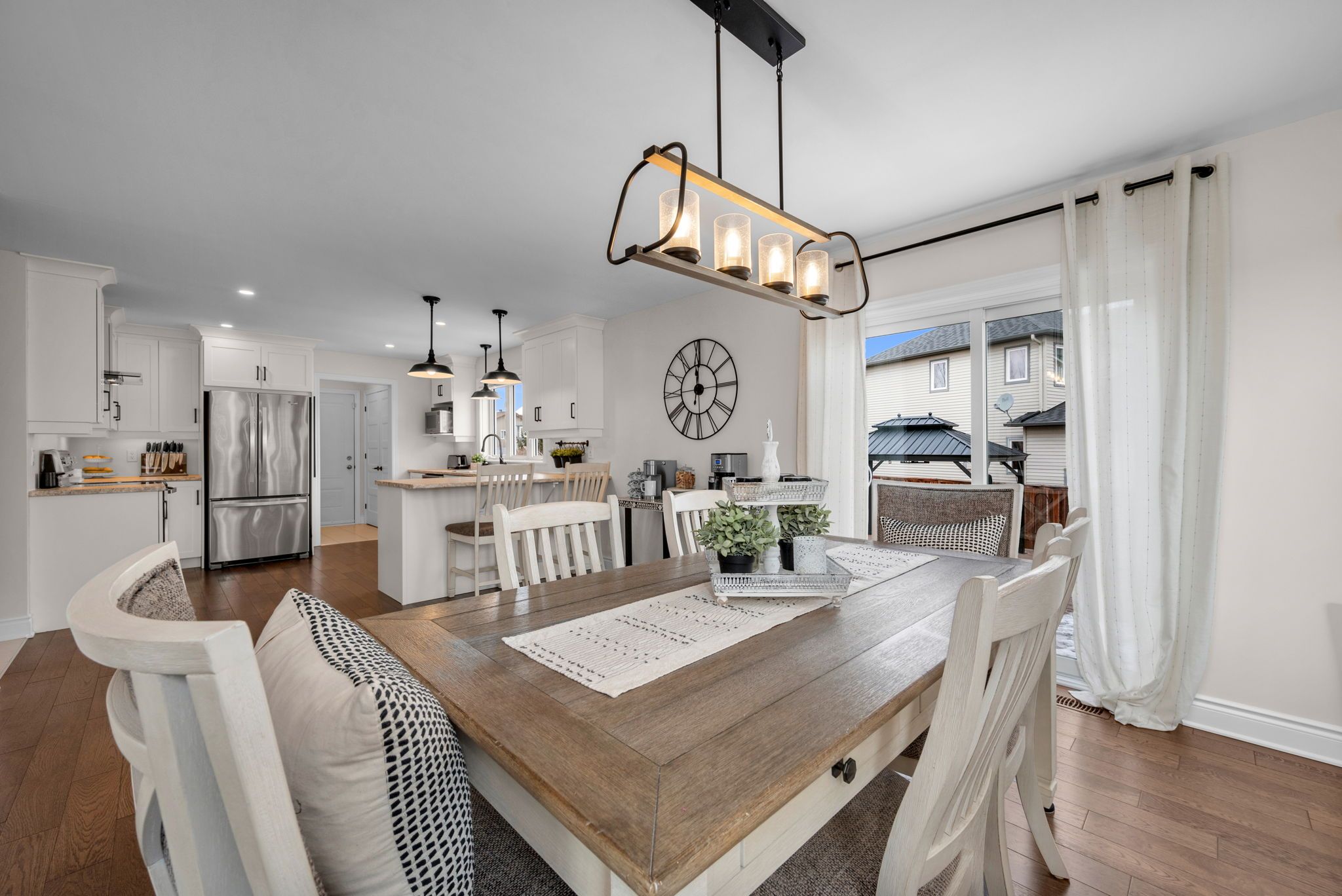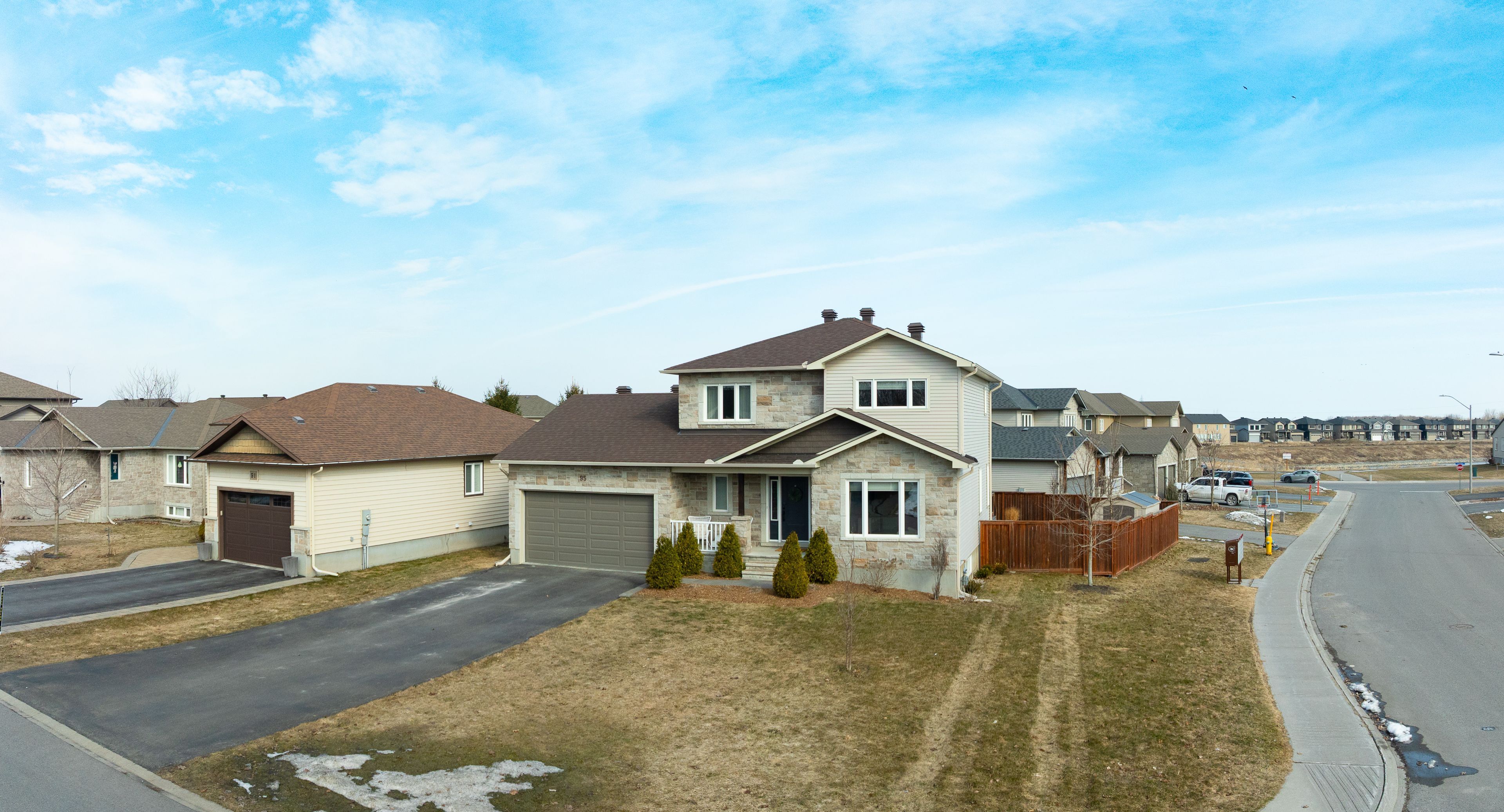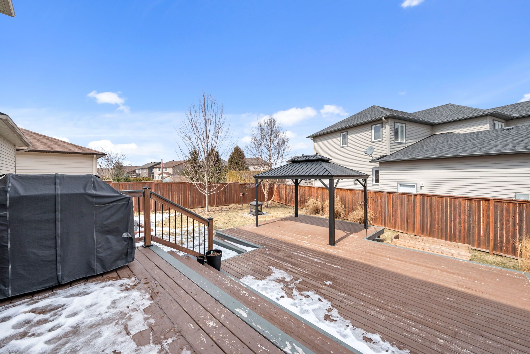 Stunning corvinelli built venezia model on a premium corner lot in the sought-after, family-oriented russell trails community, ideally located on a quiet street known for its strong sense of community and perfect for families. This bright, well-designed home offers a seamless layout for everyday living and entertaining, featuring a gorgeous kitchen that opens to the eating area and spacious living room, so you are always part of the conversation. Upstairs offers three well-sized bedrooms, including a standout primary suite with a feature wall, walk-in closet and beautifully finished ensuite. The lower level is ready for your personal touch, whether you envision a rec room, home gym or a fourth bedroom. Step outside to a private, fully fenced backyard complete with a large deck and gazebo, with a hot tub rough-in, creating an ideal extension of your living space and a safe area for kids and pets. Enjoy the charm of russell with its local shops, restaurants, parks, schools and community amenities all nearby. Flooring includes hardwood, ceramic and wall-to-wall carpet. Minimum 24 hours irrevocable on all offers.