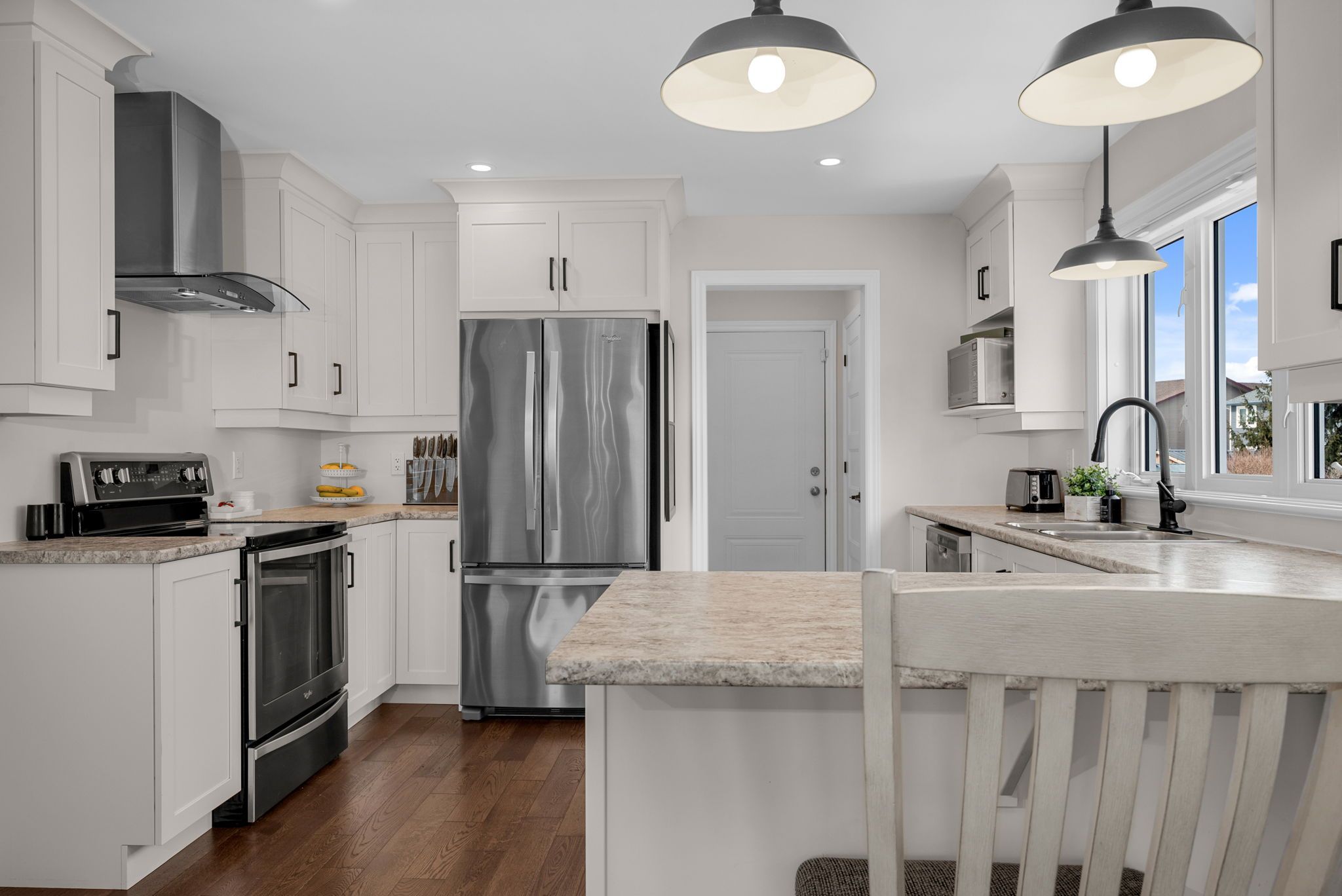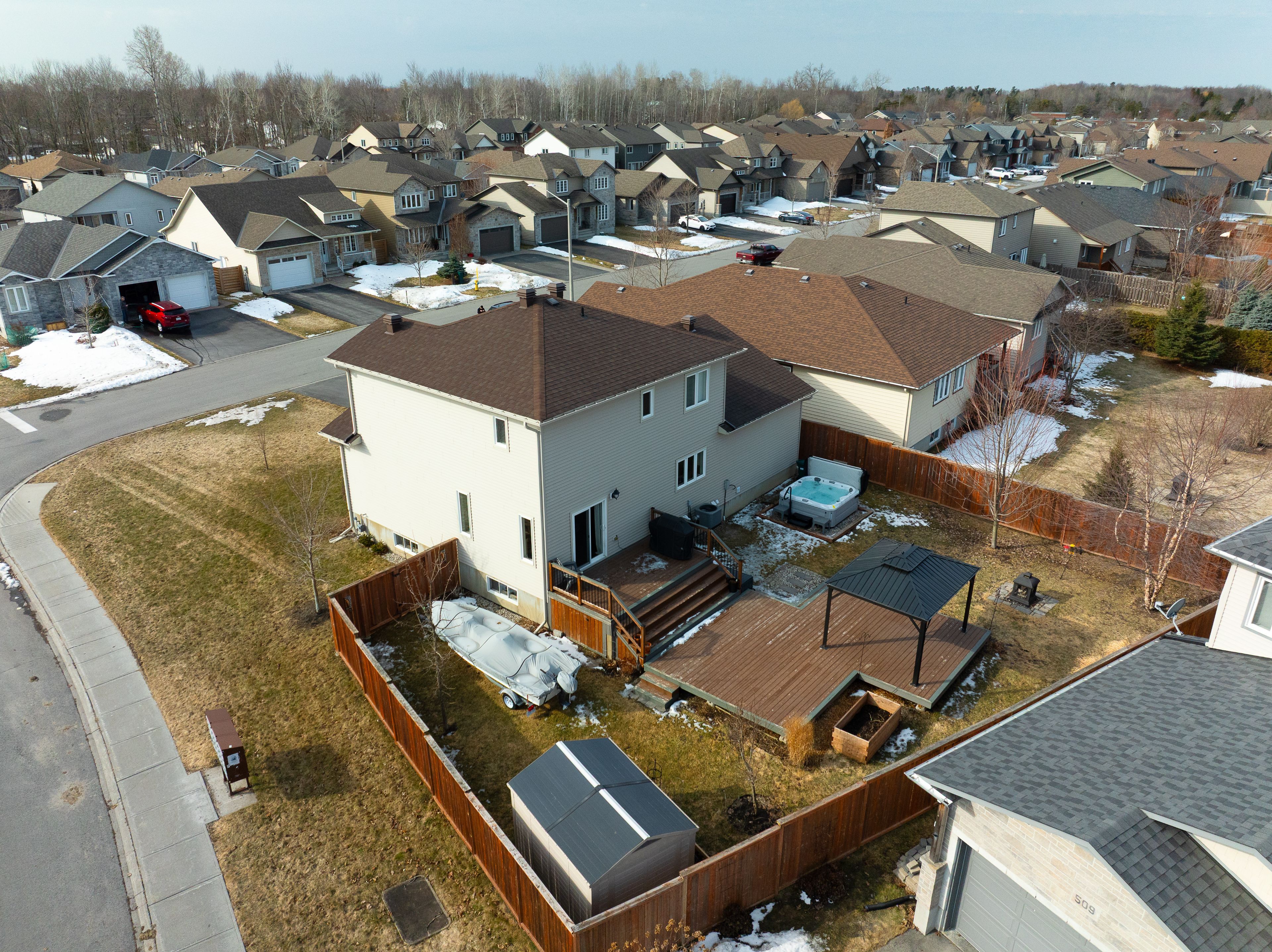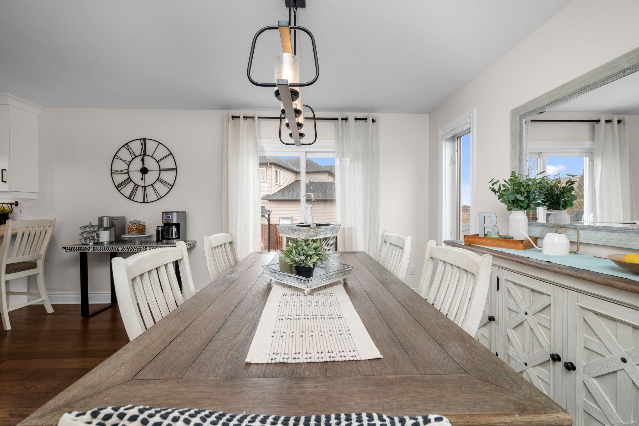Stunning corvinelli built venezia model on a premium corner lot in the sought-after, family-oriented russell trails community, ideally located on a quiet street known for its strong sense of community and perfect for families. This bright, well-designed home offers a seamless layout for everyday living and entertaining, featuring a gorgeous kitchen that opens to the eating area and spacious living room, so you are always part of the conversation. Upstairs offers three well-sized bedrooms, including a standout primary suite with a feature wall, walk-in closet and beautifully finished ensuite. The lower level is ready for your personal touch, whether you envision a rec room, home gym or a fourth bedroom. Step outside to a private, fully fenced backyard complete with a large deck and gazebo, with a hot tub rough-in, creating an ideal extension of your living space and a safe area for kids and pets. Enjoy the charm of russell with its local shops, restaurants, parks, schools and community amenities all nearby. Flooring includes hardwood, ceramic and wall-to-wall carpet. Minimum 24 hours irrevocable on all offers.
