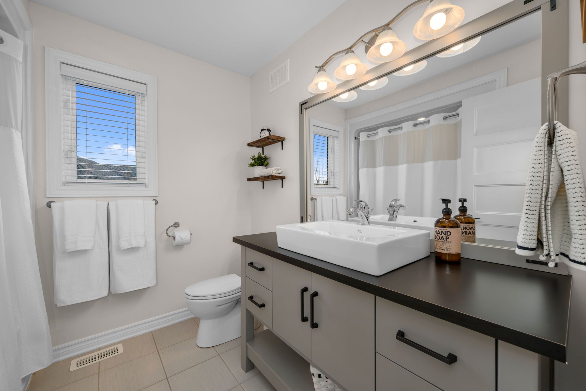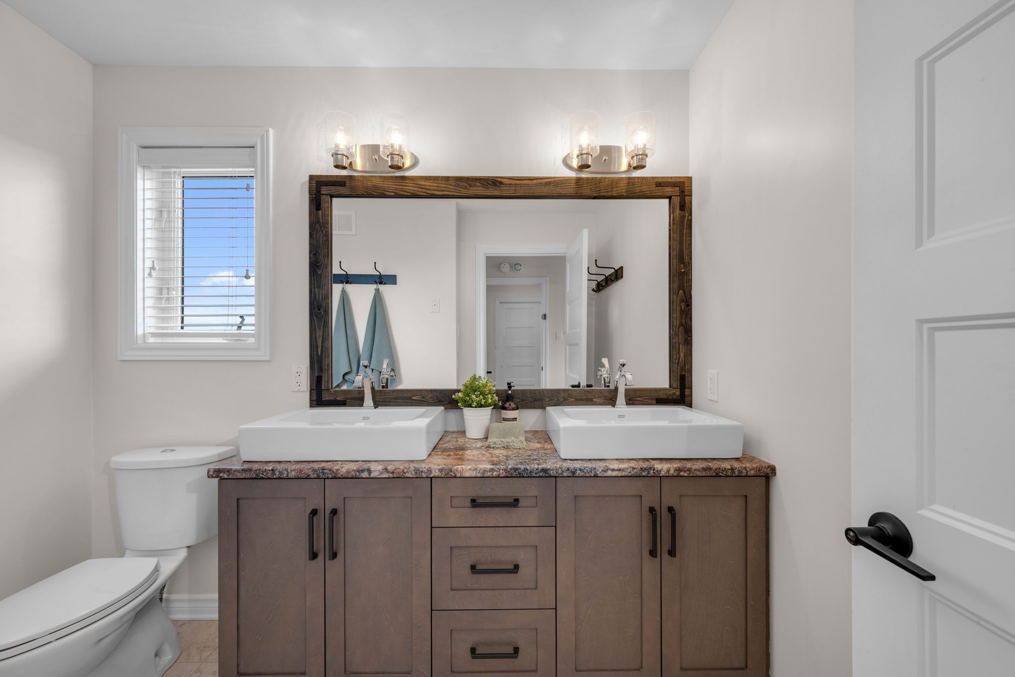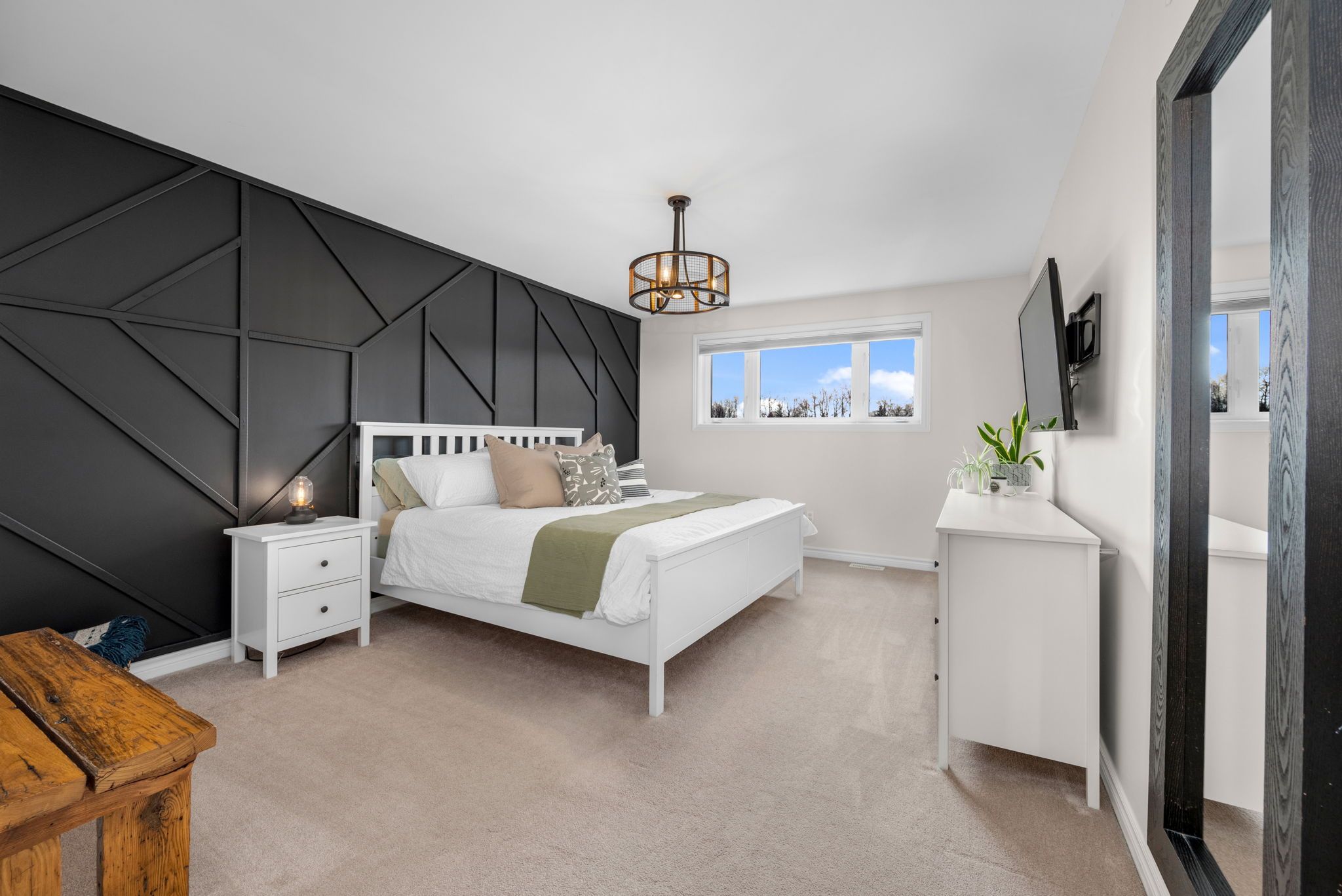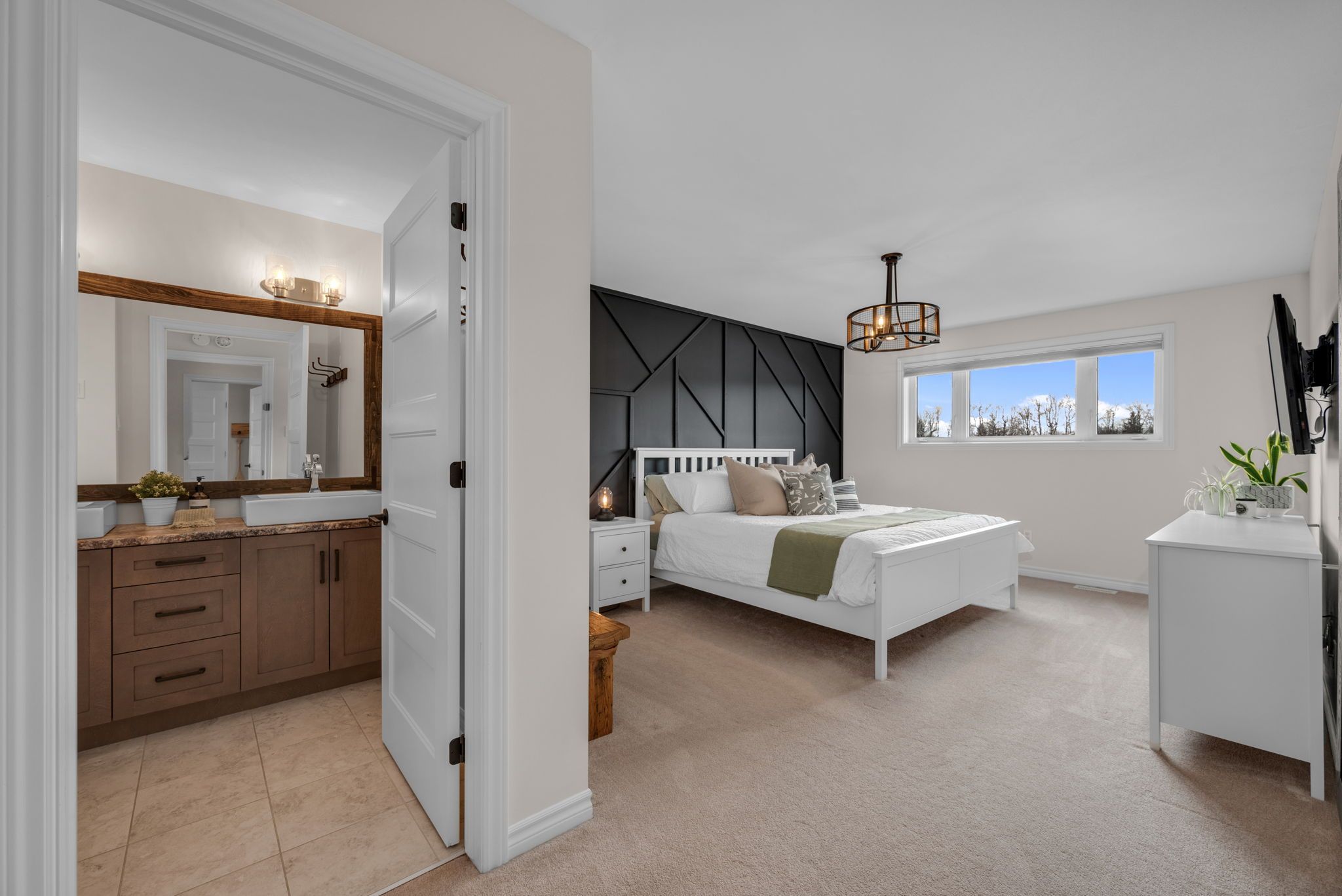 Stunning corvinelli built venezia model on a premium corner lot in the sought-after, family-oriented russell trails community, ideally located on a quiet street known for its strong sense of community and perfect for families. This bright, well-designed home offers a seamless layout for everyday living and entertaining, featuring a gorgeous kitchen that opens to the eating area and spacious living room, so you are always part of the conversation. Upstairs offers three well-sized bedrooms, including a standout primary suite with a feature wall, walk-in closet and beautifully finished ensuite. The lower level is ready for your personal touch, whether you envision a rec room, home gym or a fourth bedroom. Step outside to a private, fully fenced backyard complete with a large deck and gazebo, with a hot tub rough-in, creating an ideal extension of your living space and a safe area for kids and pets. Enjoy the charm of russell with its local shops, restaurants, parks, schools and community amenities all nearby. Flooring includes hardwood, ceramic and wall-to-wall carpet. Minimum 24 hours irrevocable on all offers.