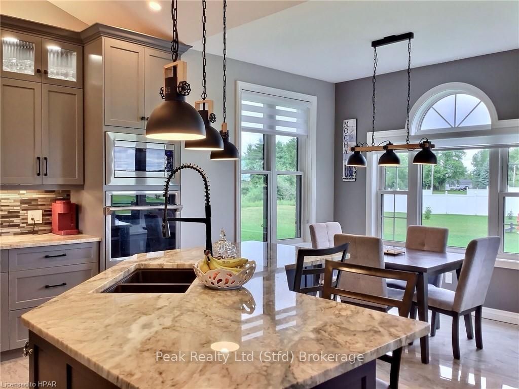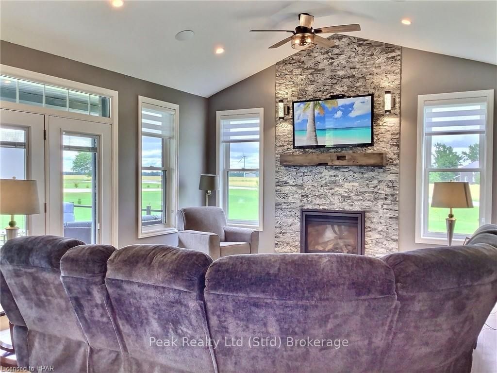 Welcome to your dream home! This stunning 4-year-old custom-built bungaloft offers modern living in a serene country setting 2-minutes from lake huron, situated on a sprawling 1. 58-acre property, this home boasts 3711 sqft. Of living space, 3+1 bedrooms and 3 full bathrooms, providing ample space for your family. As you step inside, you'll be greeted by an open-concept main floor featuring beautiful hardwood floors. The professionally designed, gourmet chef's kitchen is a showstopper, complete with granite countertops, and a large island perfect for entertaining. For added comfort, the tile floor in the kitchen and the two bathrooms have in-floor heat. The adjoining family room offers vaulted ceilings and a gas fireplace! The finished basement is an entertainer's paradise, featuring a home theatre, custom wet bar, and plenty of room for an in-law suite. Outside, you'll find a large double-car garage, a covered front porch perfect for enjoying quiet evenings and fabulous sunset views, and a private, tranquil backyard with a covered deck, patio bbq, hot tub, and fire pit. The large driveway leads to a 2000 sqft. Insulated, heated shop with 14-ft high doors, large enough to store trucks, vehicles, boats, and rvs. The property also comes with a backup generator. Located just a short drive from goderich and the stunning beaches of lake huron, this property offers the perfect blend of country tranquility and convenient access to amenities. Don't miss your chance to own this one-of-a-kind home! Click the video link under property information to take the virtual tour. Call for more information.