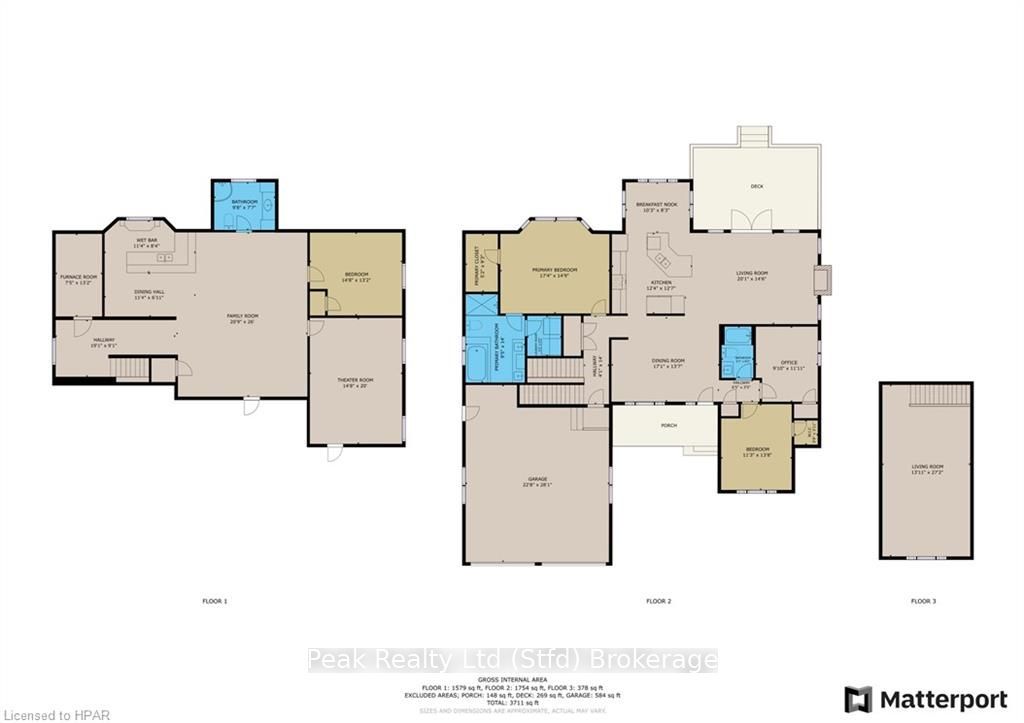 • Spacious 3711 sqft home with 3+1 bedrooms and 3 full bathrooms.