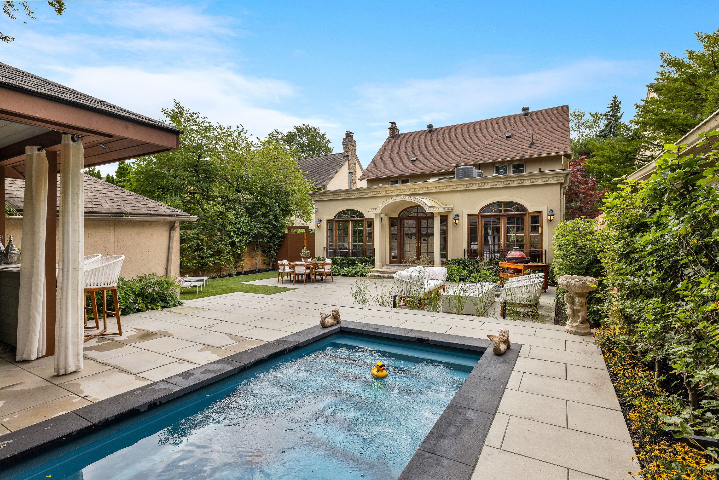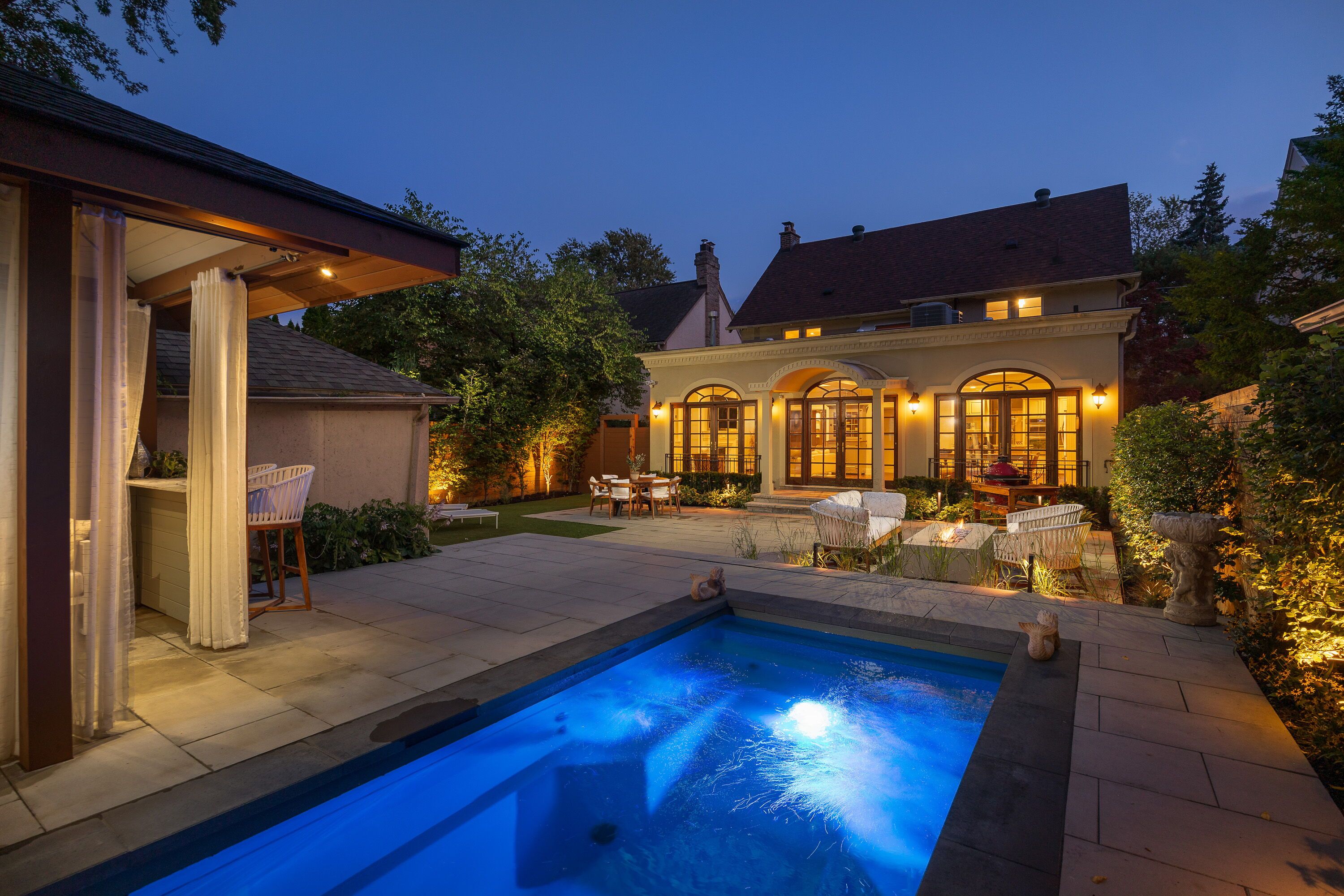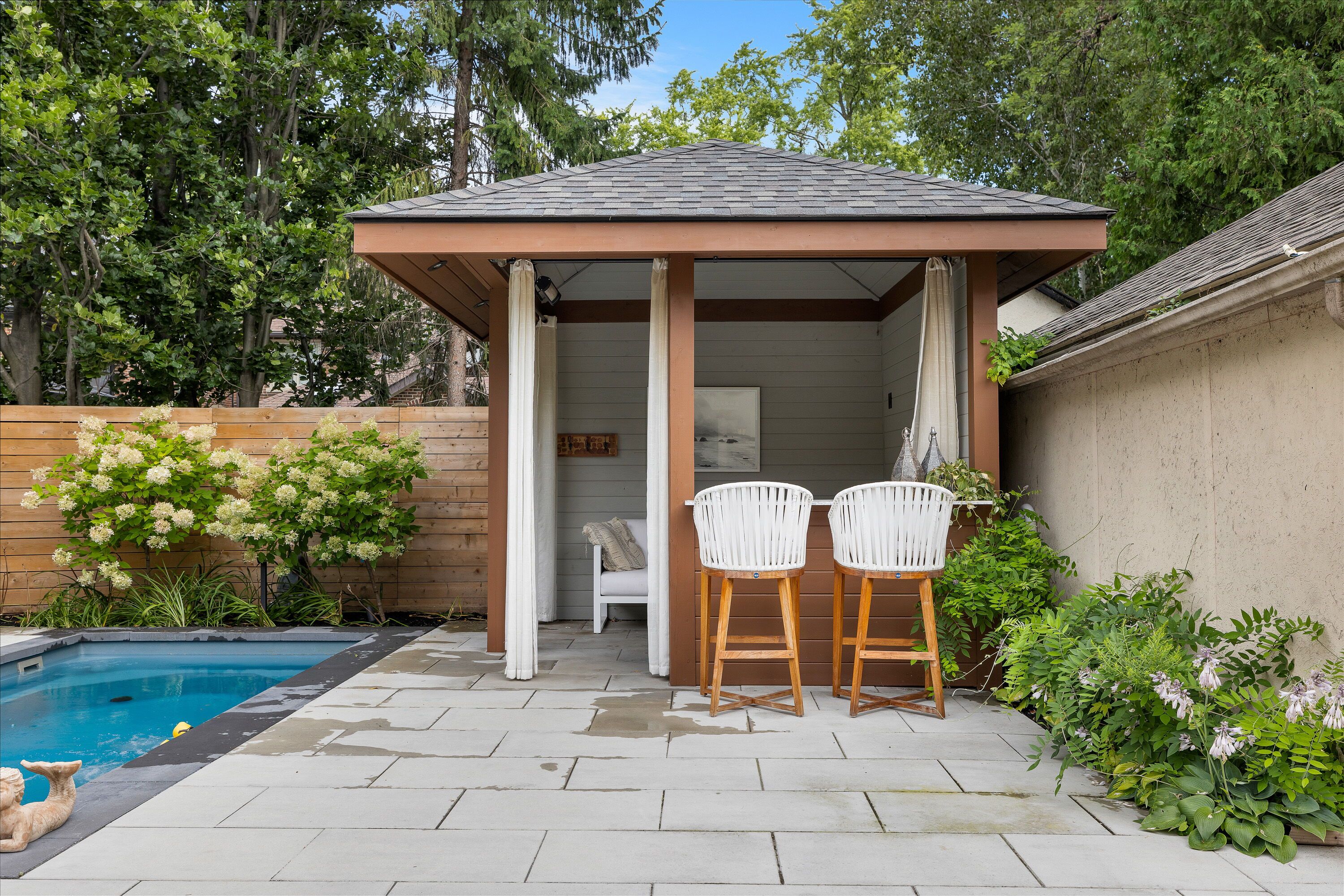 • Private backyard with all-season spa and stylish cabana for relaxation.