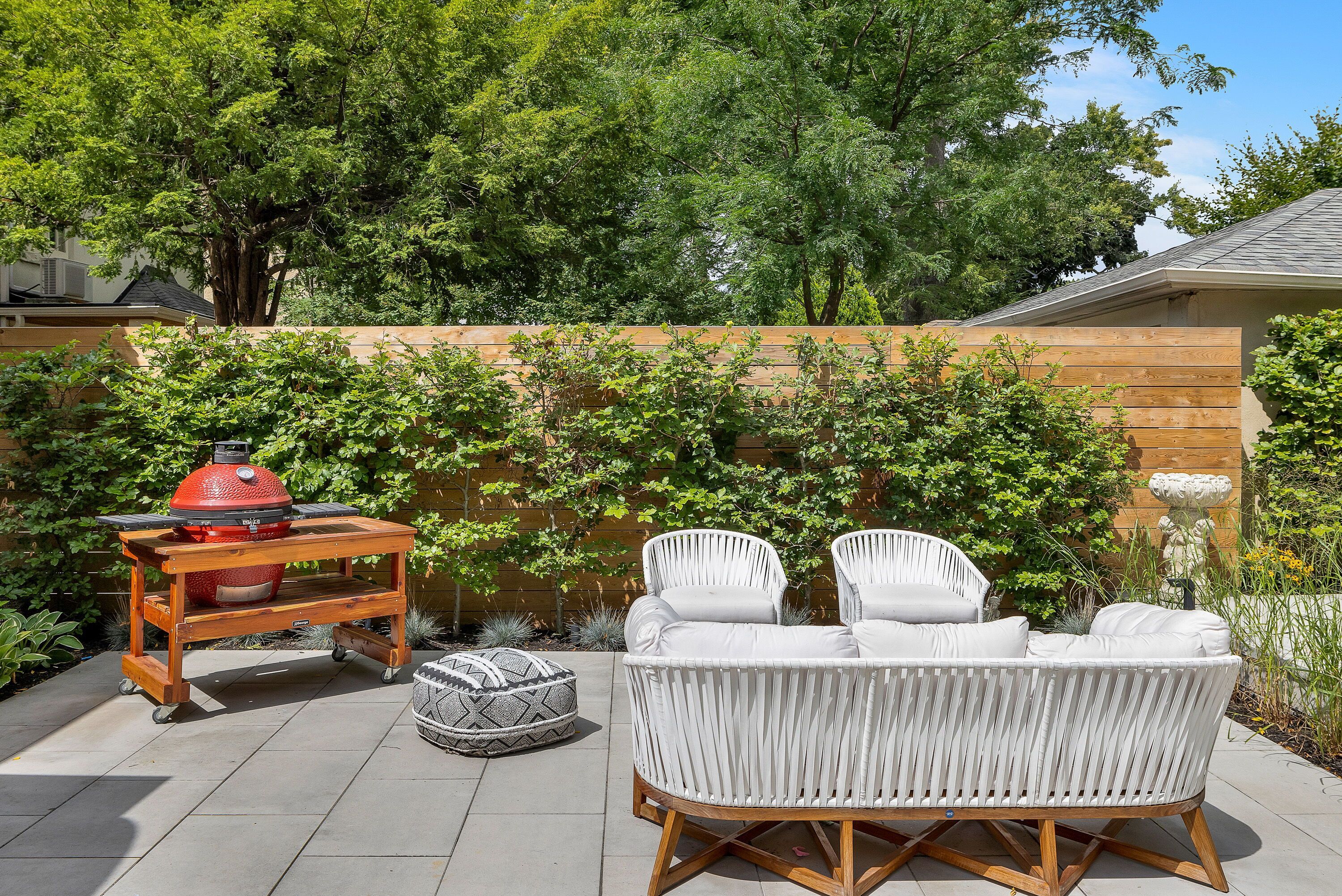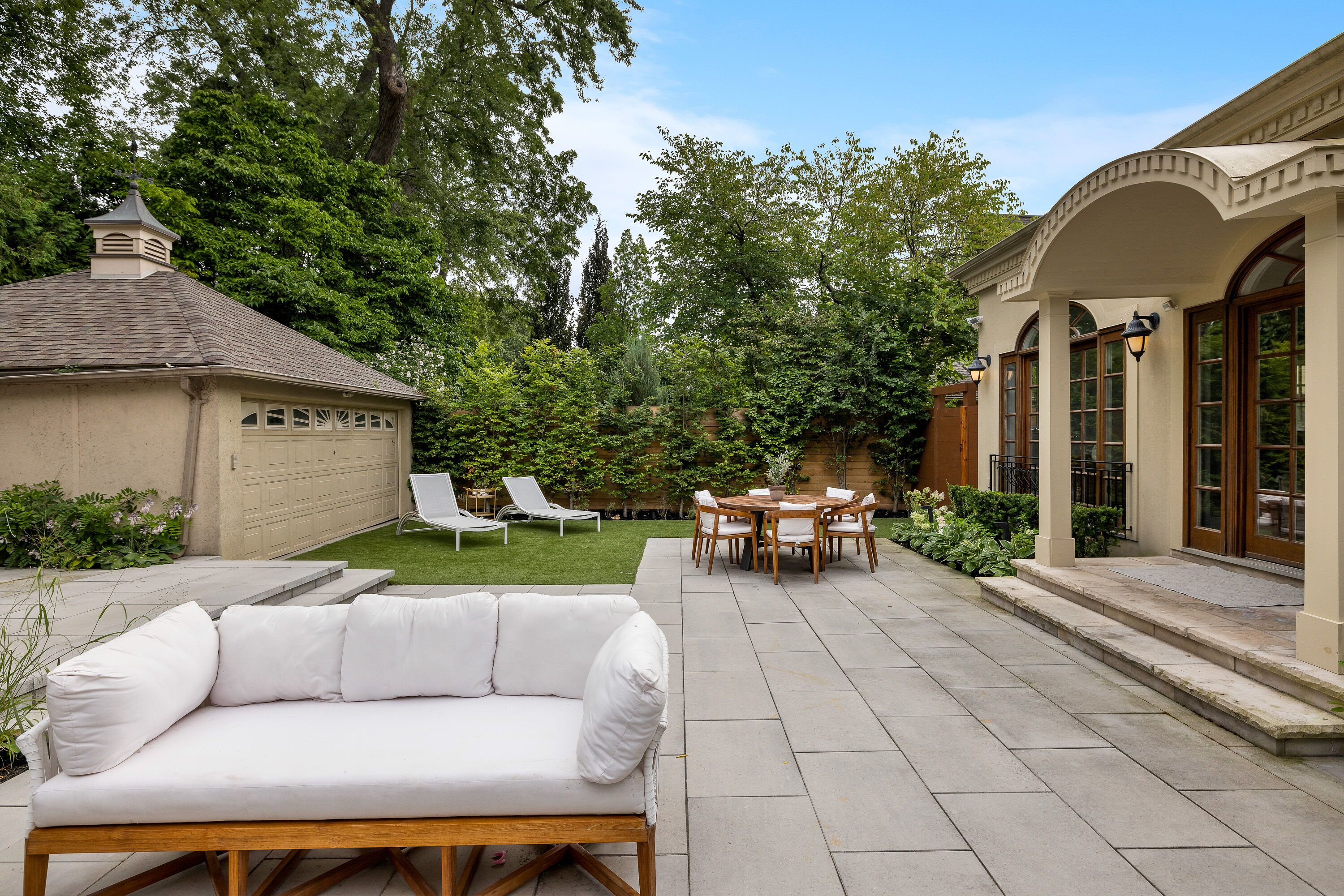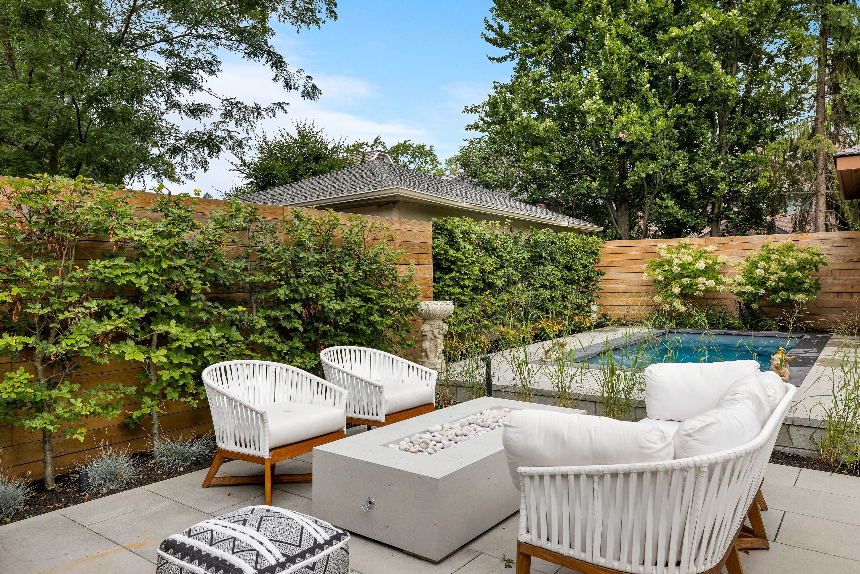 • Private backyard with all-season spa and stylish cabana for relaxation.