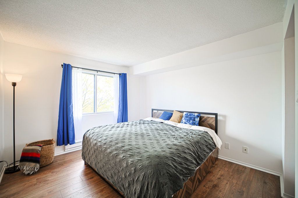 This beautiful well kept 2bedroom, 2 bath home offers a rare blend of tranquility, privacy and prime urban convenience. A very functional layout with distinct living and dining spaces. Beautiful cozy fireplace in livingroom & walk-out to private patio. There are new laminate floors throughout. The prime bedroom comes with one 4 piece ensuite and unit is complimented with ensuite laundry. Prime location in mississauga near all amenities. Located in a quiet, family friendly community close to schools, shopping, community center and public transit. This unit is semi furnished with water & wi-fi included. There is a large balcony with a storage space.