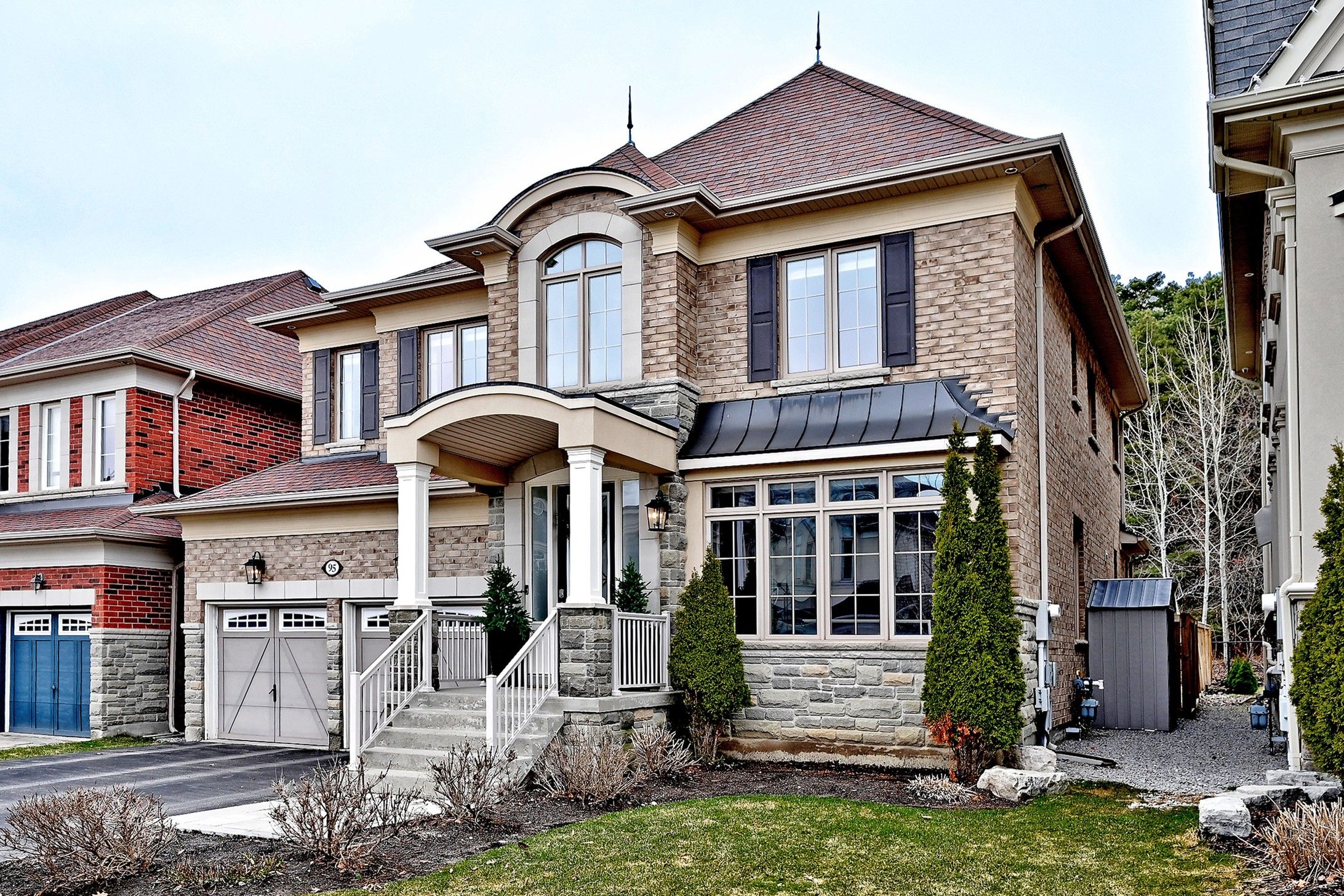 Welcome to 95 vines place, an exquisite residence in a quiet enclave of homes in prestigious grand chateaus on bayview. This stunning home sits on a premium lot, backing to a serene parkette that provides enhanced privacy and tranquility. Inside, the main level showcases an executive office with modern glass doors, a spacious dining room with an elegant, coffered ceiling and custom built-in cabinets, an open concept dream kitchen that seamlessly flows into an amazing great room with beautiful views and a family-friendly breakfast area with a vaulted ceiling that opens directly to your backyard retreat. A contemporary oak staircase leads you to a relaxing primary bedroom suite complete with a luxurious 5-piece ensuite bathroom and large walk-in closet. A spacious 2nd bedroom with its own 4-piece ensuite bathroom and two additional bedrooms sharing a convenient jack & jill 3-piece ensuite bathroom, provides ample space for a growing family. The finished basement extends the home's living space with a huge recreation room with a gas fireplace, open concept games room, exercise room with mirrored walls and a 3-piece bathroom. Enjoy the picturesque view of majestic trees and greenspace in your private backyard oasis which is fully fenced with a huge interlock patio. A convenient location offers unmatched amenities just minutes to some of the top-rated private schools in ontario, world class golf courses, walking trails including sheppard's bush conservation area, parks, tennis courts, shopping, dining, hwy 404, go train & public transportation. Schedule your private tour today for this exceptional must see home.