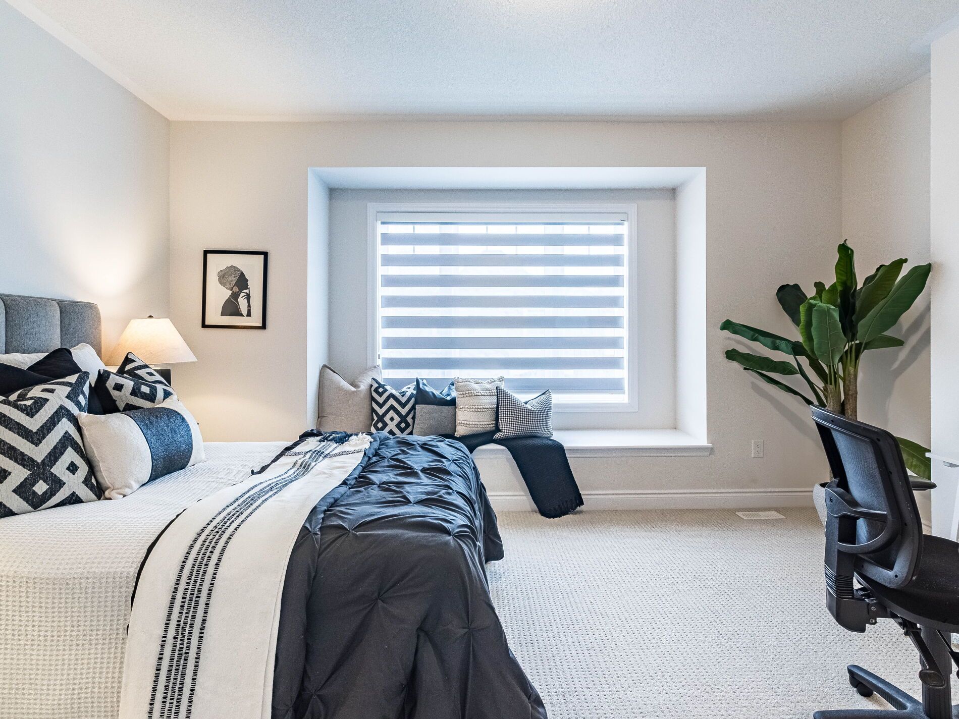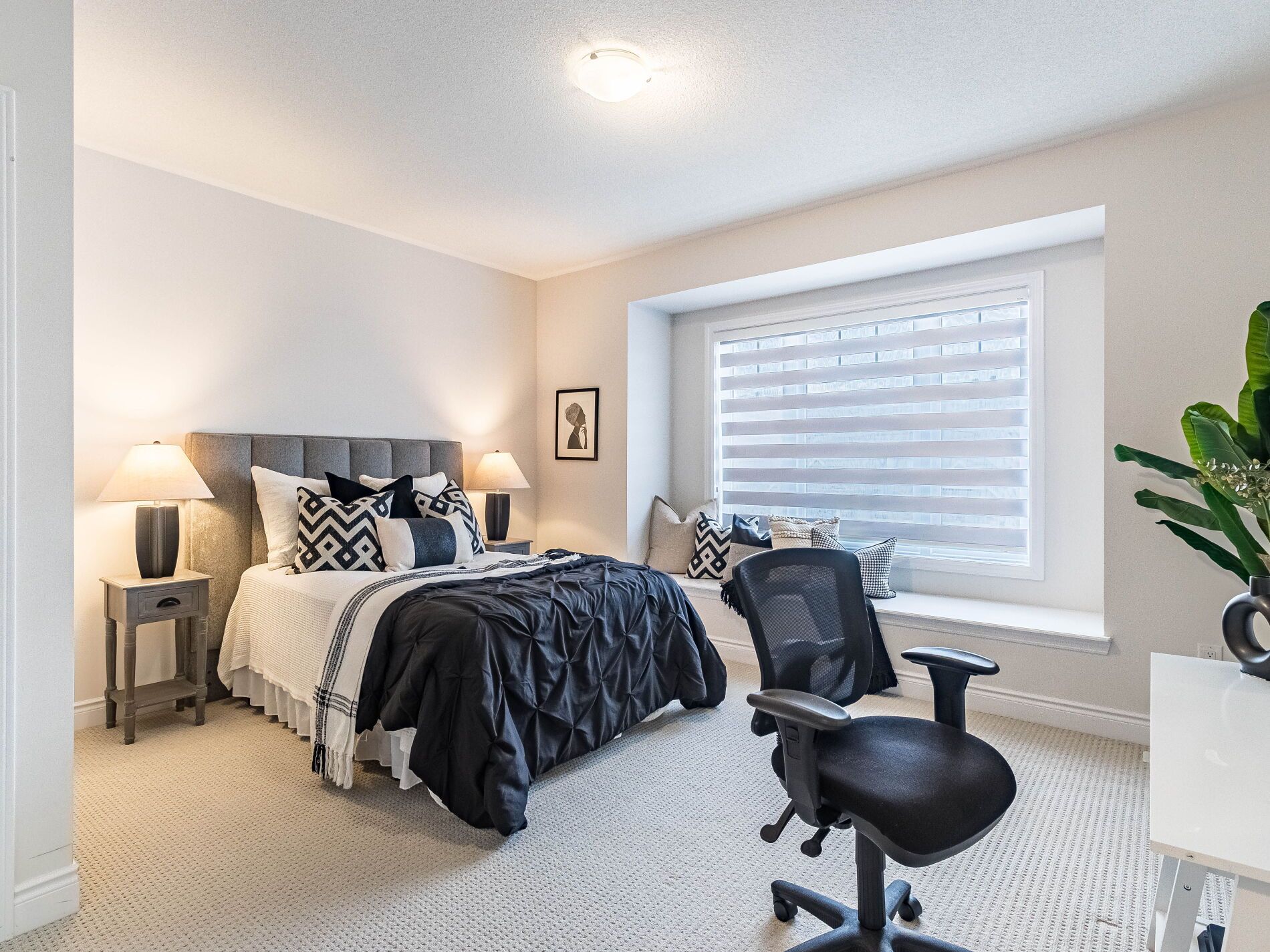 Beautiful valery home with 4 + 1 bedrooms, 5 bathrooms, offering approx. 3400 sq ft including professionally finished basement by the builder. Extensive upgrades including, engineered hardwood flooring, plaster crown moulding throughout main fl and upper hallway, 10 & 9 ceilings, great room with fireplace, upgraded tiles on main fl. Surround system on main fl, beautiful kitchen with quartz counters, quartz backsplash, breakfast counter and top of the line jenn-air ss appliances, gas stove and gas oven.. Enlarged basement windows & rough-in for wet bar. 2nd floor laundry room. All upstairs bedrooms have ensuite bathrooms & the primary bedroom with luxe 5-piece ensuite soaker tub & glass shower. Close to schools, hospital hwy, parks and lots more. Incredible value here! 10+! **extras** some furniture can be included please ask la.