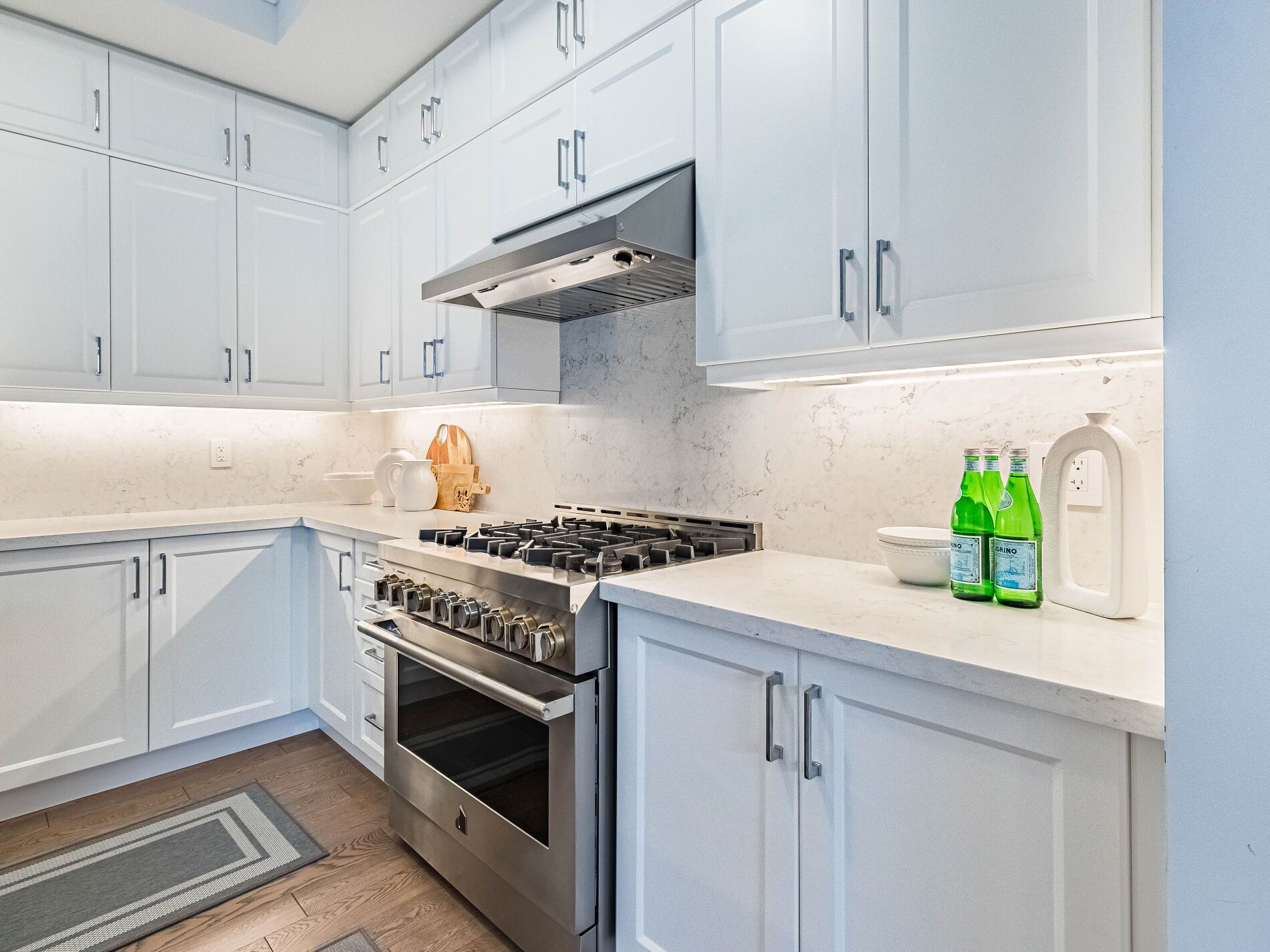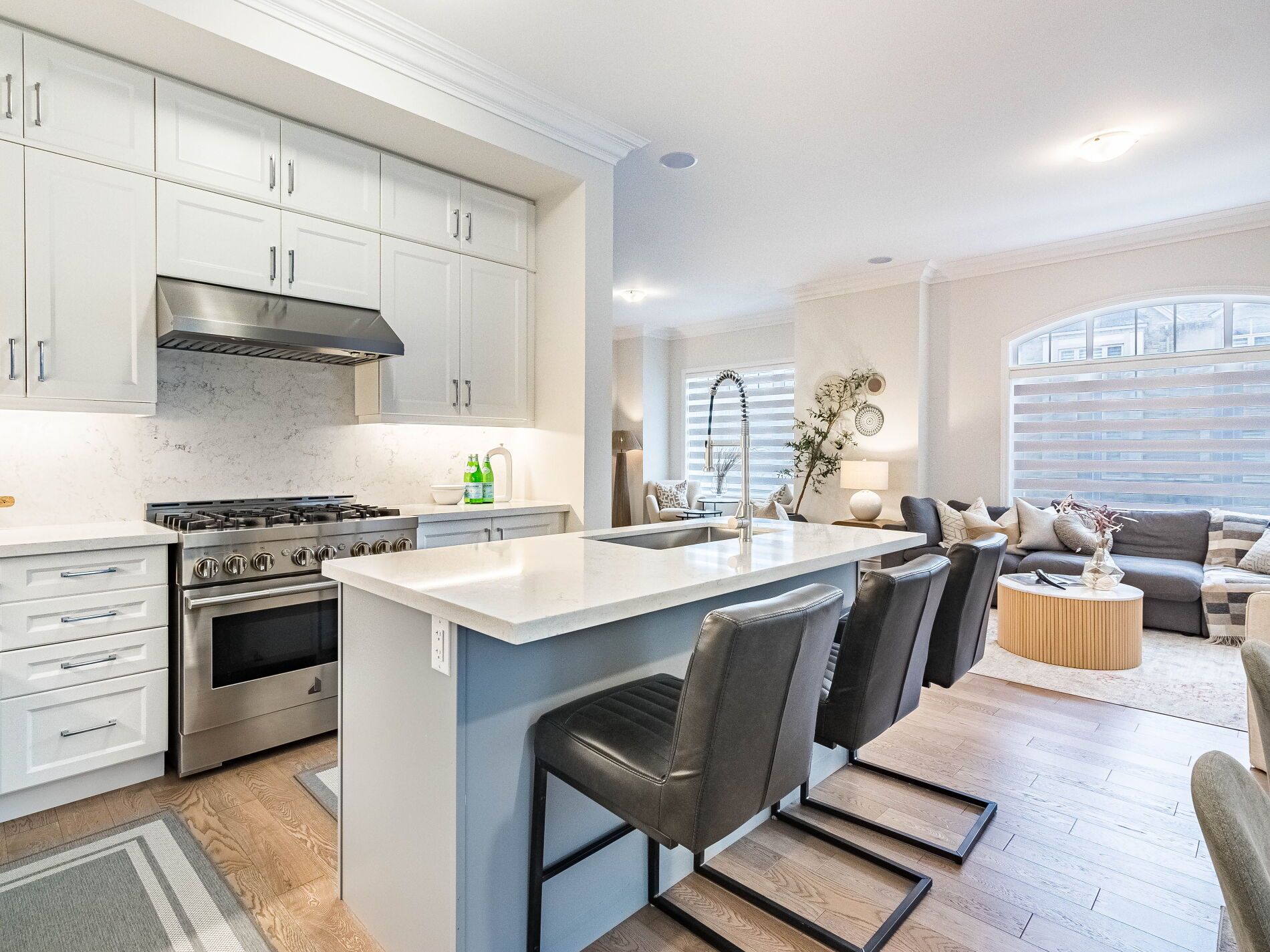 • Gourmet kitchen with quartz counters and high-end appliances.