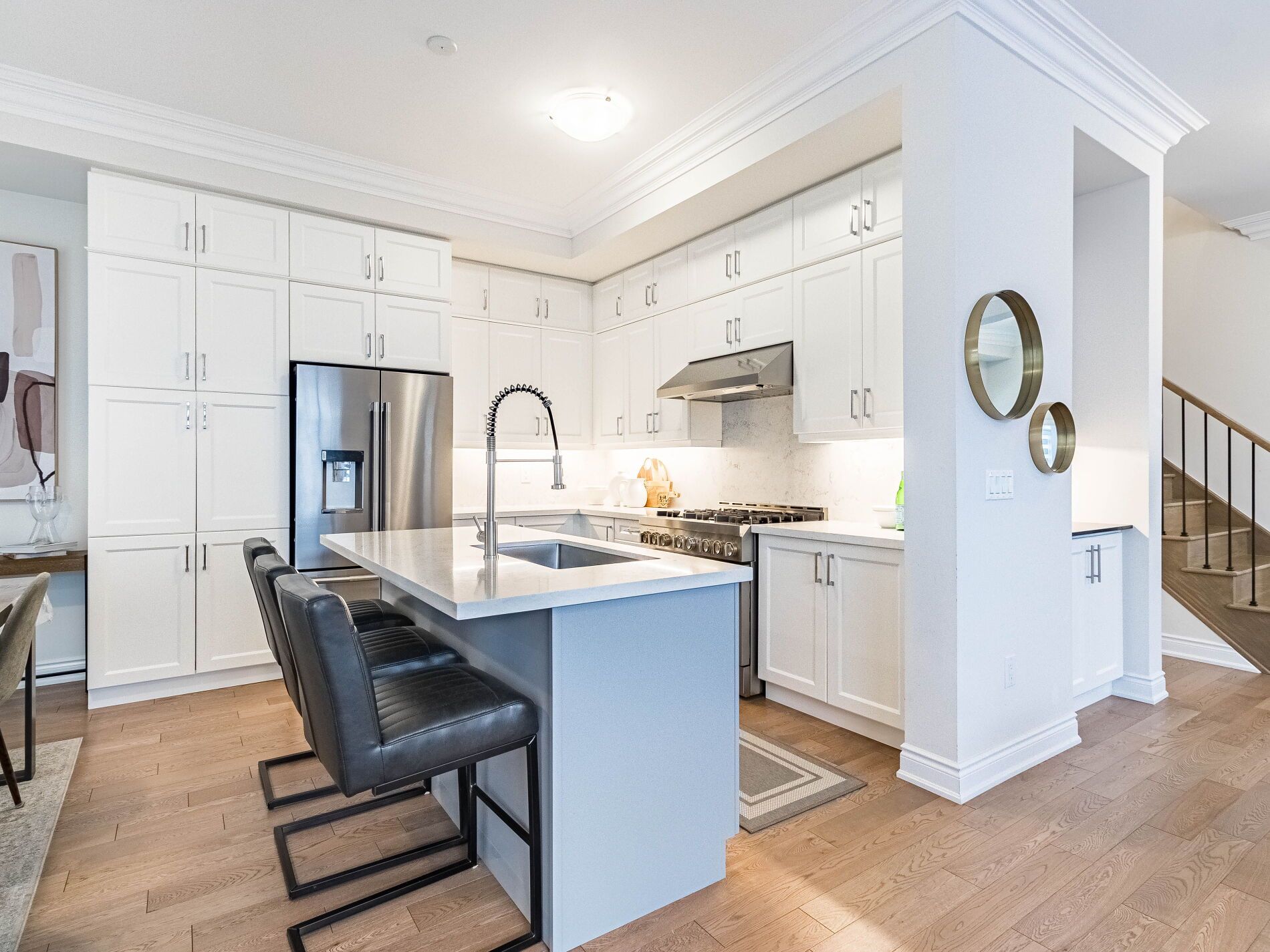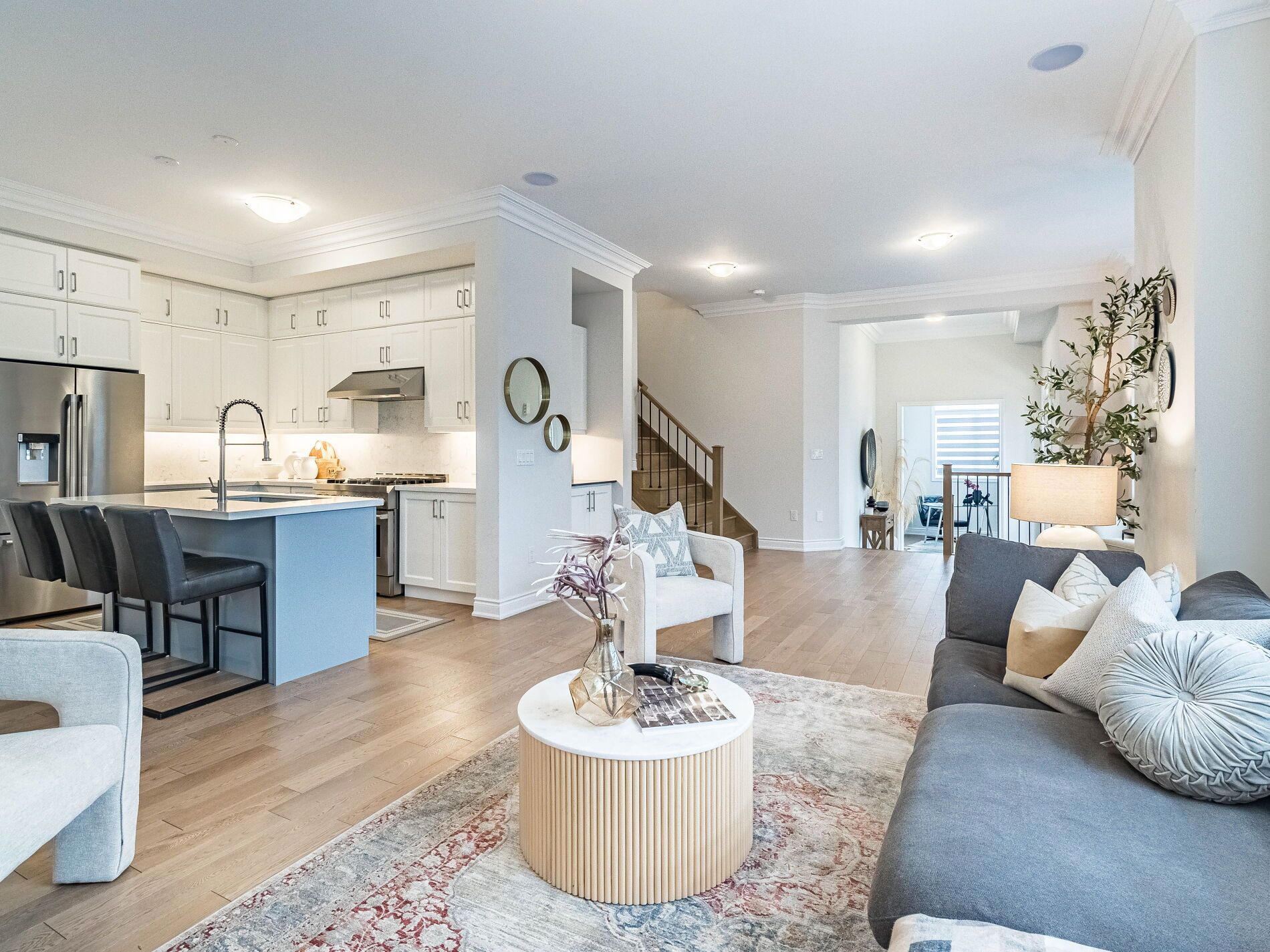 • Main floor features open concept design and high ceilings.